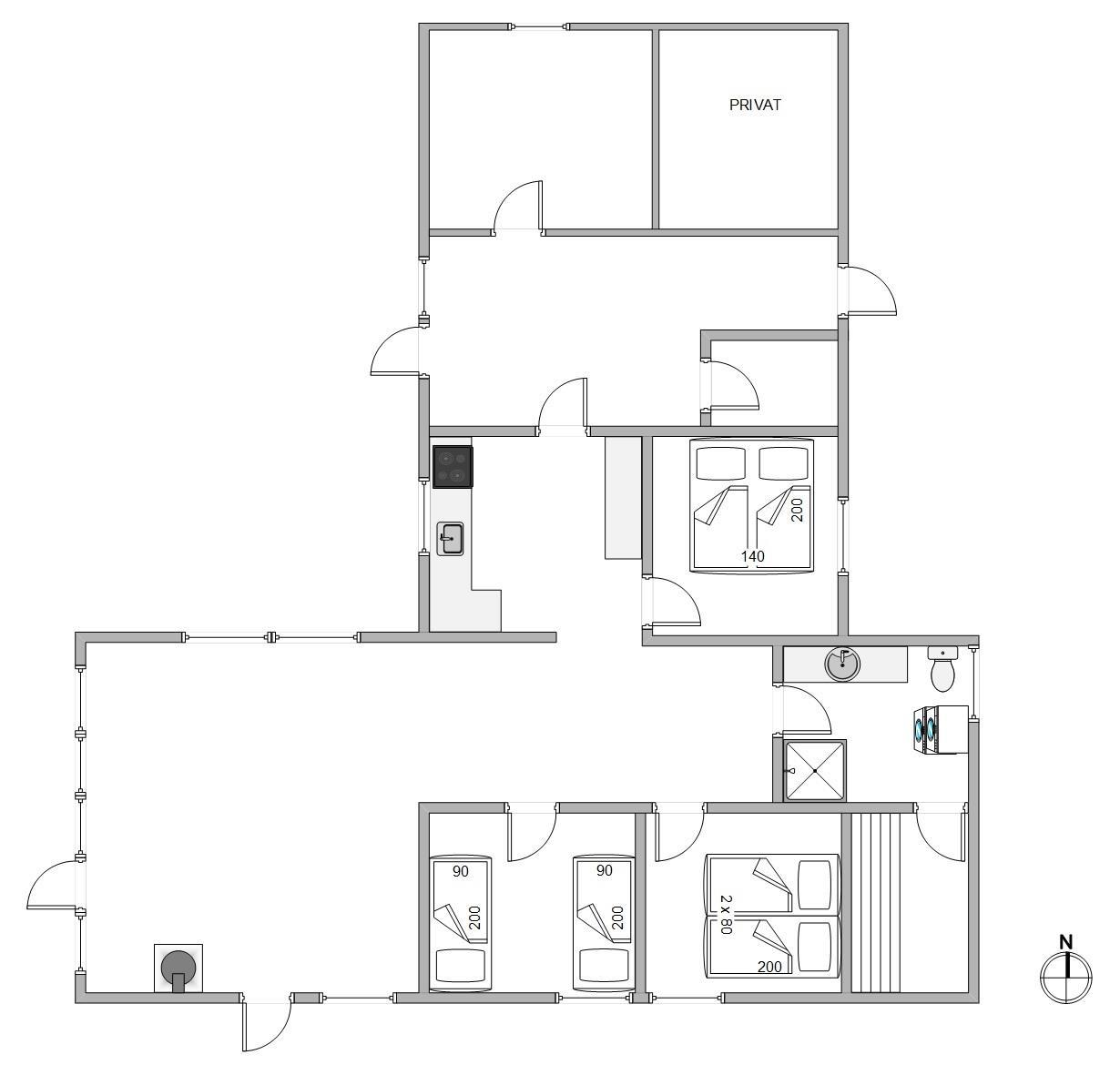 De 6 sovepladser er fordelt på 3 soverum, hvoraf der er dobbeltsenge på de 2 af dem og 2 enkeltsenge på det sidste værelse. Her har I mulighed for at lade op og samle energi til morgendagens aktiviteter.