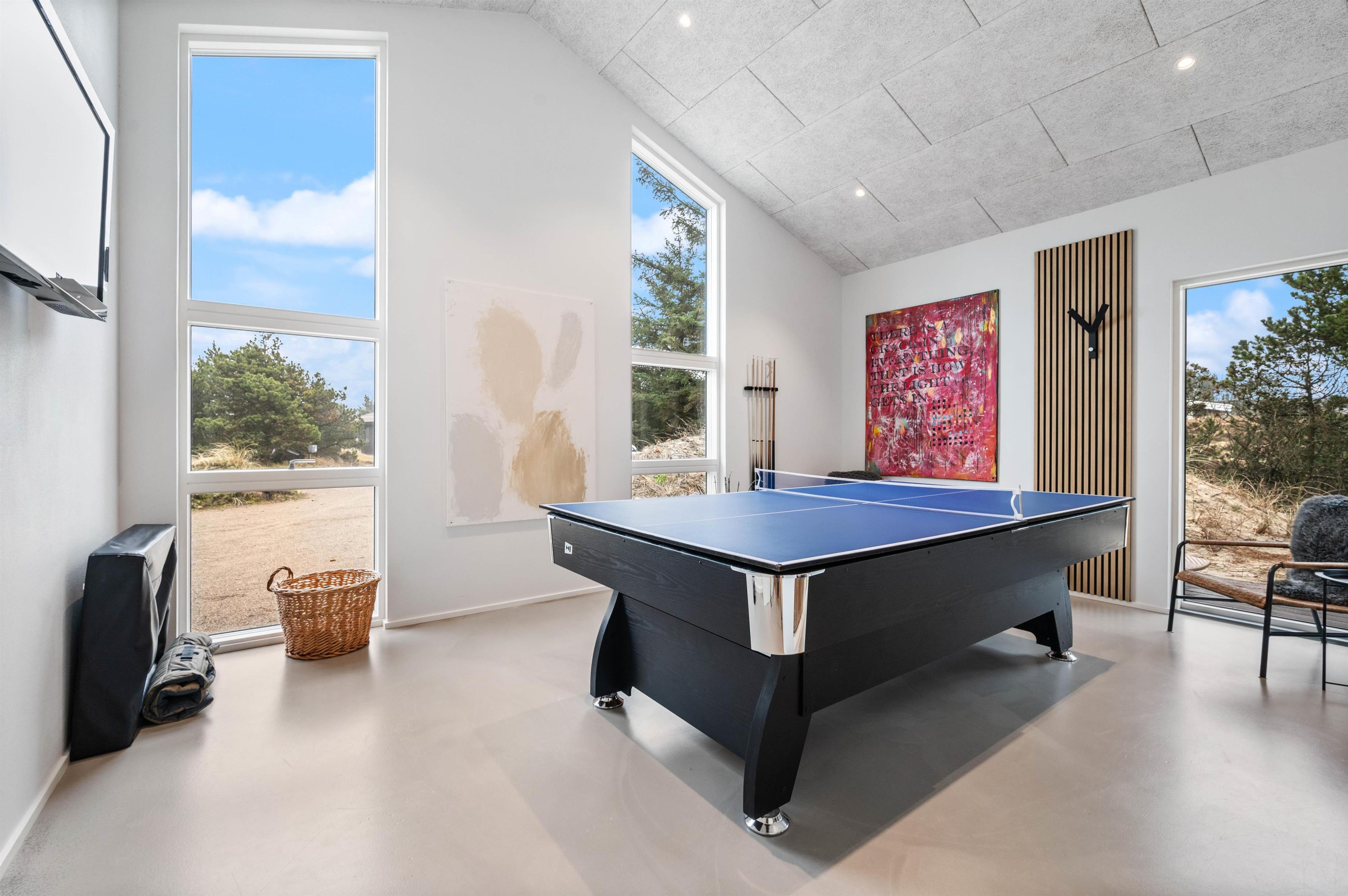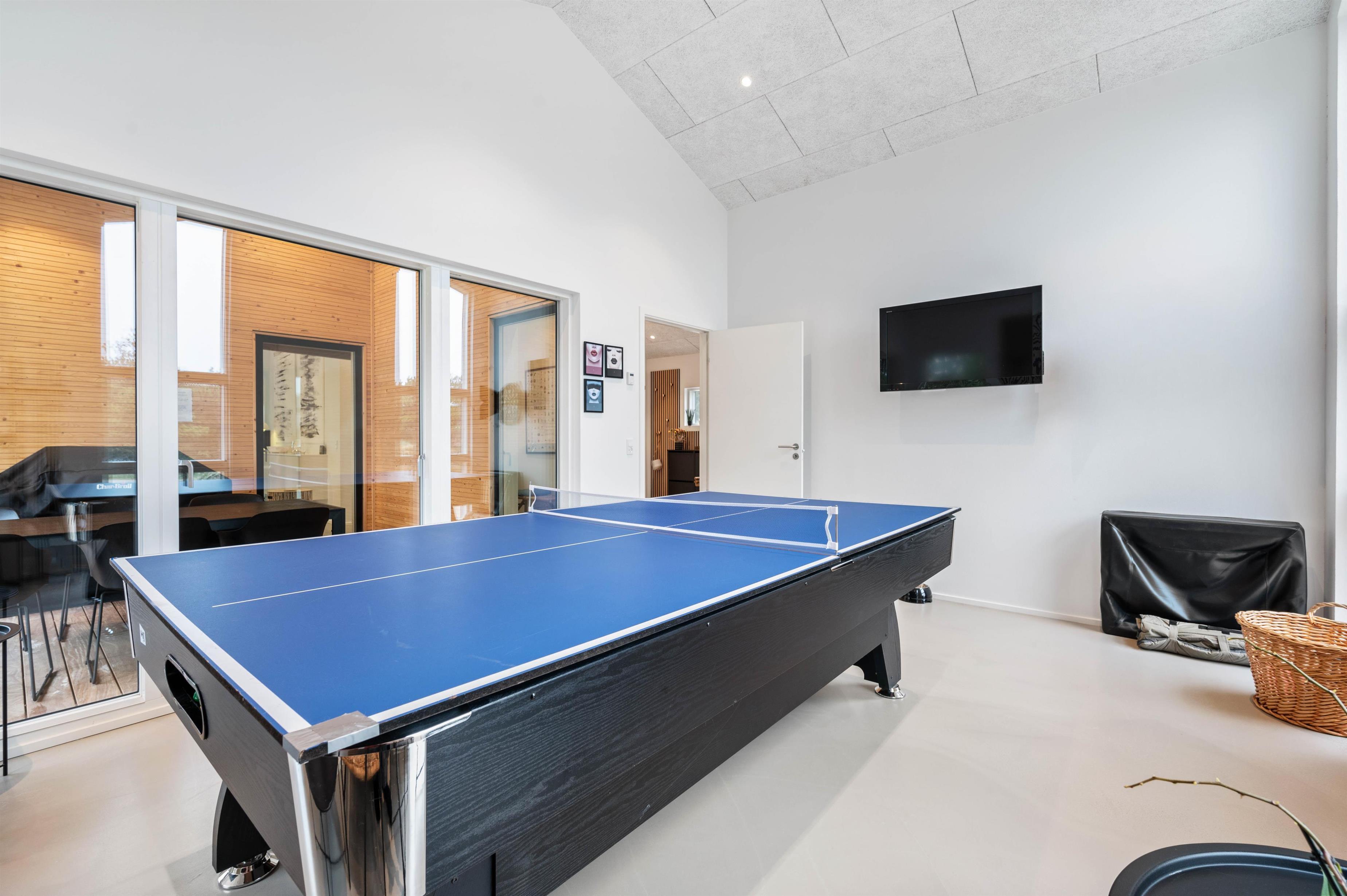 Det 166 m2 store aktivitetshus er indrettet med rigelig plads til alle. Her kan familien tilbringe mange hyggelige og underholdende feriestunder sammen. Lav f.eks. en bordtennisturnering og find feriens bordtennismester.