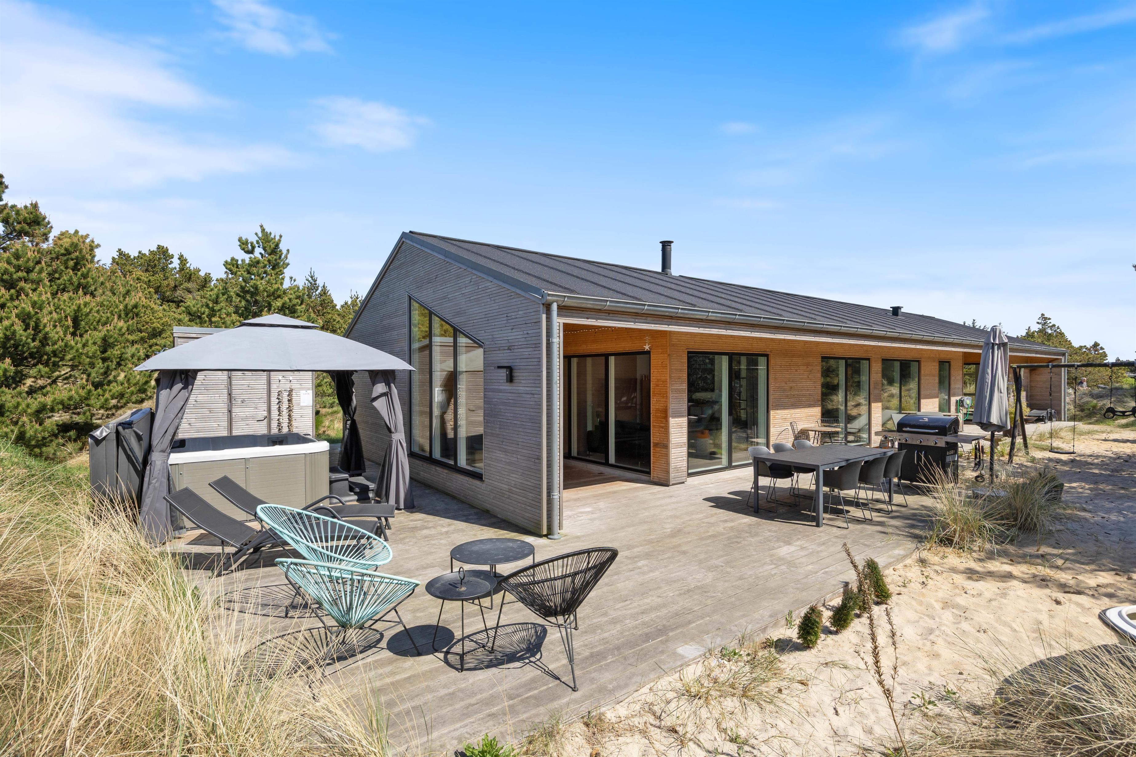 Måske søger I et moderne sommerhus i Bjerregård, som er bygget i 2022? Tag et smugkig på dette skønne aktivitetshus på Bjerregårdsvej 149, med plads til 8 personer, og hunden er også velkommen. Her kan hele familien samles og nyde hinandens selskab. Hop i den dejlige, fem personers udespa eller tag et spil billard med hinanden, mens I nyder et glas vin eller en kælderkold øl.
