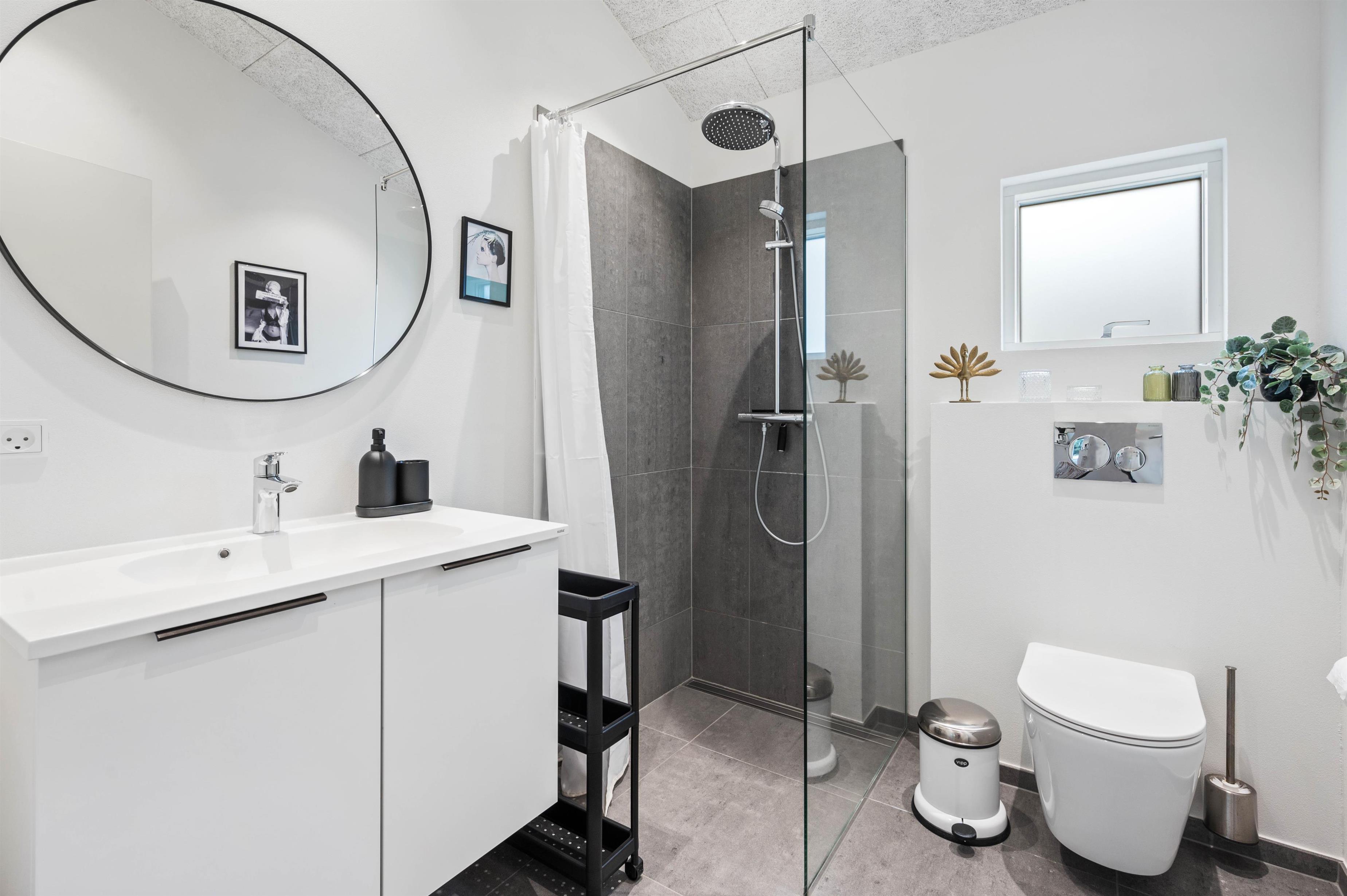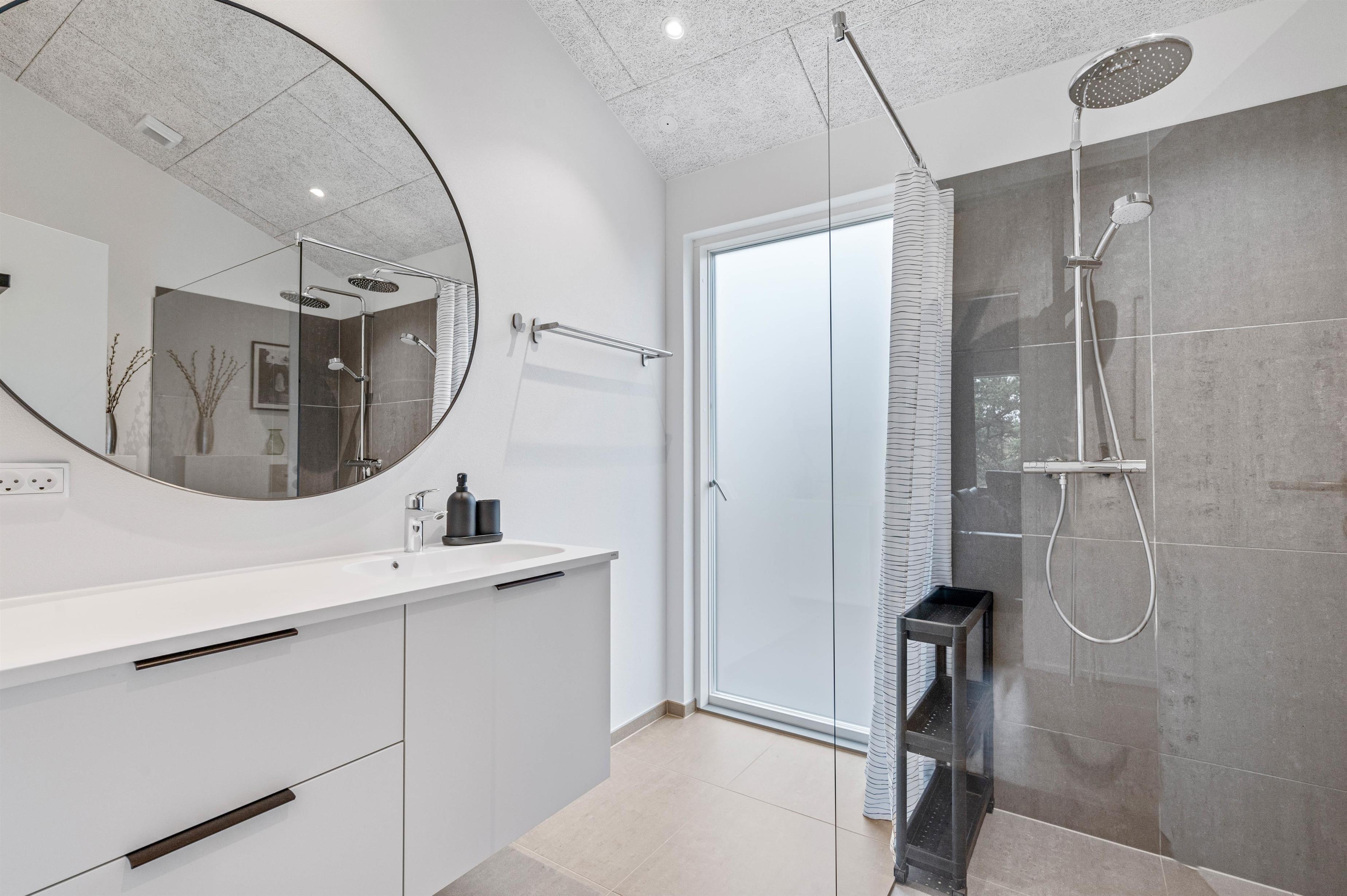 Sommerhuset rummer 2 badeværelser, begge med behagelig gulvvarme. Der forefindes både vaskemaskine og tørretumbler i feriehuset - så tag jeres badetøj og håndklæder og læg det i vaskemaskinen, så det er dejligt nemt at pakke strandtasken næste morgen.