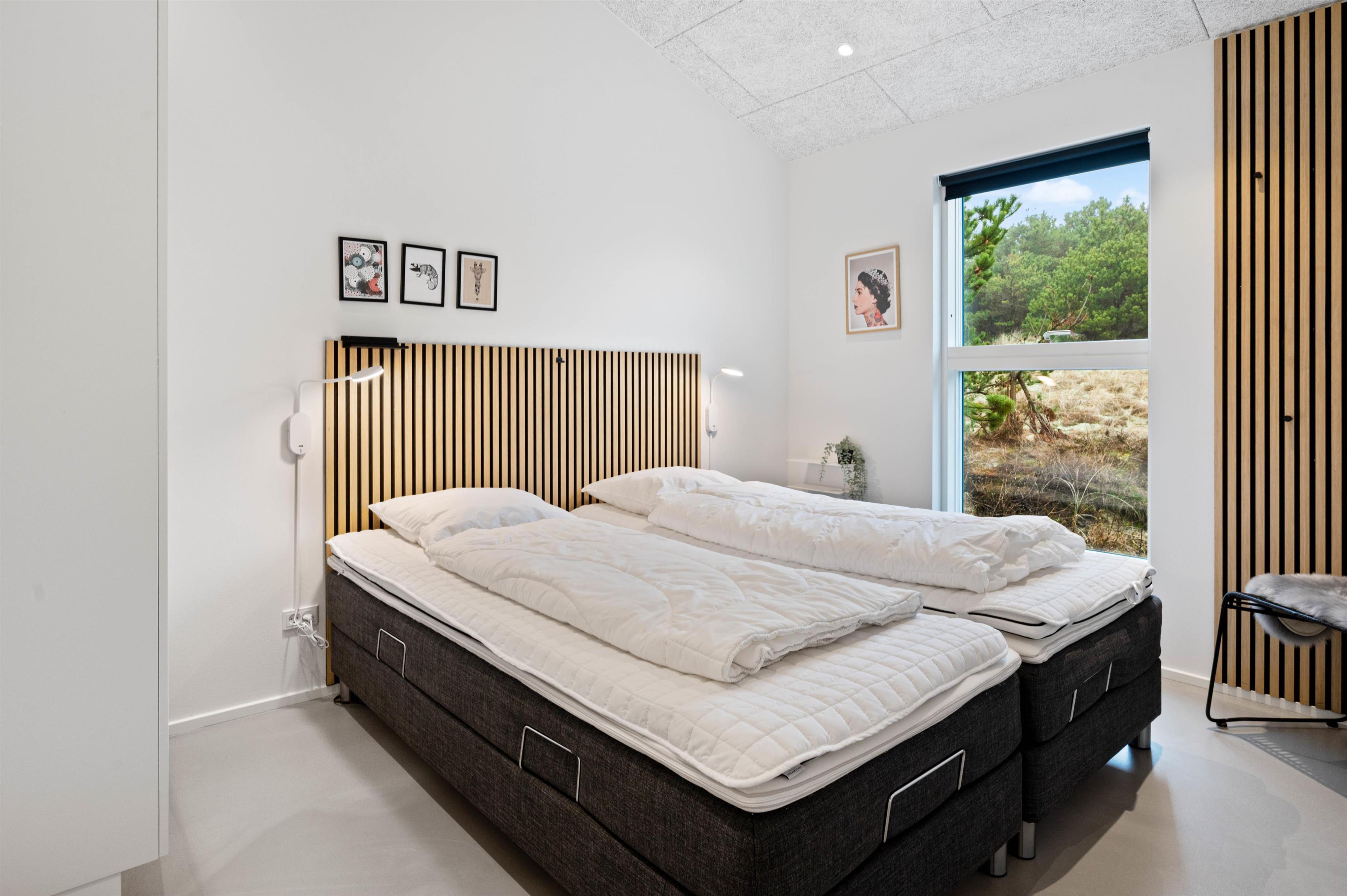 Sommerhuset rummer hele fire soveværelser, alle med 90 cm brede og komfortable senge samt gulvvarme.