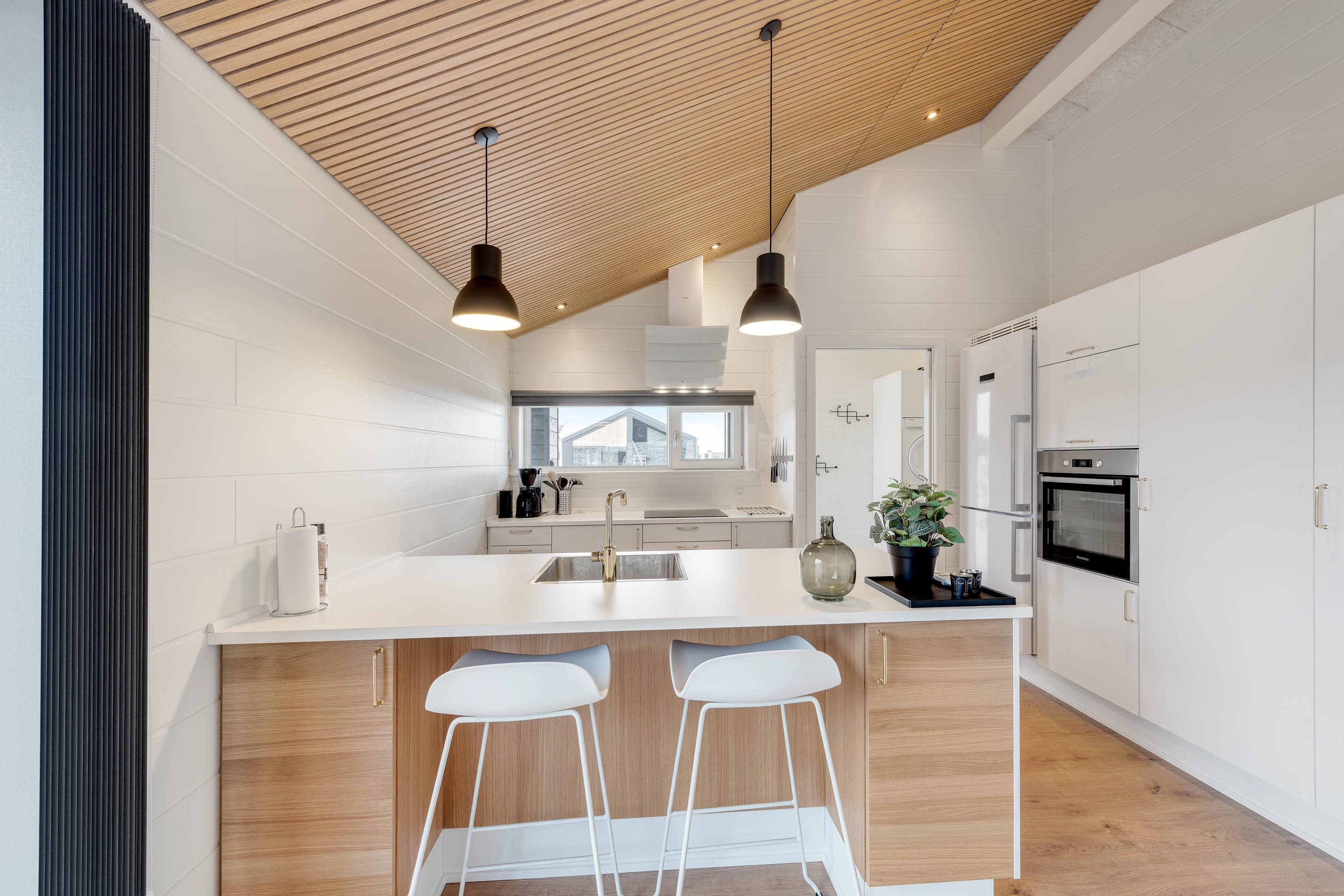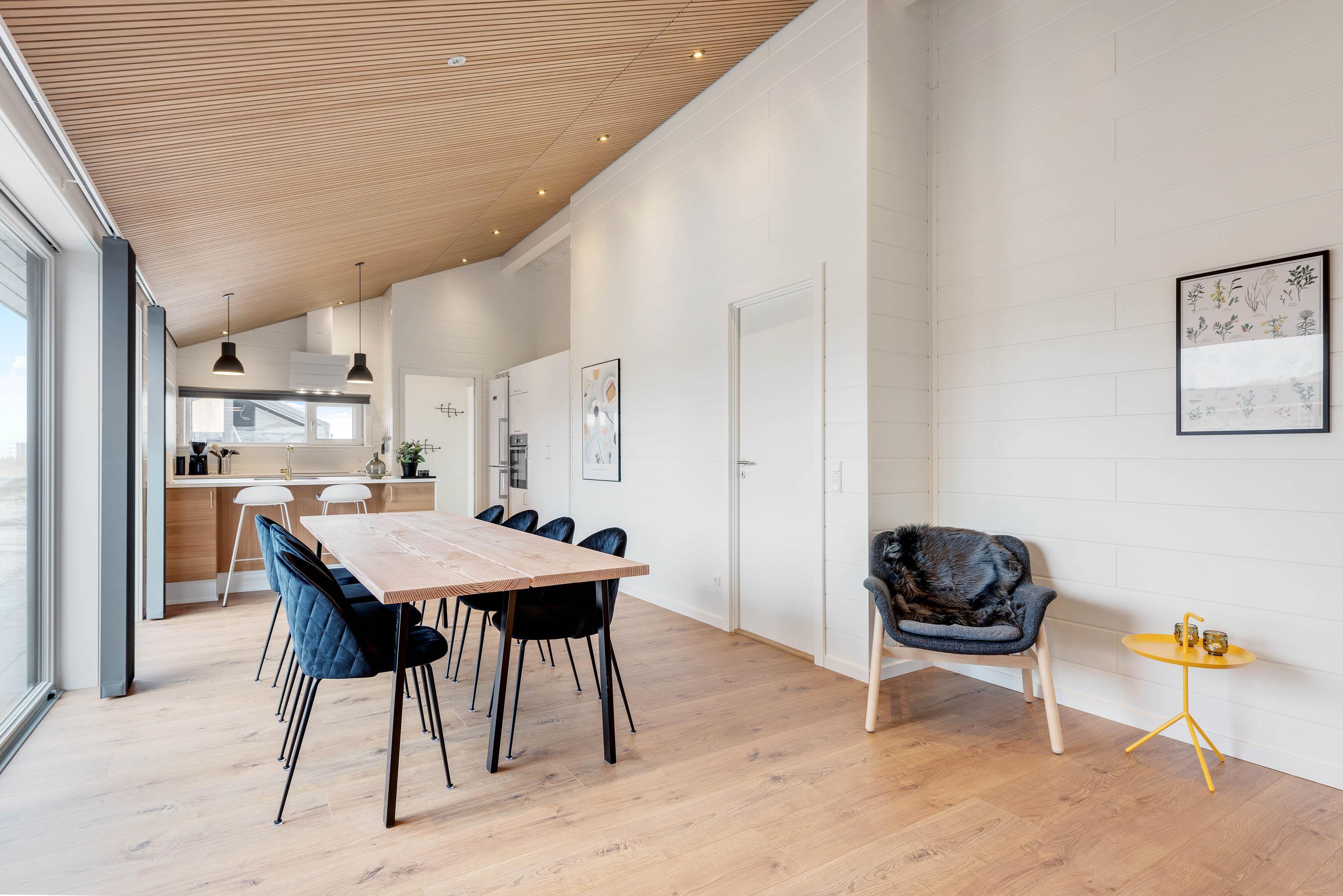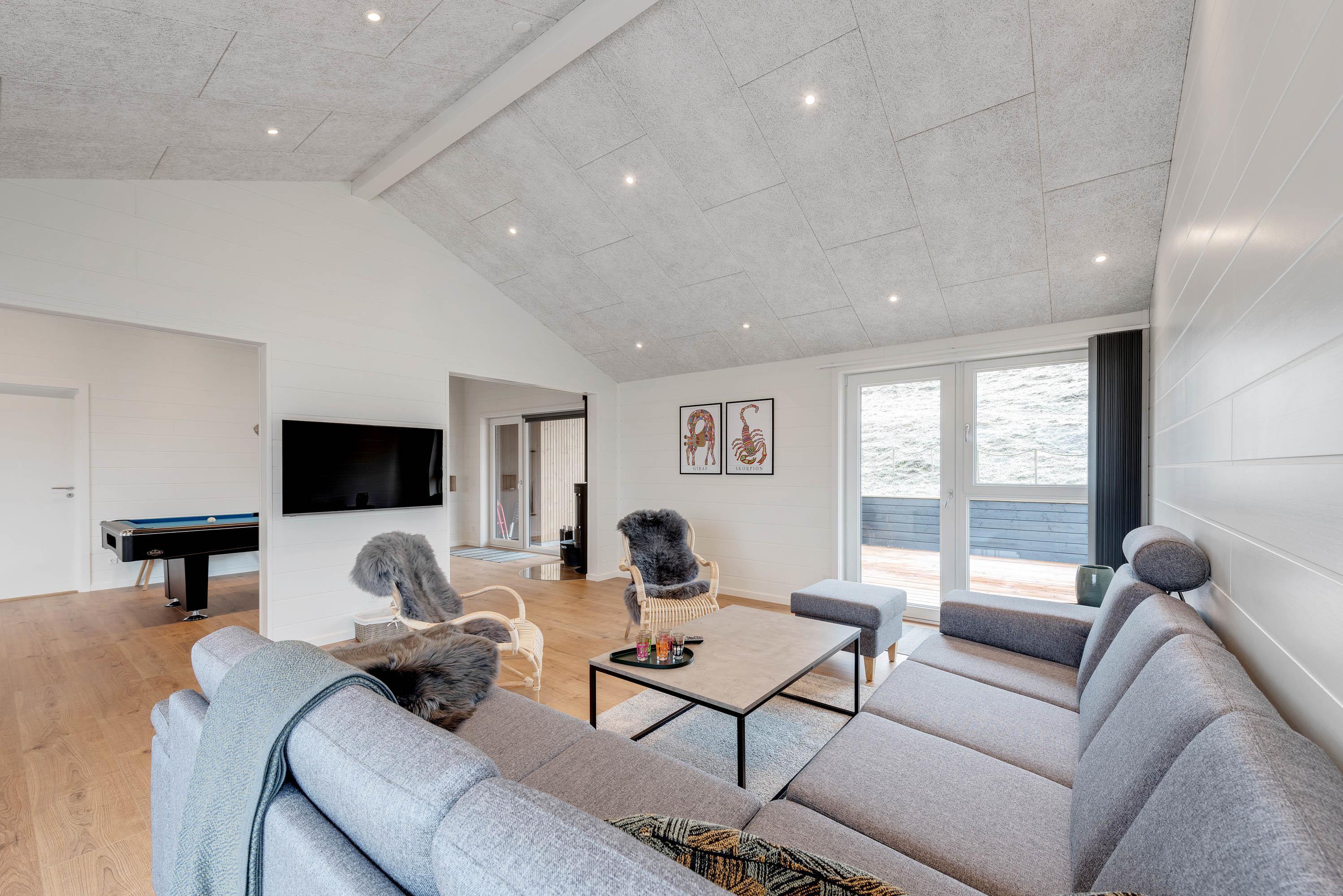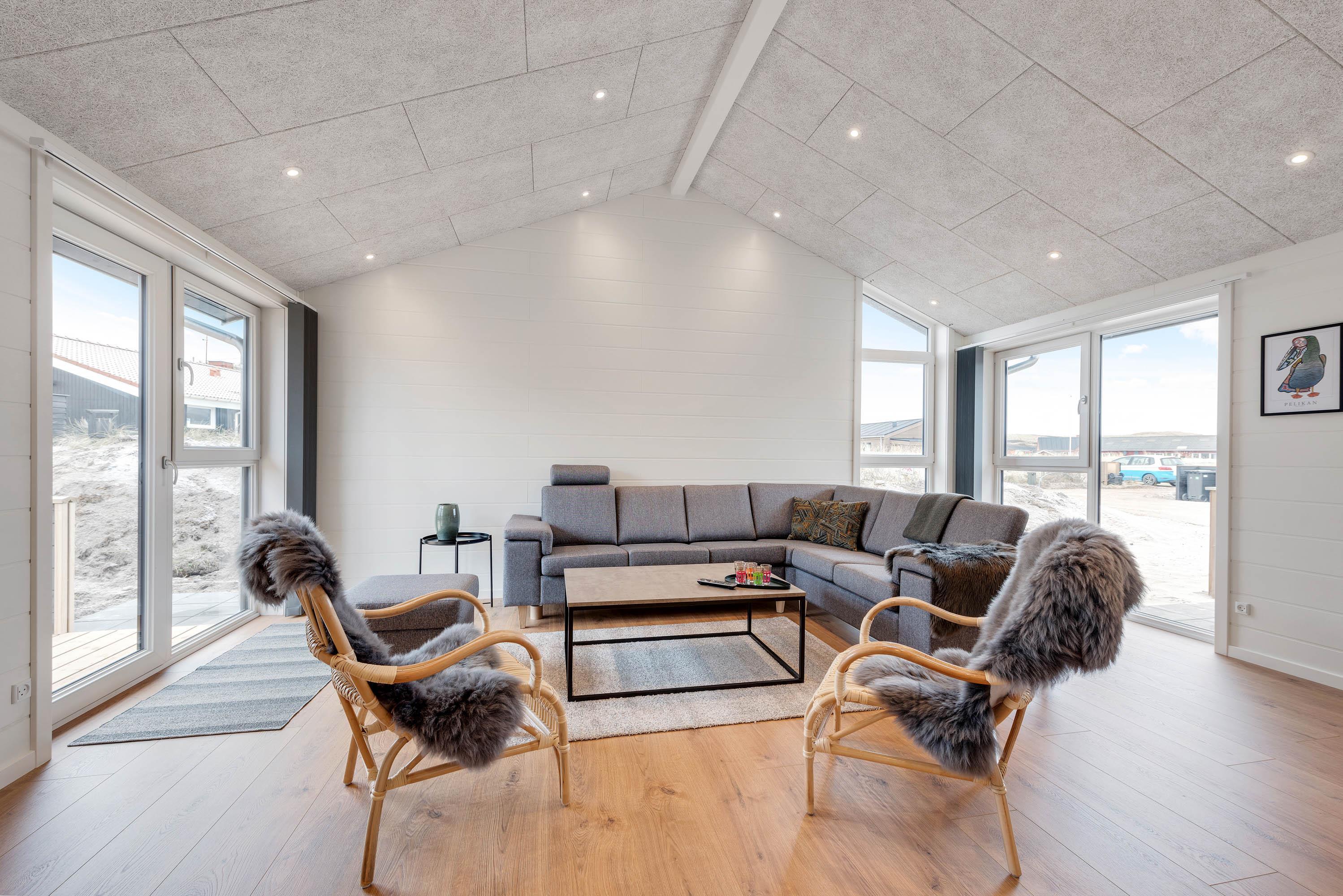 Sommerhuset har en moderne indretning, hvor I kan læne jer tilbage og slappe af i komfortable møbler. Sammen med det gode lysindfald fra de mange vinduer, skaber det en skøn atmosfære.