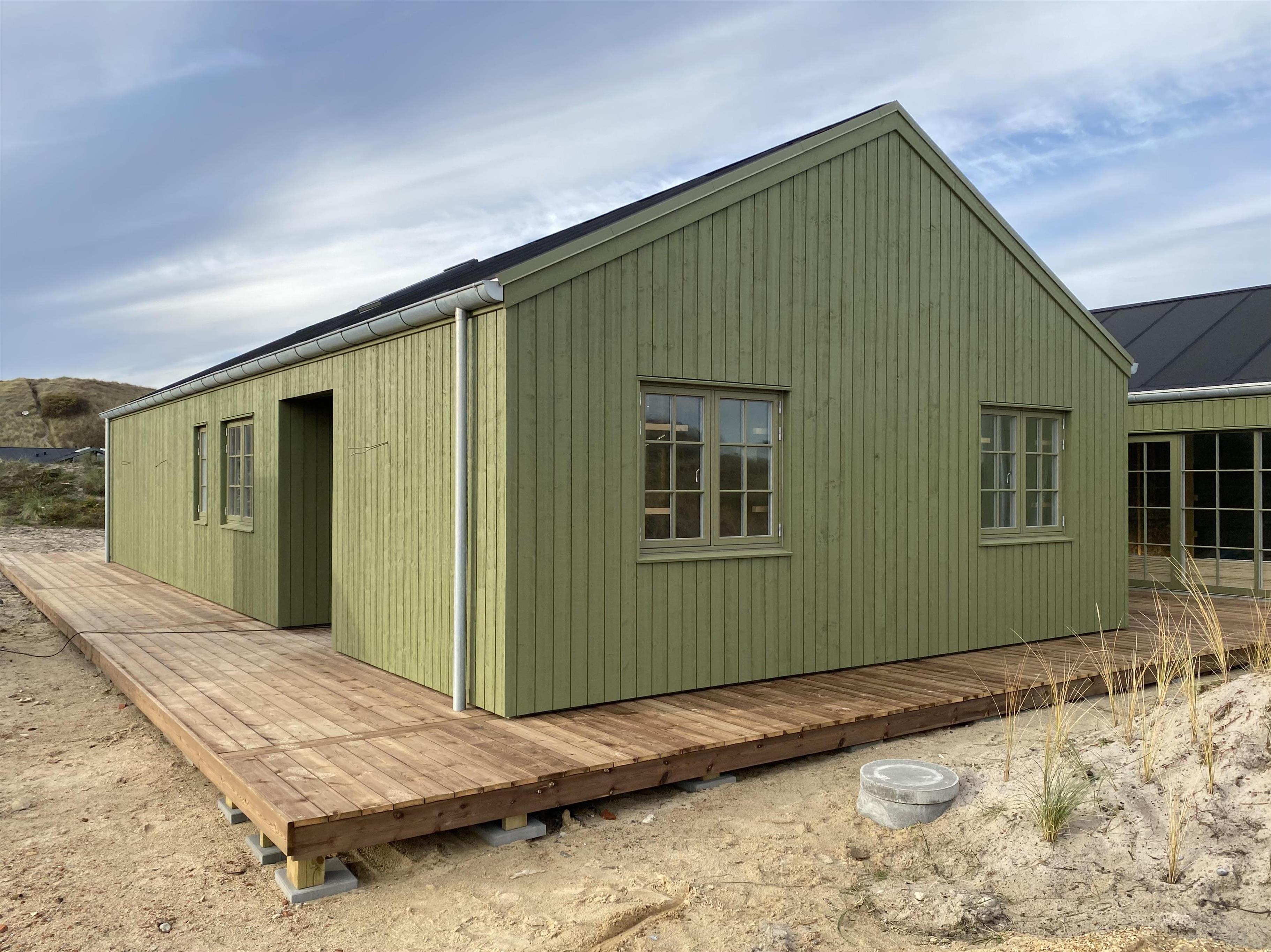 Velkommen til et moderne og indbydende sommerhus fra 2026 med alt, hvad I behøver for en afslappende og aktiv ferie ved Vesterhavet. Her kan op til 18 personer og 2 hunde nyde ferien blot 200 meter fra stranden. Med sin grønne facade falder sommerhuset i ét med det naturskønne område og skaber en harmonisk forbindelse til den omkringliggende natur. Sommerhuset er 240 m² stort og byder på luksuriøse faciliteter og fantastisk beliggenhed med kort afstand til indkøbsmulighed og natur.