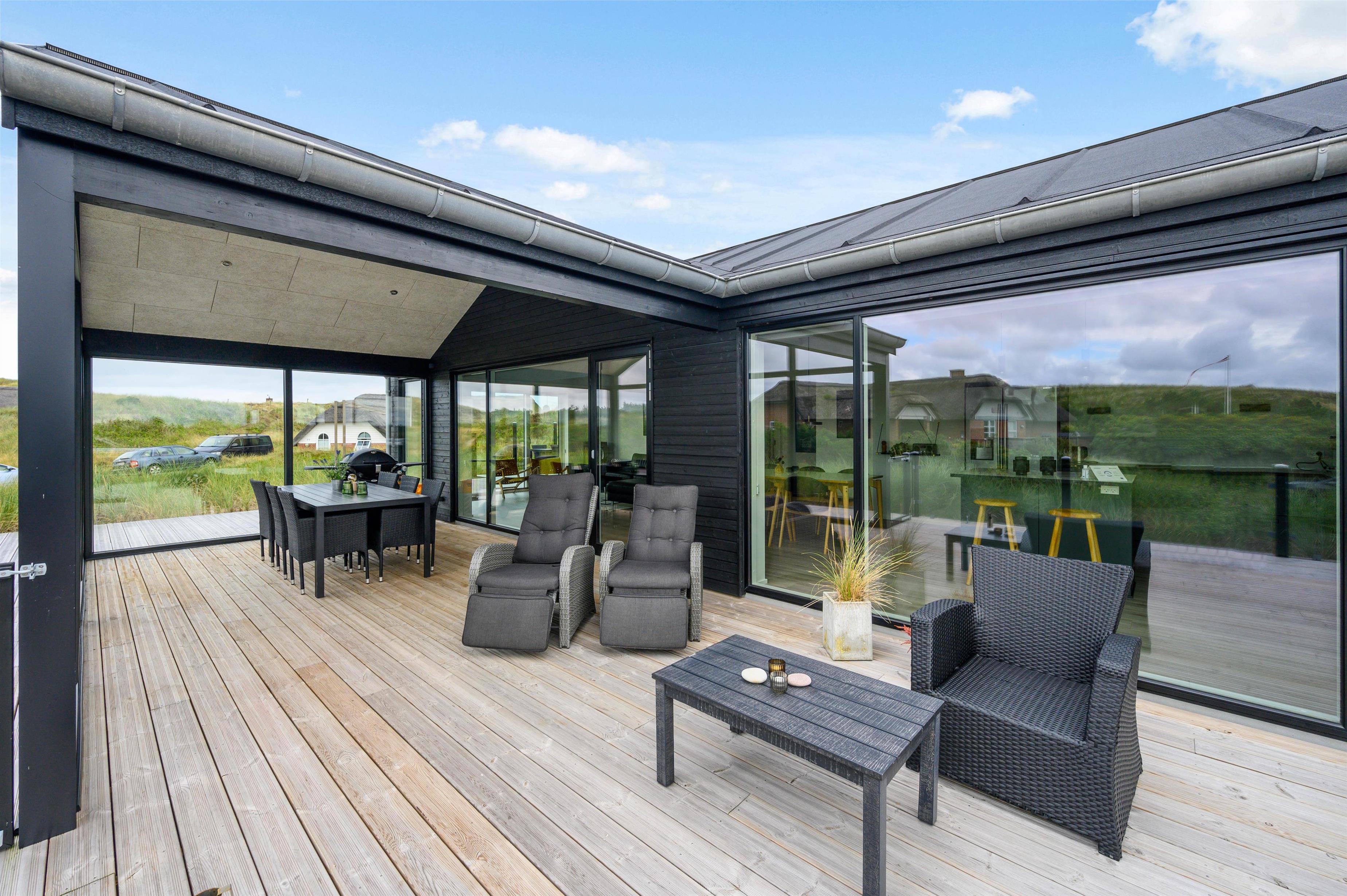Også udvendigt får I de lækreste omgivelser. Bilbergsvej 79 byder på en skøn udestue, så I kan nyde den friske havluft og den fantastiske udsigt selv i regn og blæst, og der er selvfølgelig også sørget for gode havemøbler og liggestole til de varme sommerdage. Er I mere til en dukkert i Vesterhavet, er stranden kun i en afstand af 400 meter væk fra feriehuset.