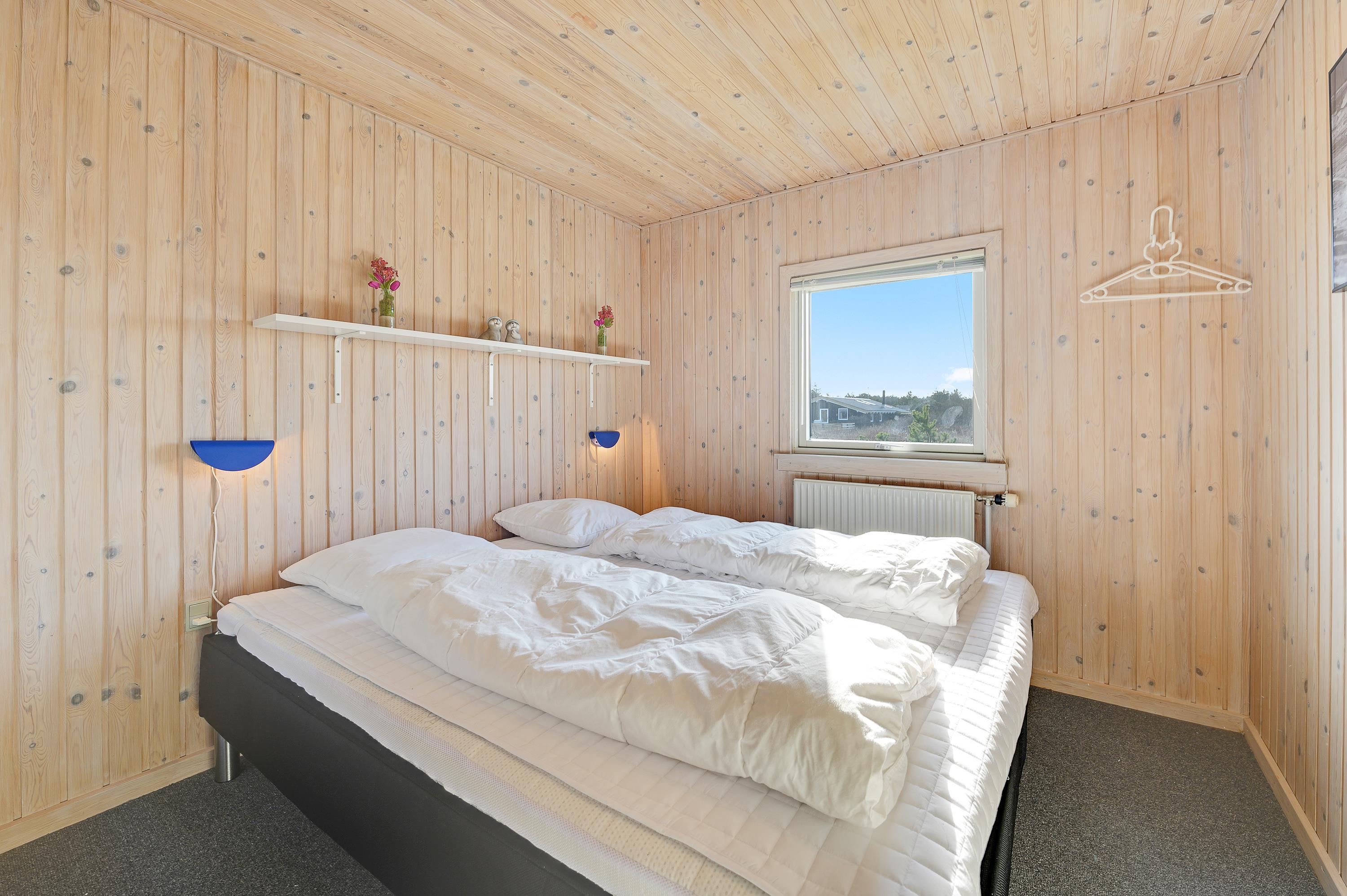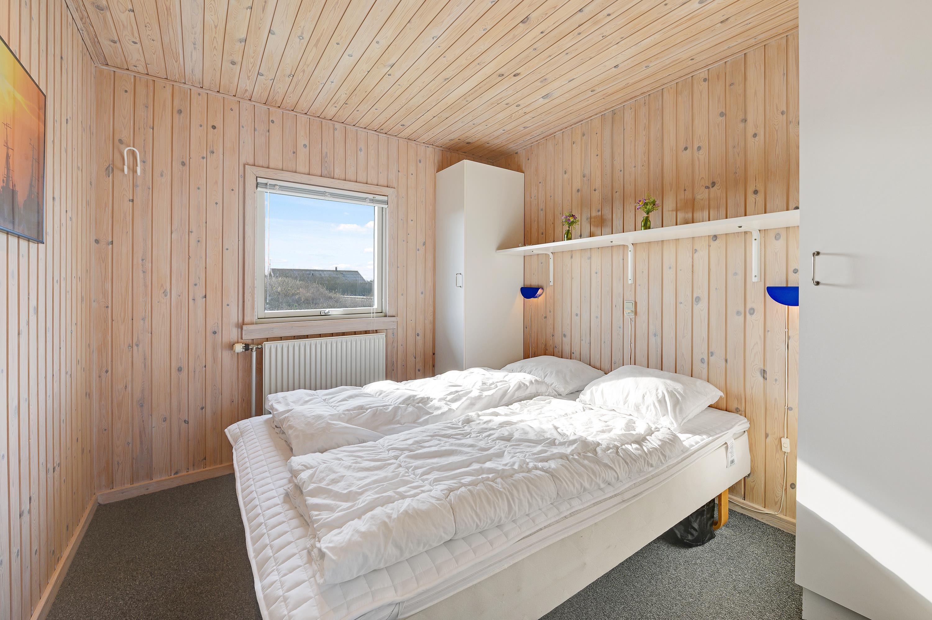 Det dejlige sommerhus har en god og hyggelig indretning. Feriehuset har 4 værelser, hvoraf de 3 af værelserne er med dobbeltsenge og det sidste med 1 køjeseng. Sommerhuset har desuden 2 gode badeværelser med gulvvarme, bruseniche og toilet. Det store badeværelse har endvidere spa og sauna.