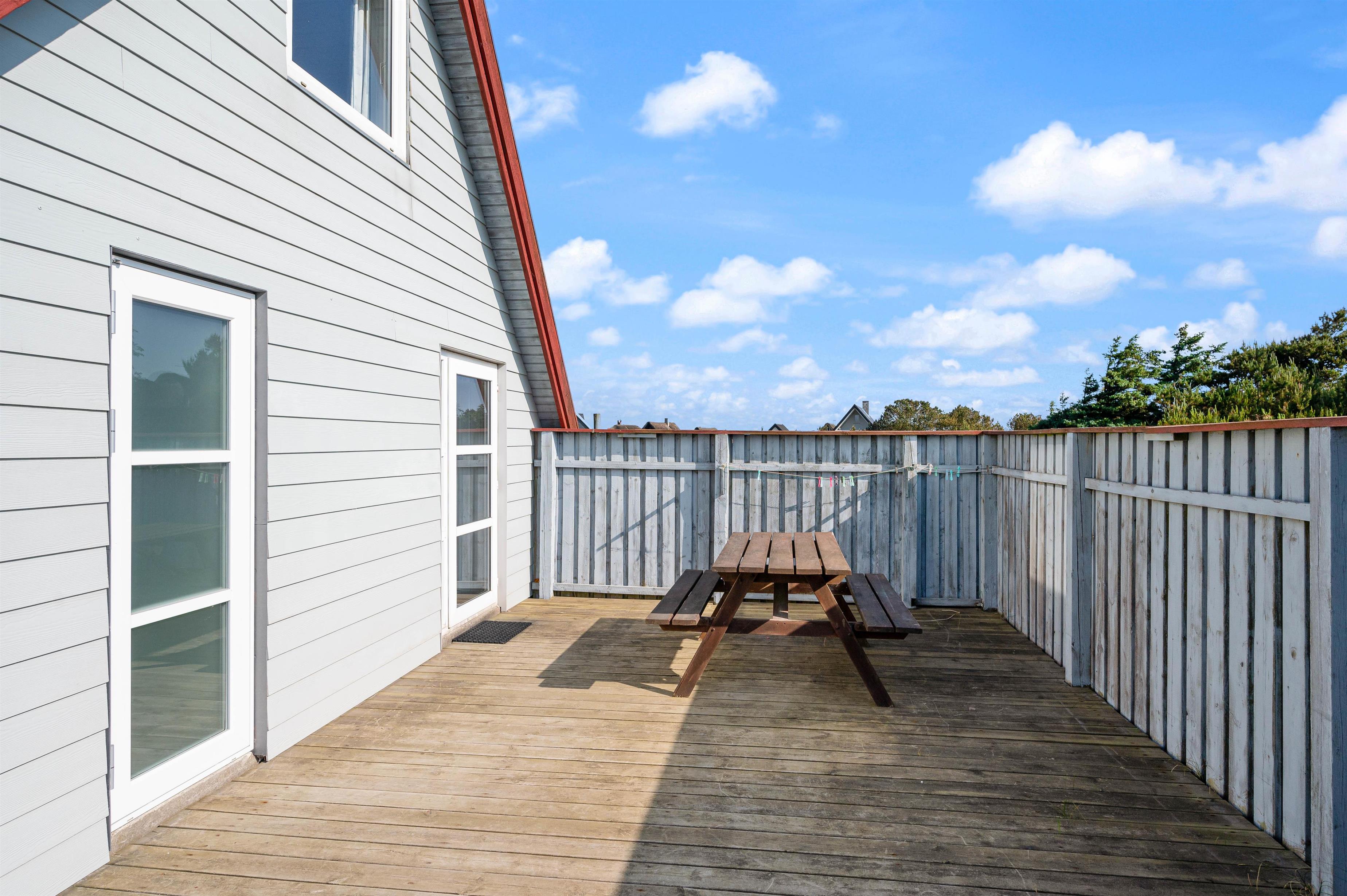 Den lukkede terrasse er særdels velegnet for familen med småbørn eller hund. Og her er virkelig mulighed for altid at finde en lækrog, hvor solen og den friske, salte havluft kan nydes ganske ugeneret. For de yngste er gyngen helt sikkert et hit.