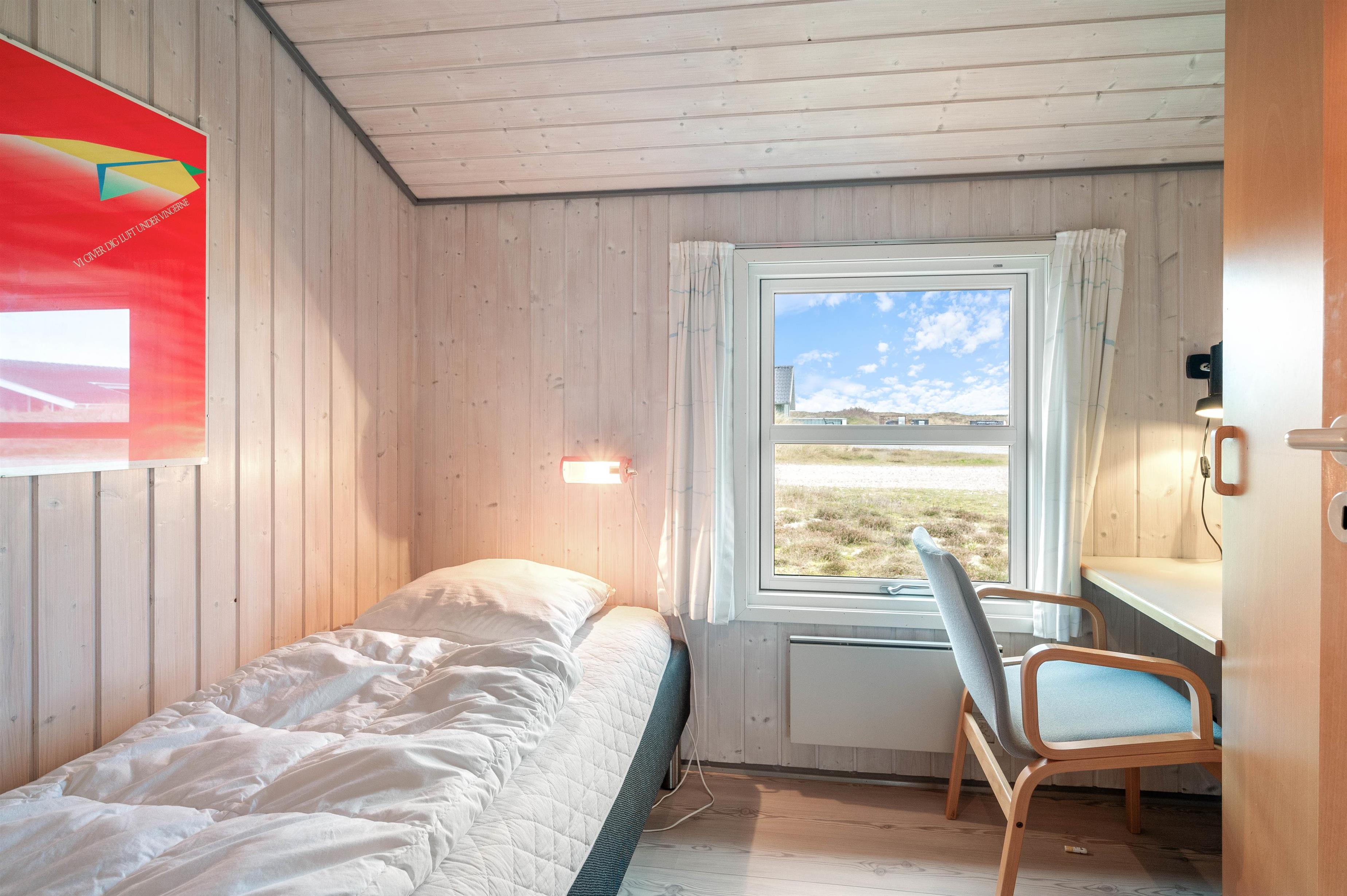 Her får I et rigtigt dejligt sommerhus med en hyggelig indretning og gode lyse rum. Feriehuset kan har plads til seks gæster, der kan fordele sig på de fire soveværelser. Alle værelserne er indrettet med gode senge, så I sikres en god nattesøvn. I det nordligste hjørne finder I et badeværelse, hvorfra I har adgang til saunaen. Her kan I for alvor få koblet af og få musklerne varmet igennem.
