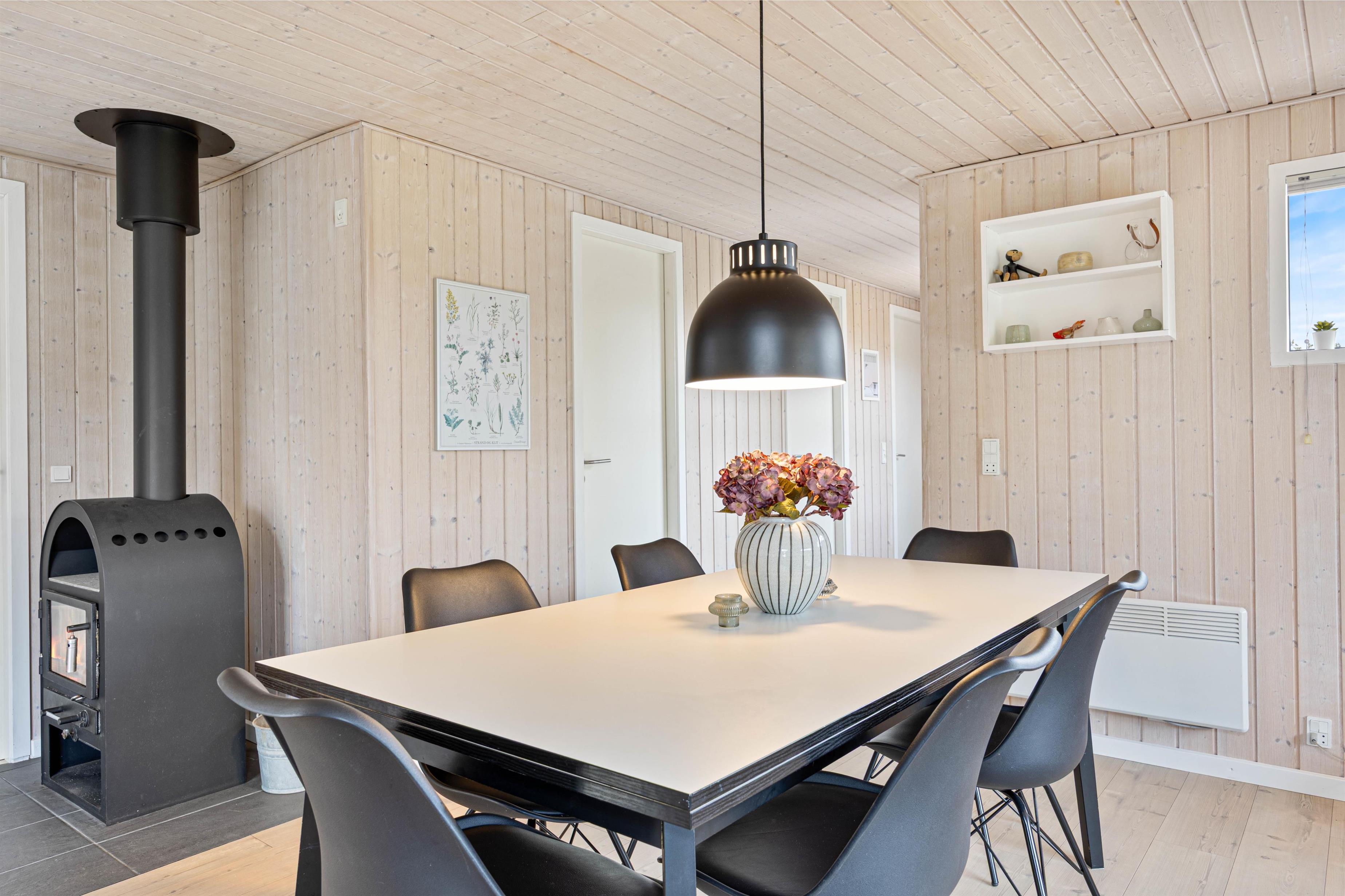 Det åbne køkken indeholder alt, hvad I har brug for til at lave lækre hjemmelavede måltider til hinanden – opvaskemaskinen sætter I bare i gang bagefter. Feriehuset indeholder også et praktisk indrettet badeværelse med bruser, og der er i alt 4 hyggelige soveværelser. De to af soveværelserne har komfortable dobbeltsenge, og 2 mindre soveværelser har hver en enkeltseng. Det betyder, at I kan fordele jer på de forskellige værelser og trække jer tilbage, som det passer jer bedst.