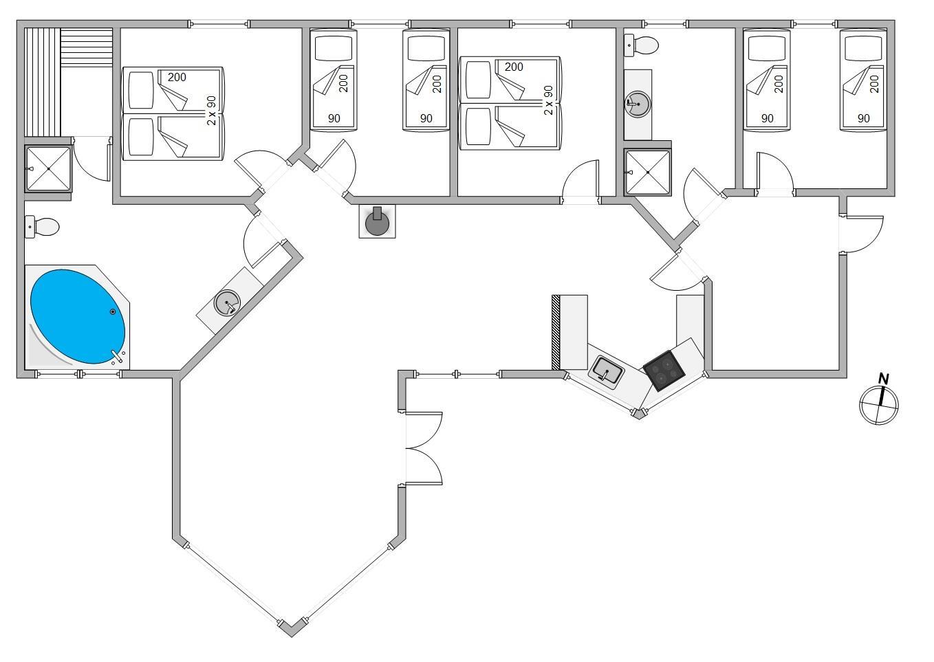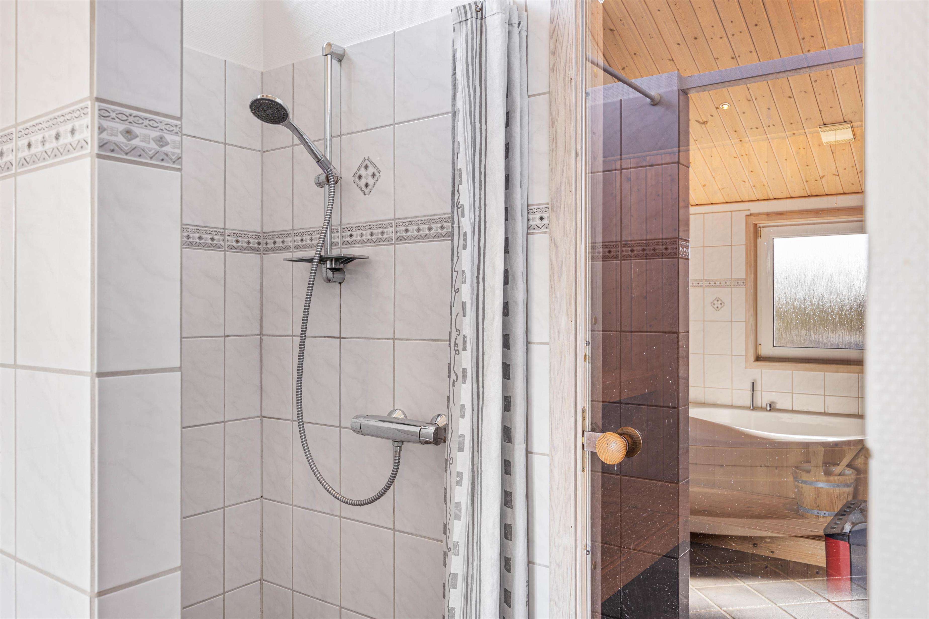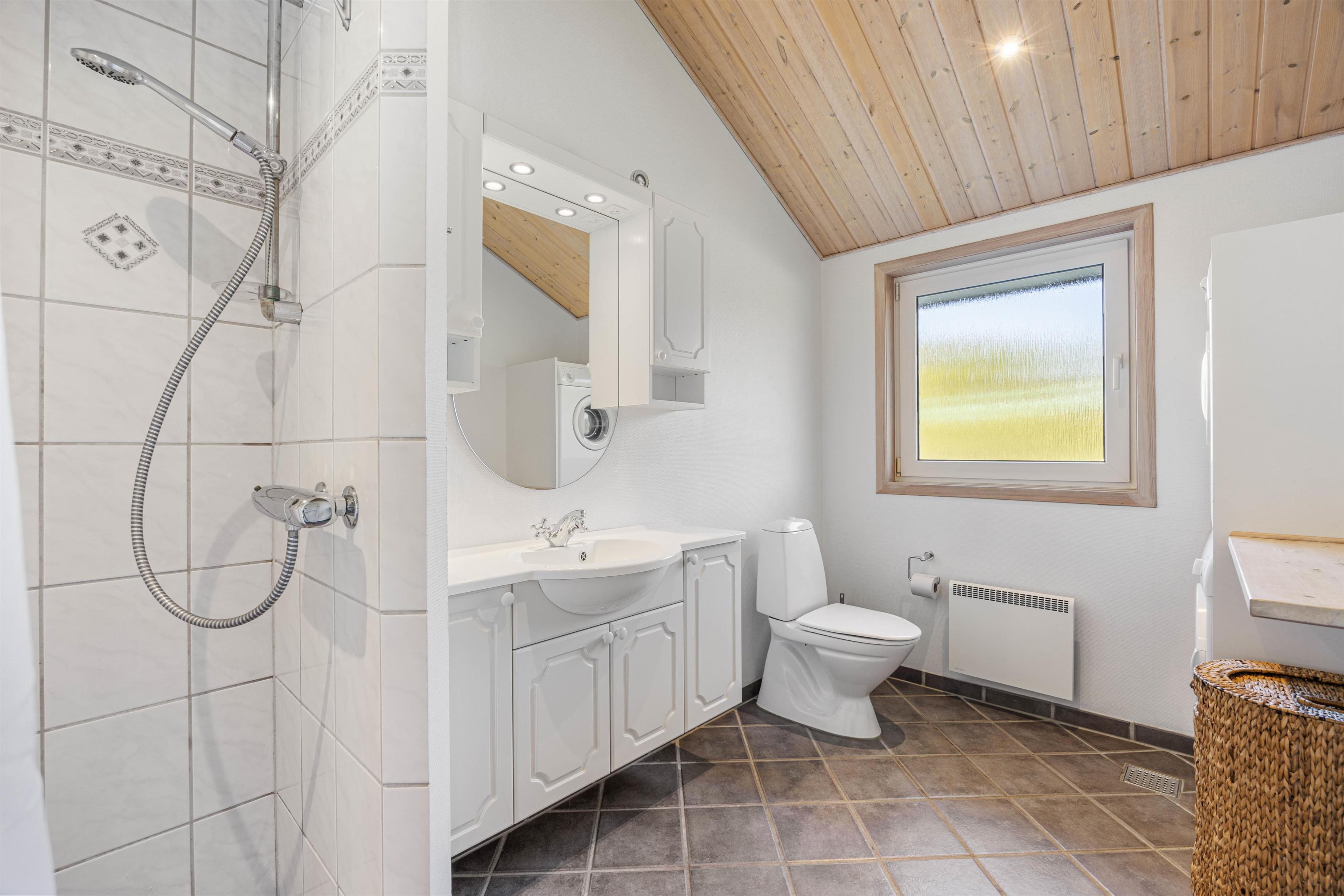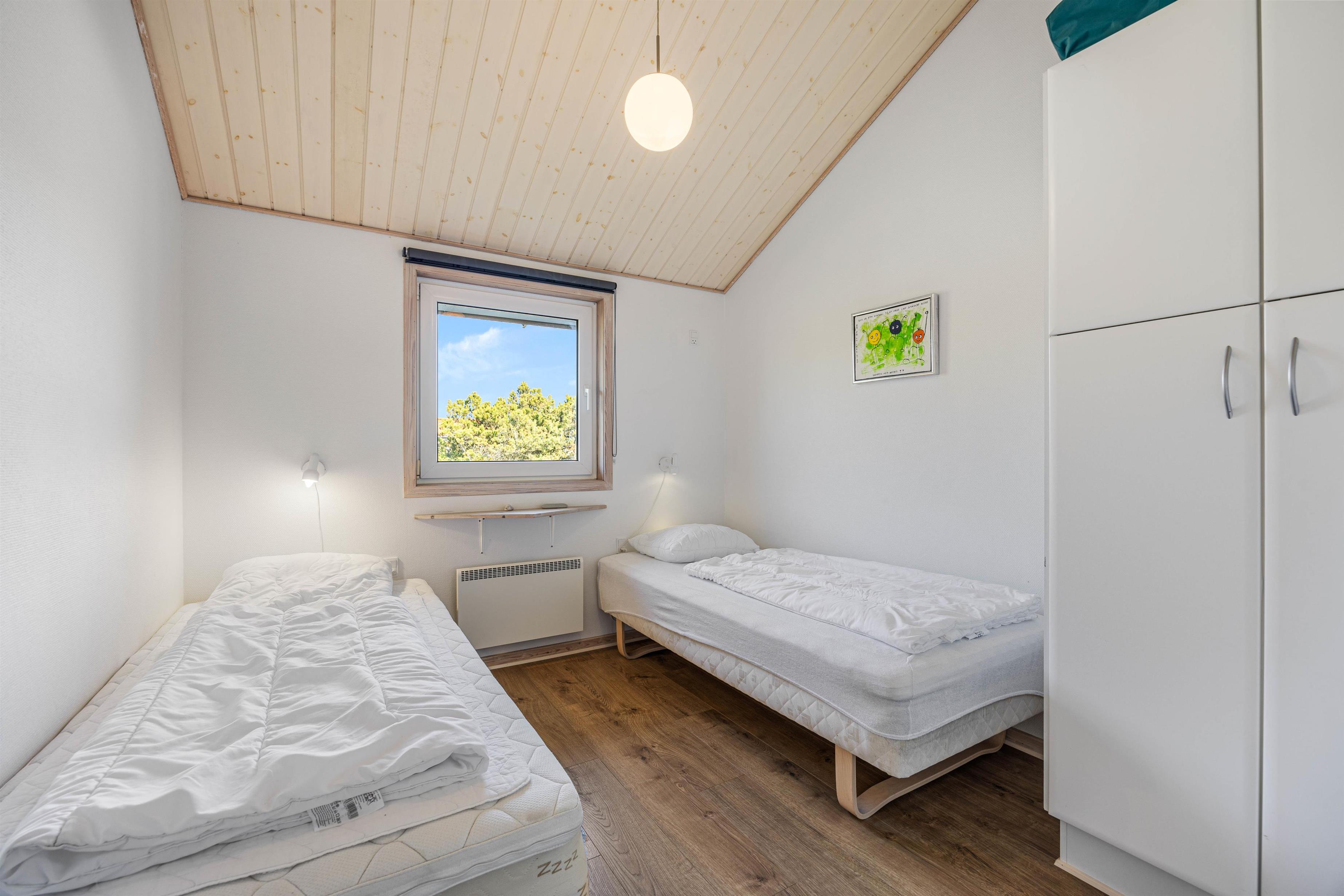 Her er 4 rummelige og indbydende soverum (2 med dobbelt- og 2 med enkeltsenge) med komfortable boxmadrasser og et stort spa-badeværelse med sauna, som gør sommerhuset til den perfekte ramme om den vellykkede og afslappende ferie for 8 personer. Sommerhuset har hele 2 badeværelser, så der ikke opstår kø om morgenen. Begge badeværelser er udstyret med gulvvarme. Her er desuden mulighed for at vaske lidt tøj eller håndklæder i løbet af ferien, da sommerhuset råder over vaskemaskine og tørretumbler.