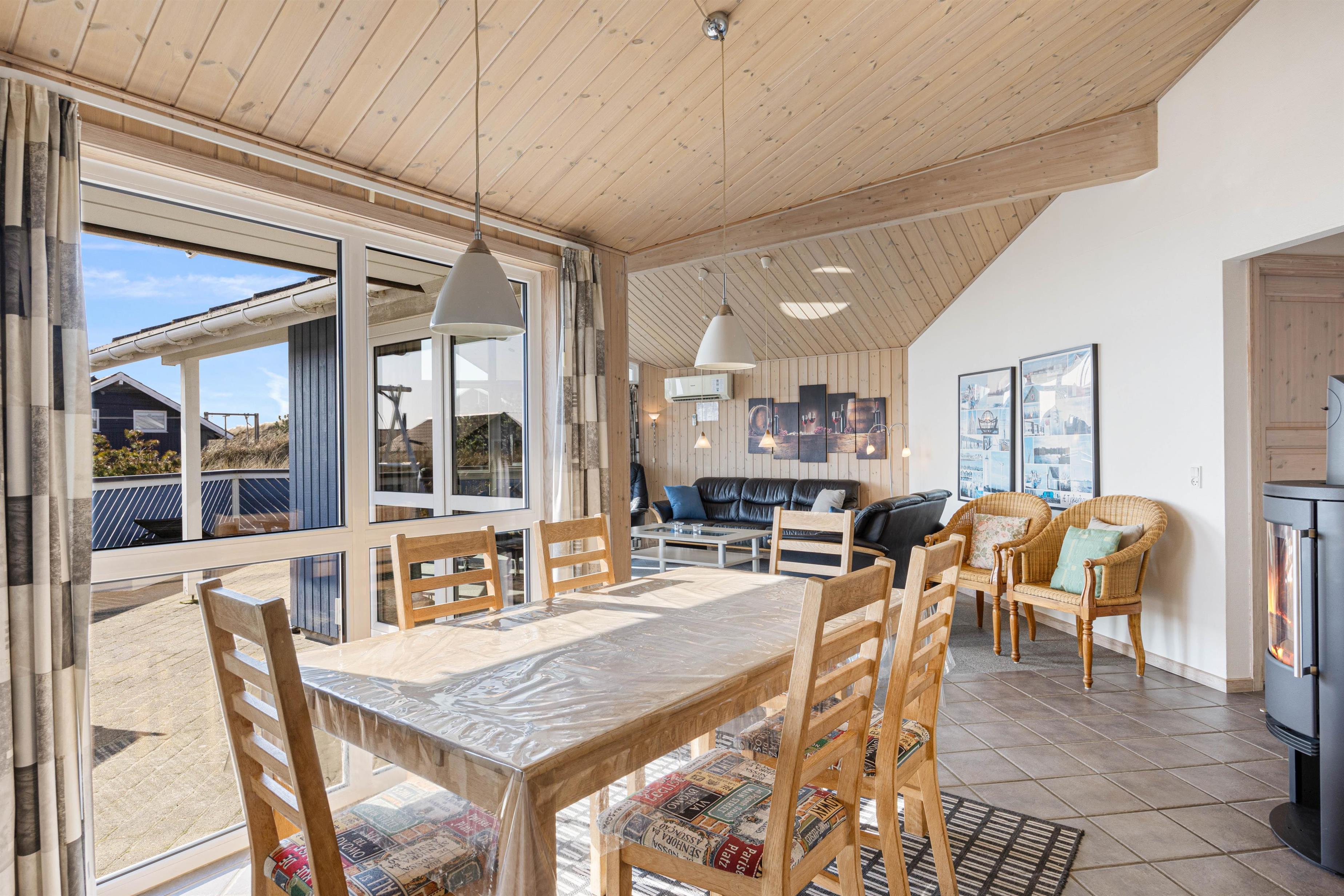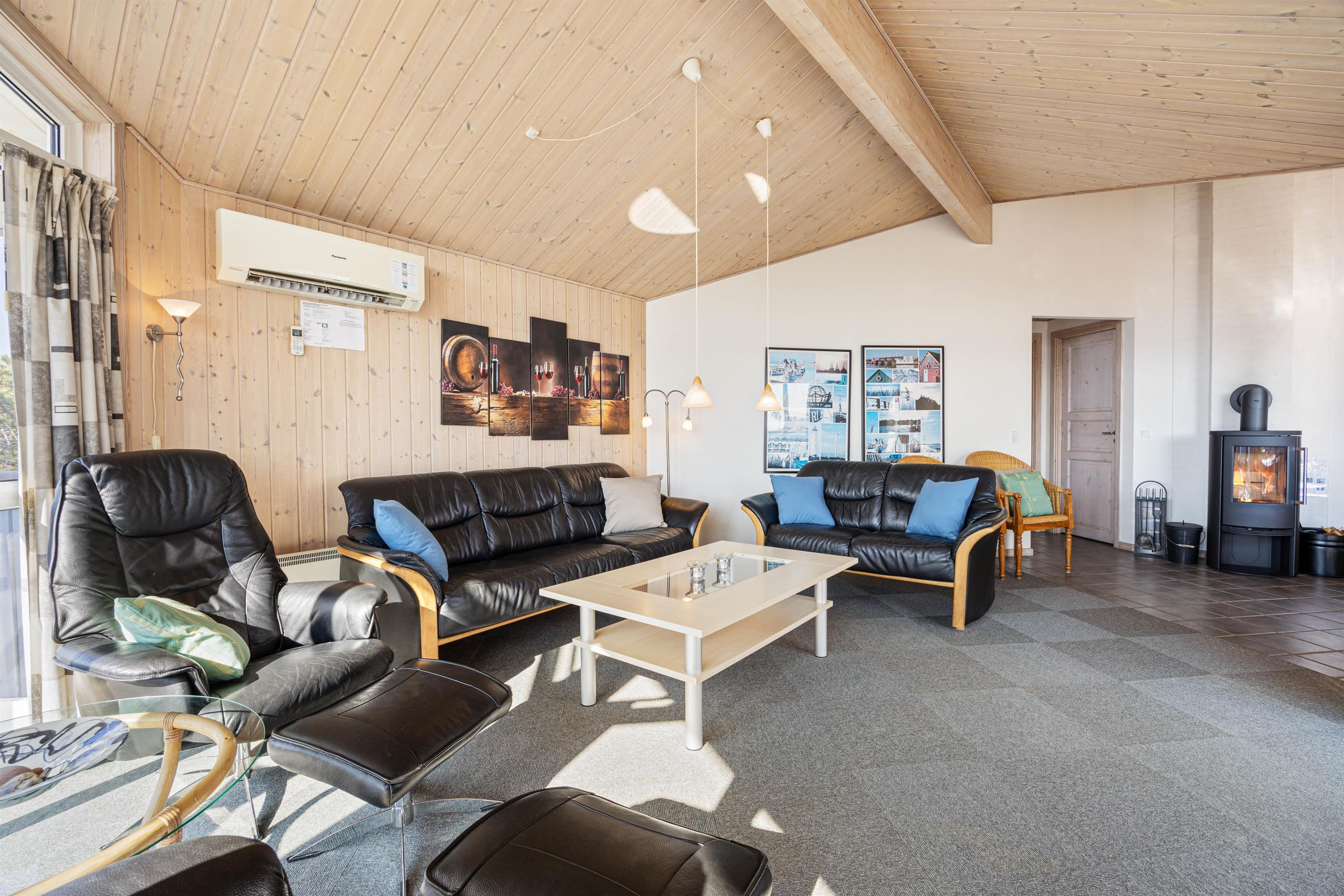 Feriehuset opvarmes af en energibesparende varmepumpe / aircondition, som sammen med en effektiv isolering gør sommerhuset yderst energivenligt. Som prikken over i'et har sommerhuset også en skøn brændeovn, som både spreder huggelig feriestemning og varme.