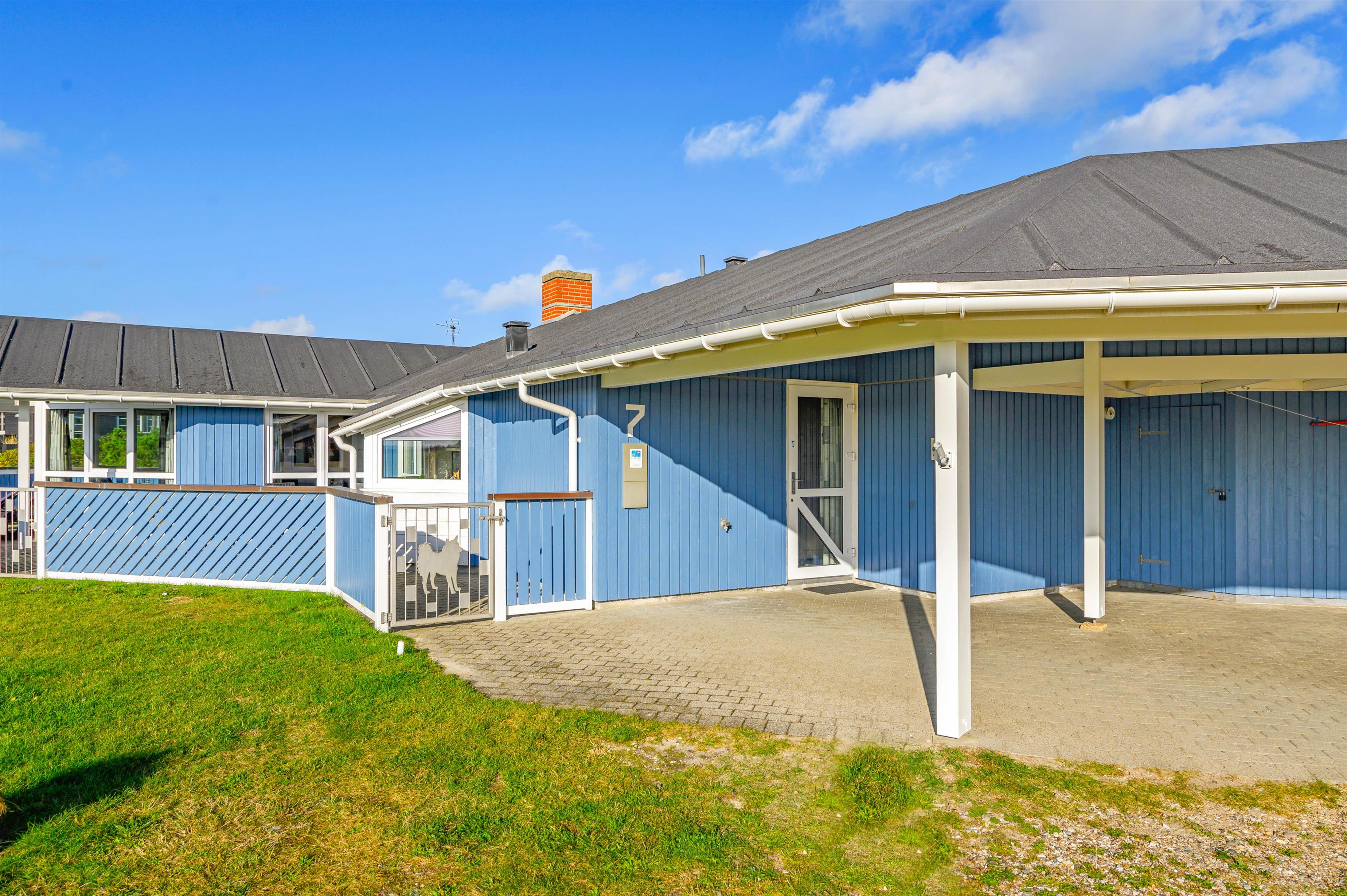 På Humlegårdsvej 7 i Bjerregård er dette virkelig flotte og meget velplejede, energivenlige feriehus beliggende. Feriehuset til 8 personer har en smagfuld og moderne indretning med stort spa-badeværelse og sauna. Det har en dejlig beliggenhed på en fredelig naturgrund tæt på stranden, som blot ligger 350 meter herfra. Den store afskærmede terrasse indbyder til hyggelige stunder med fine læforhold. Som et ekstra plus er der carport til sommerhuset, så bilen kan holde i læ.
