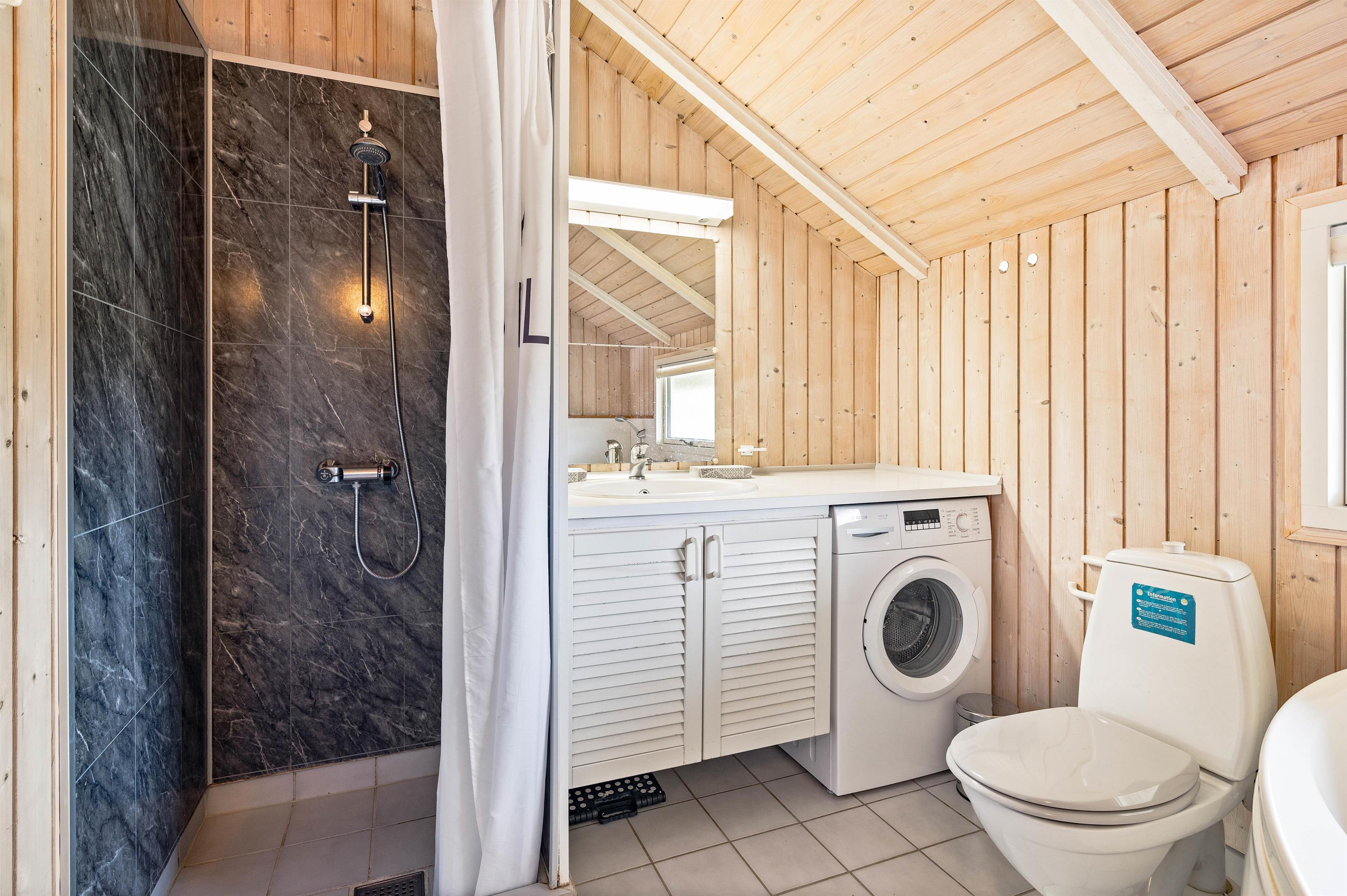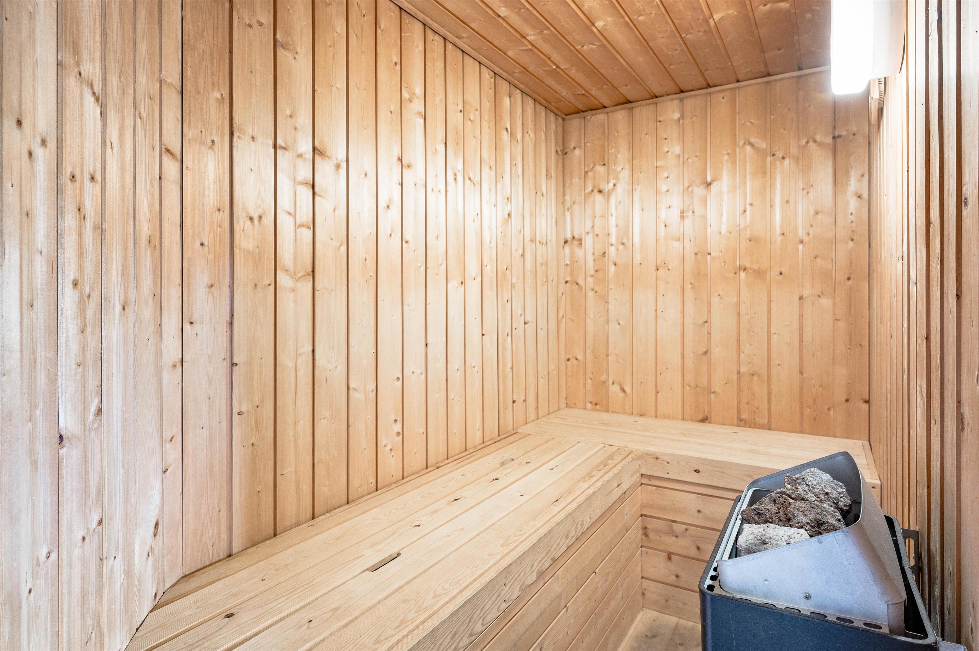 Badeværelset har gulvvarme, sauna og spabad, så I kan slappe af i fuldstændig ro. De 3 soveværelser tilbyder afslappende nætter – 2 med dobbeltsenge (140 cm brede) og 1 med køjesenge. Med vaskemaskine til rådighed kan I opfriske garderoben i løbet af ferien, og en energibesparende varmepumpe sørger for behagelige temperaturer året rundt.