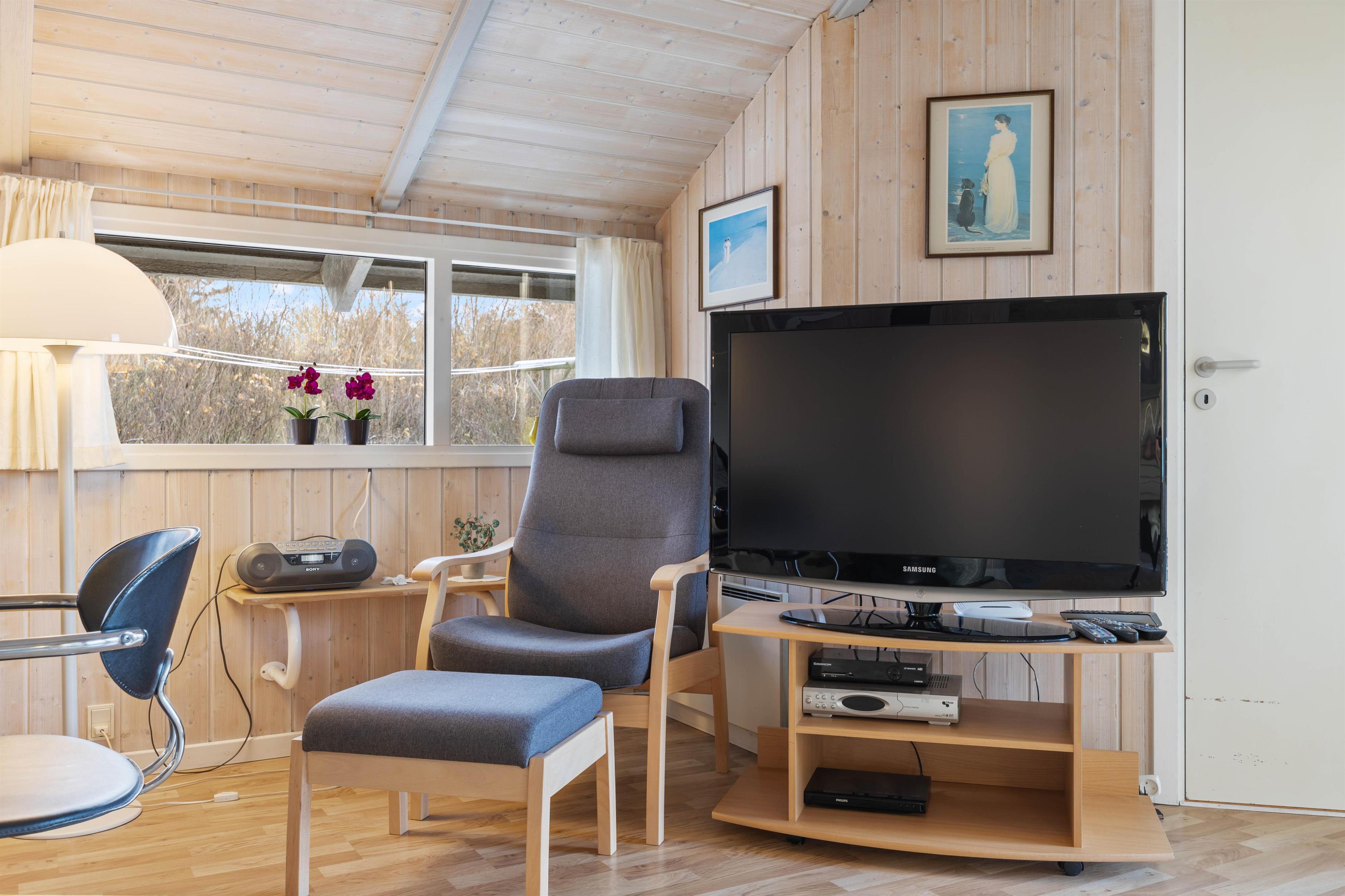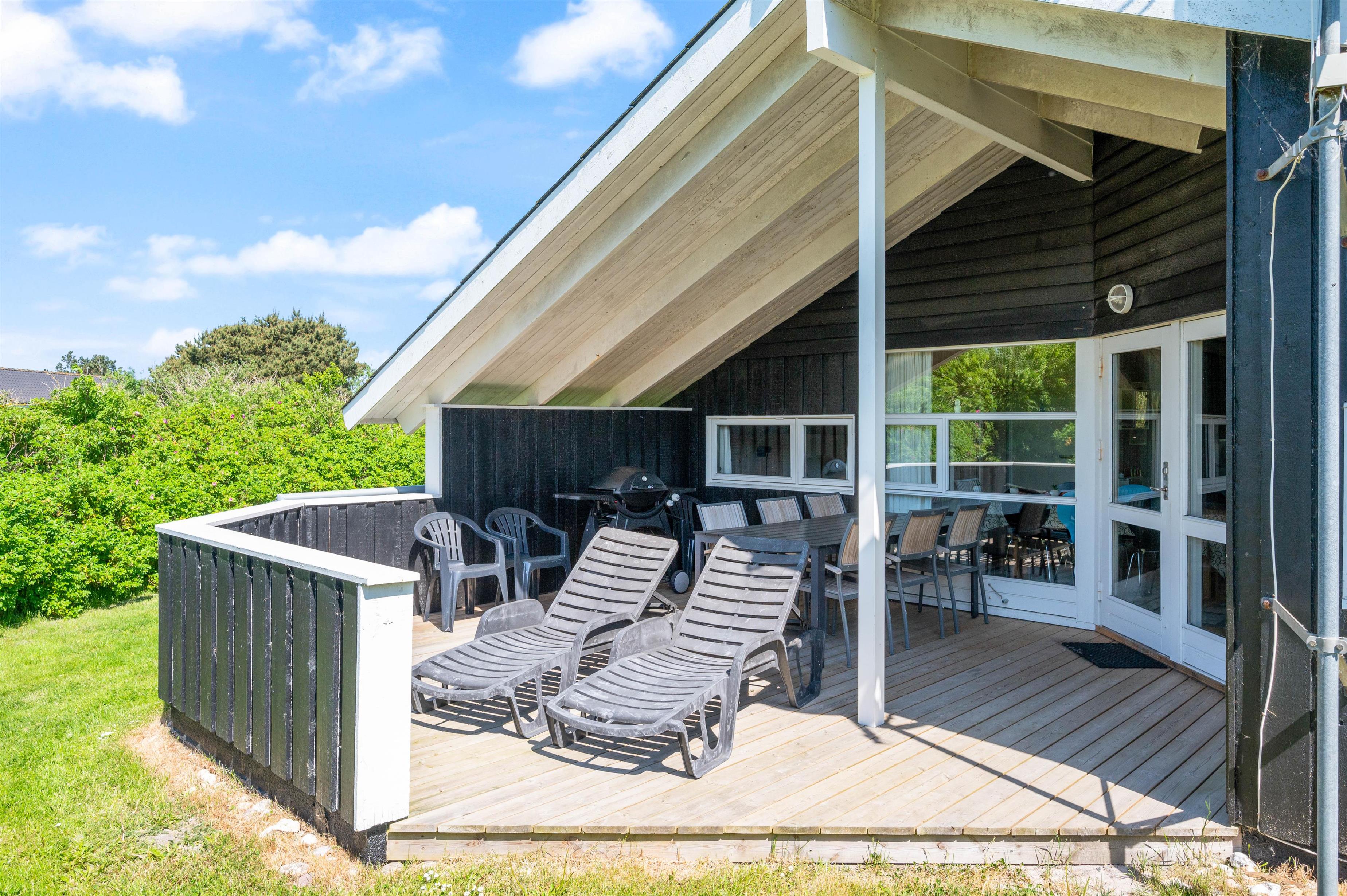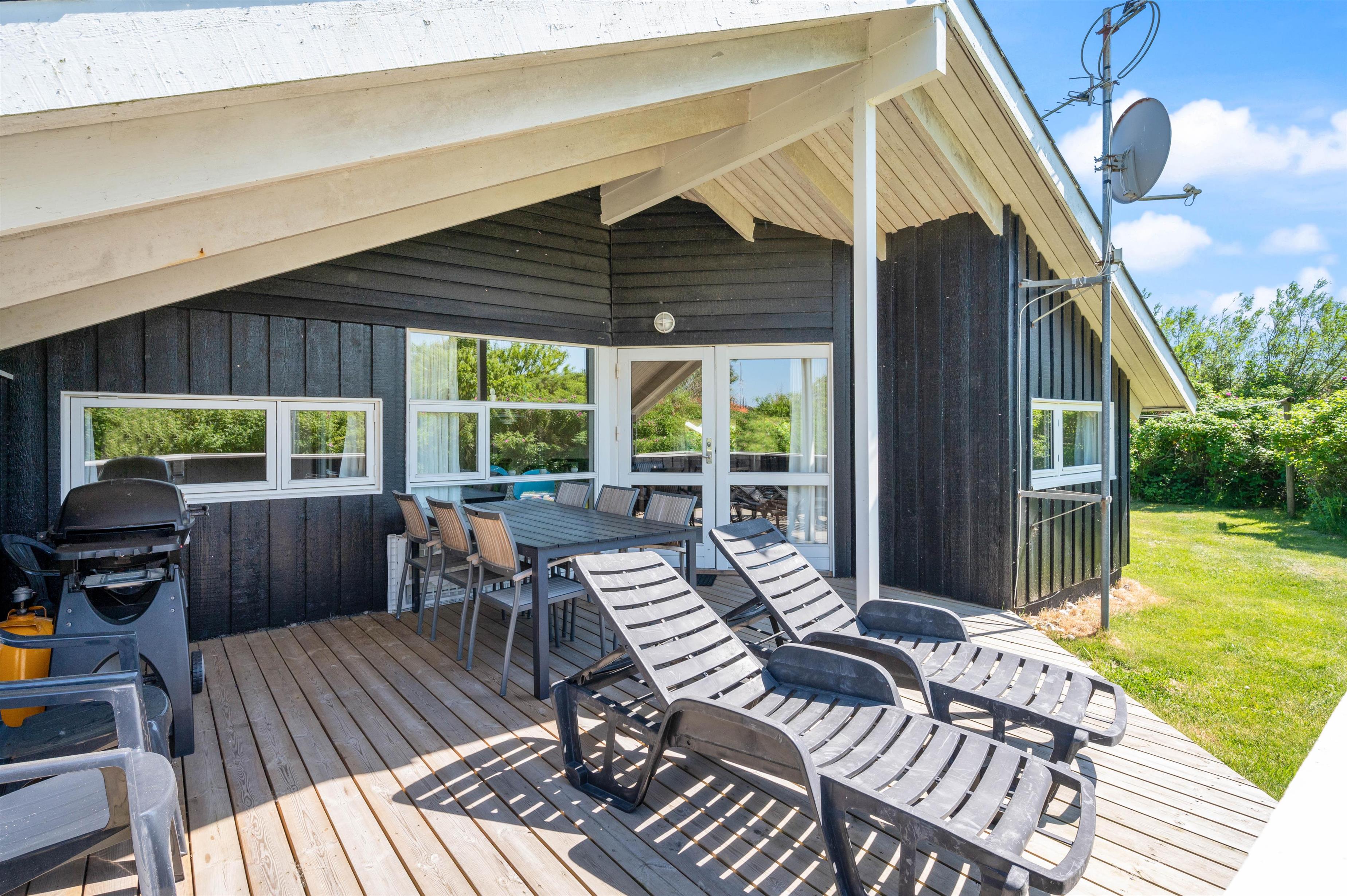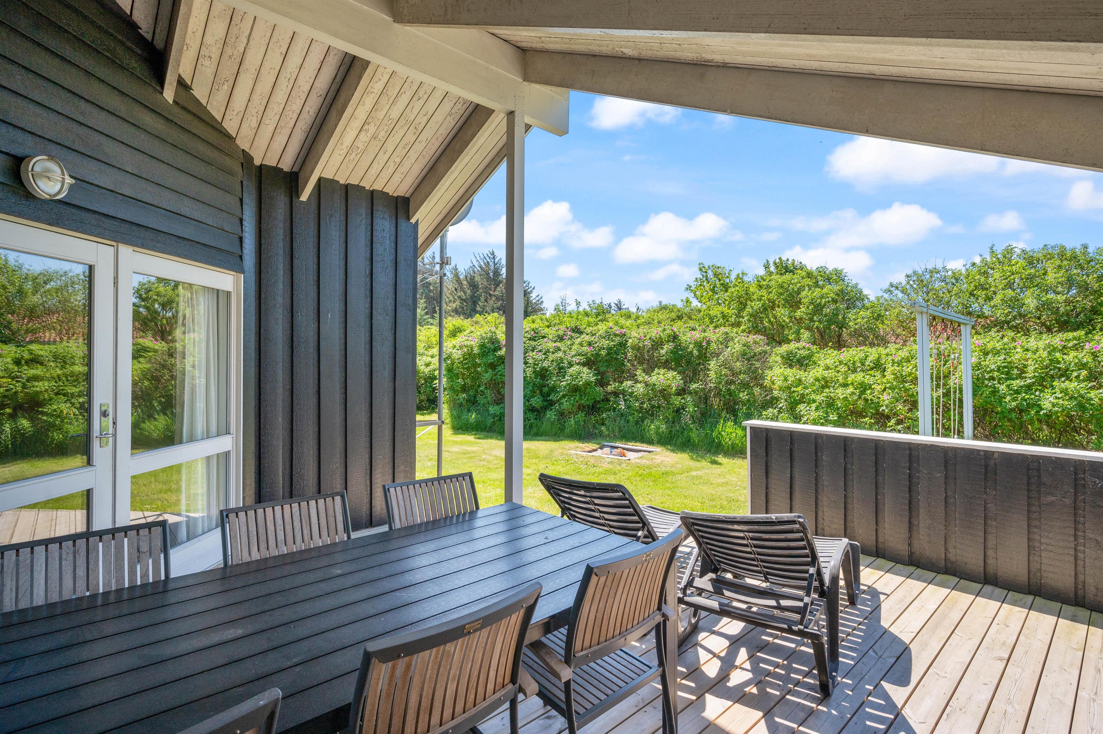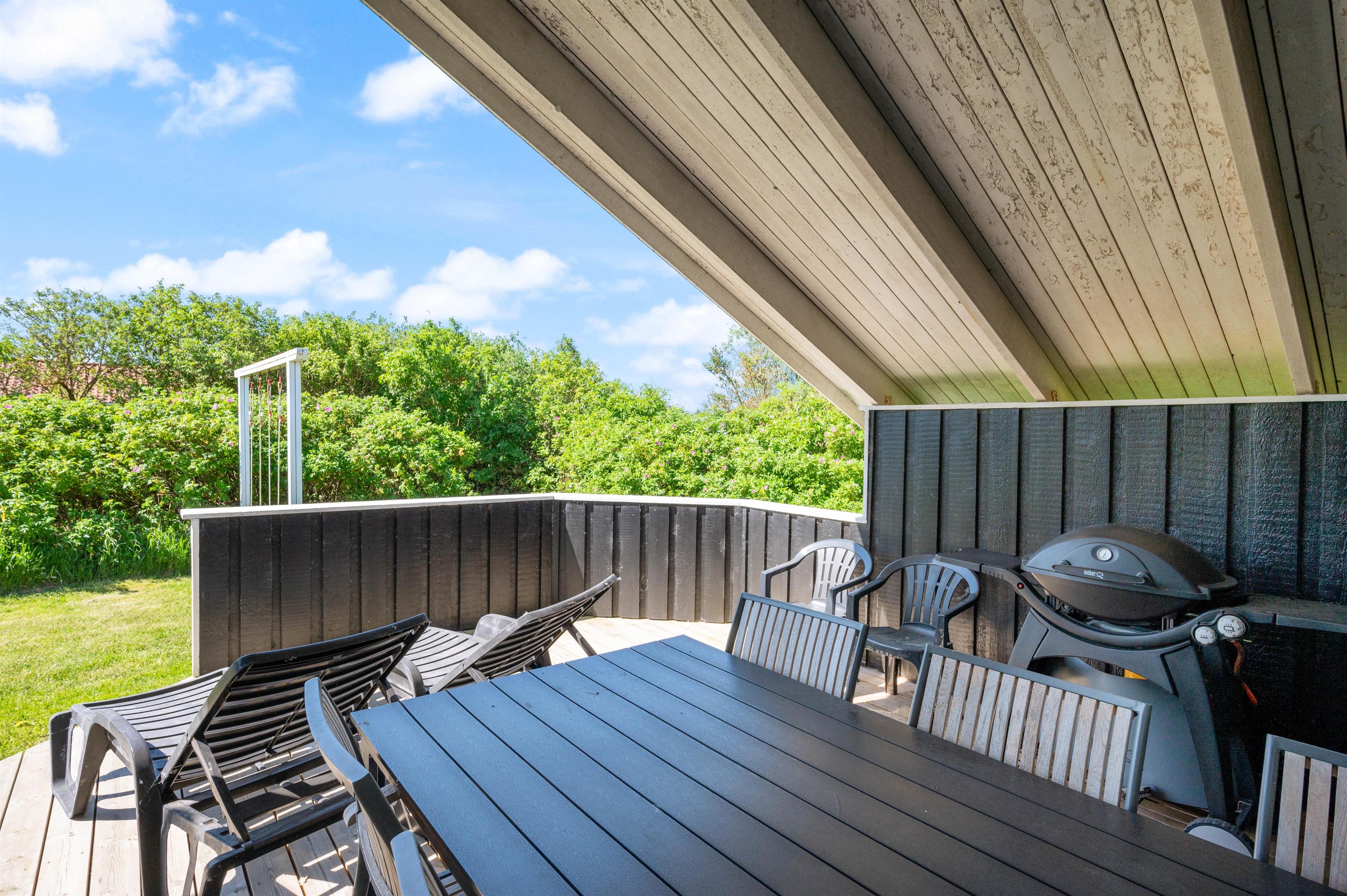 Den ca. 1200 kvm store plænegrund er omgivet af buske og har en dejlig, delvist afskærmet terrasse. Sæt dig til rette i de komfortable havemøbler med en frisk kop kaffe og slap af med din yndlingsbog. Imens kan børnene spille fodbold eller vikingeskak på plænen, lege i sandkassen eller gynge. Til en hyggelig grillaften er der også en gasgrill ved feriehuset. Med under 1 kilometer til Vesterhavet er det oplagt med en vandretur langs stranden med hund og børn. Så kan alle være tilpas afslappede ved sengetid. En solnedgang ved Vesterhavet er altid en oplevelse.