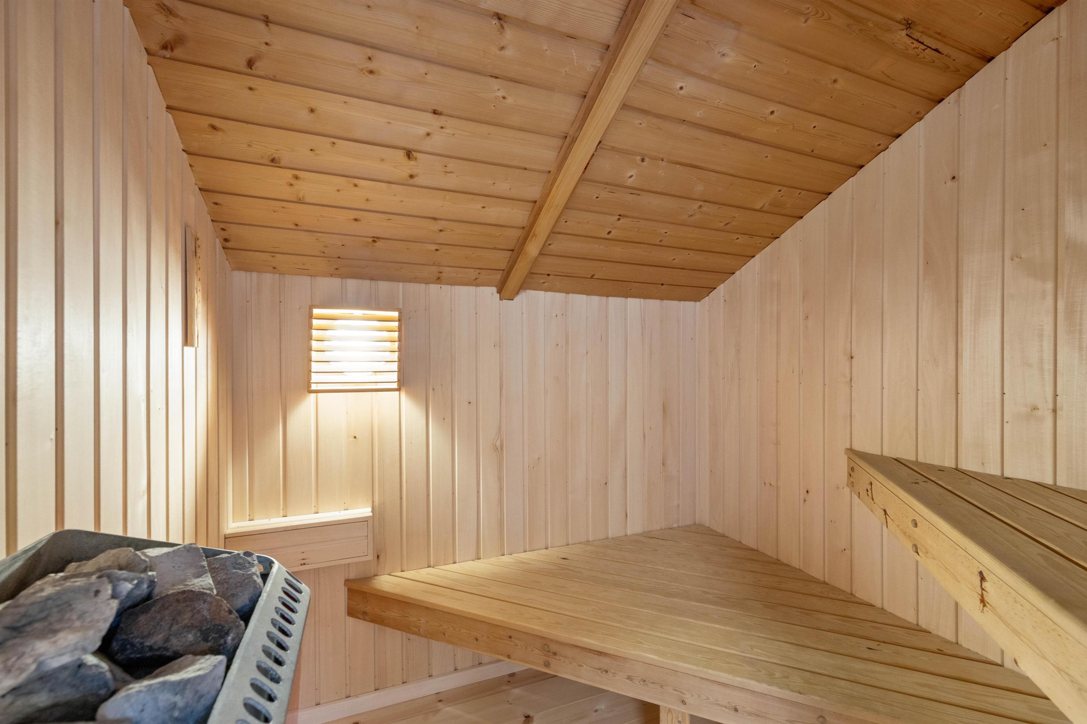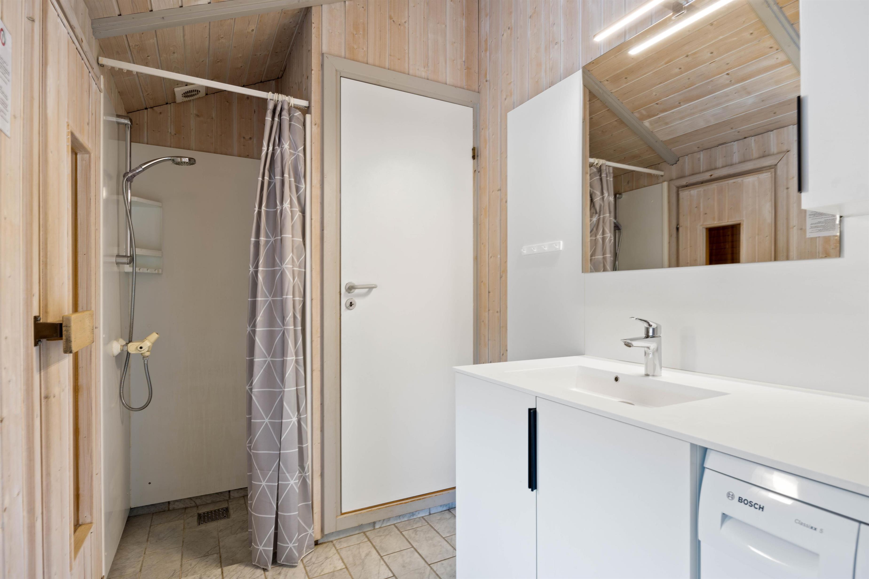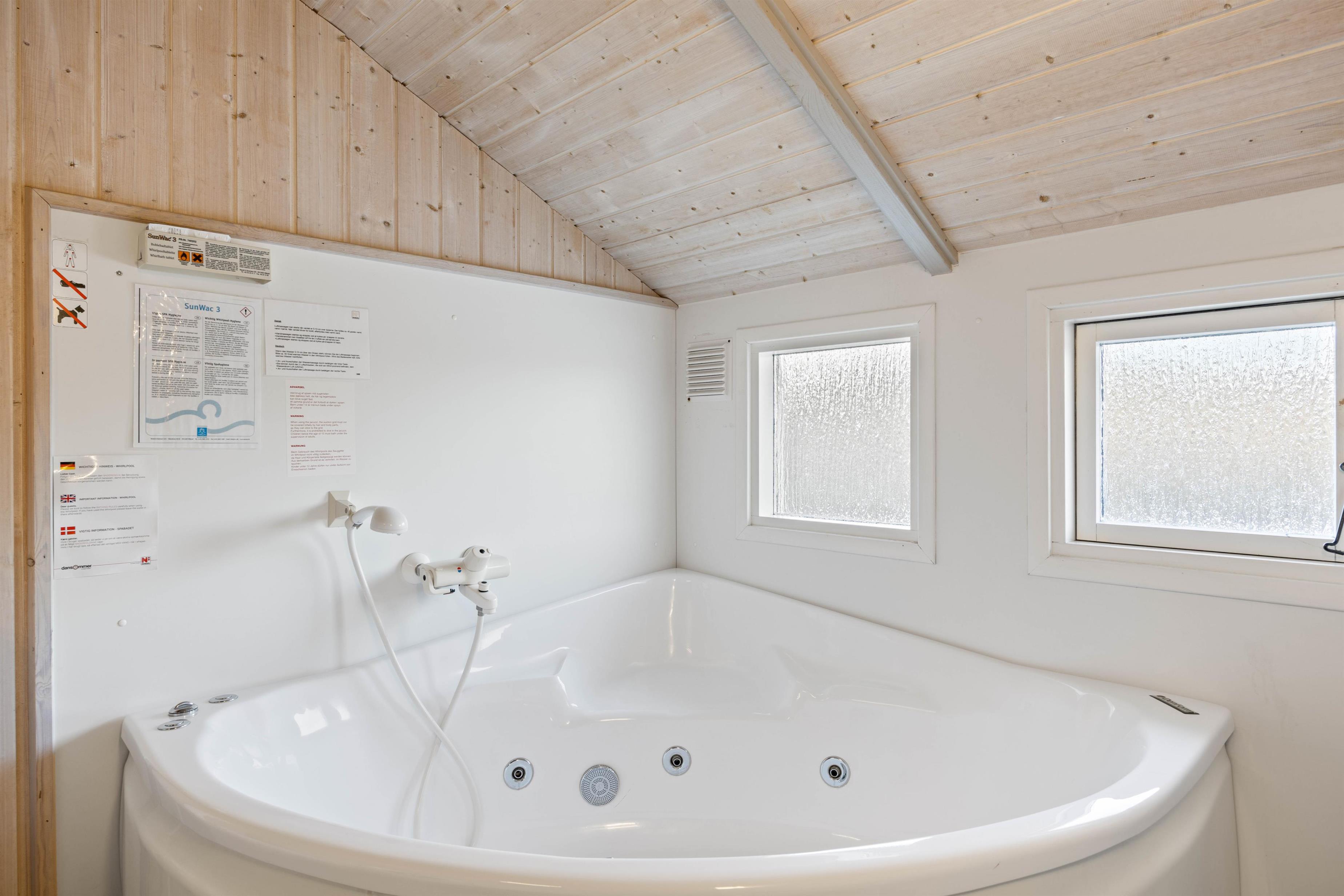 På Humlegårdsvej 4E har I jeres eget wellnessområde, da det store badeværelse både har adgang til spa og sauna. Der er også et gæstetoilet i feriehuset, så man kan roligt tage sig god tid til wellness. Vær opmærksom på, at der er et trin ned til badeværelset og gæstetoilettet. De 4 soveværelser er indrettet, så der er dobbeltsenge i 2, og 2 enkeltsenge i hvert af de resterende værelser. Her kan I blive godt udhvilede i de komfortable senge. Læg mærke til, at vesterhavsluften gør noget godt for nattesøvnen. Der er vaskemaskine til rådighed, hvis I får brug for at friske håndklæderne op på ferien.