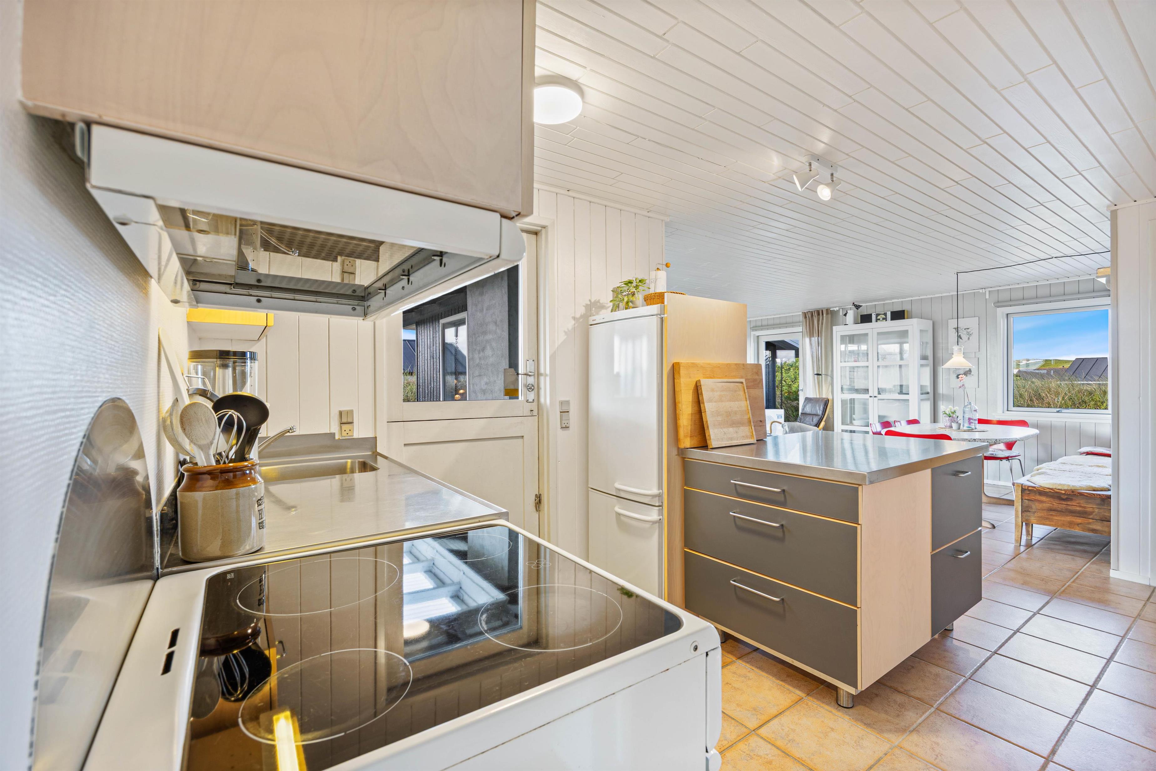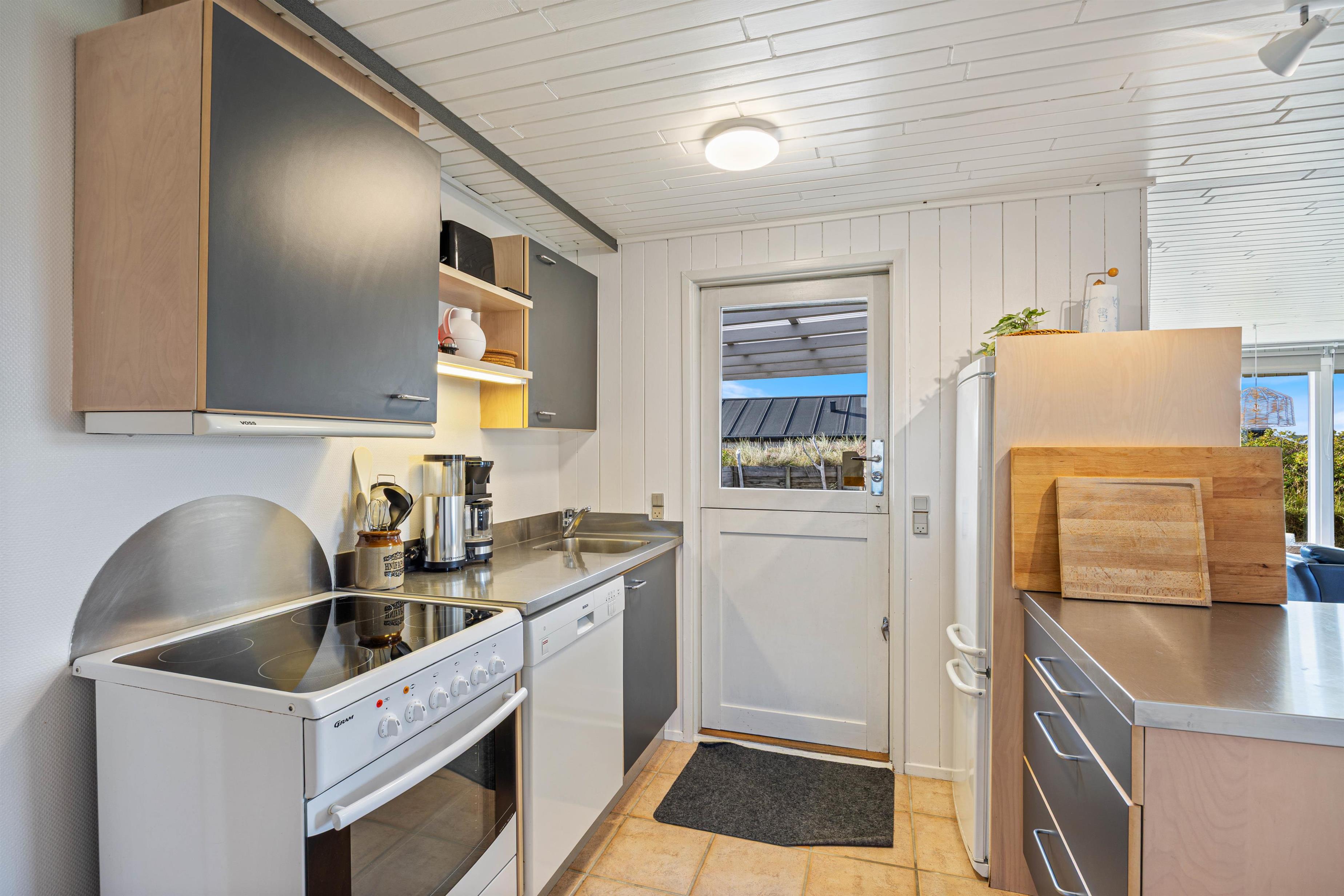 Indenfor finder I hurtigt feriehusets hjerte, nemlig den store stue i forbindelse med køkkenet, hvor I kan samles alle sammen. Her kan I nyde en lækker middag som i sammen kan lave i køkkenet, og I skal ikke tænke på opvasken, da sommerhusets opvaskemaskine klarer dette. Desuden kan I også finde både vaskemaskine og tørretumbler på feriehusets badeværelse, så I kan have rent tøj hver dag.