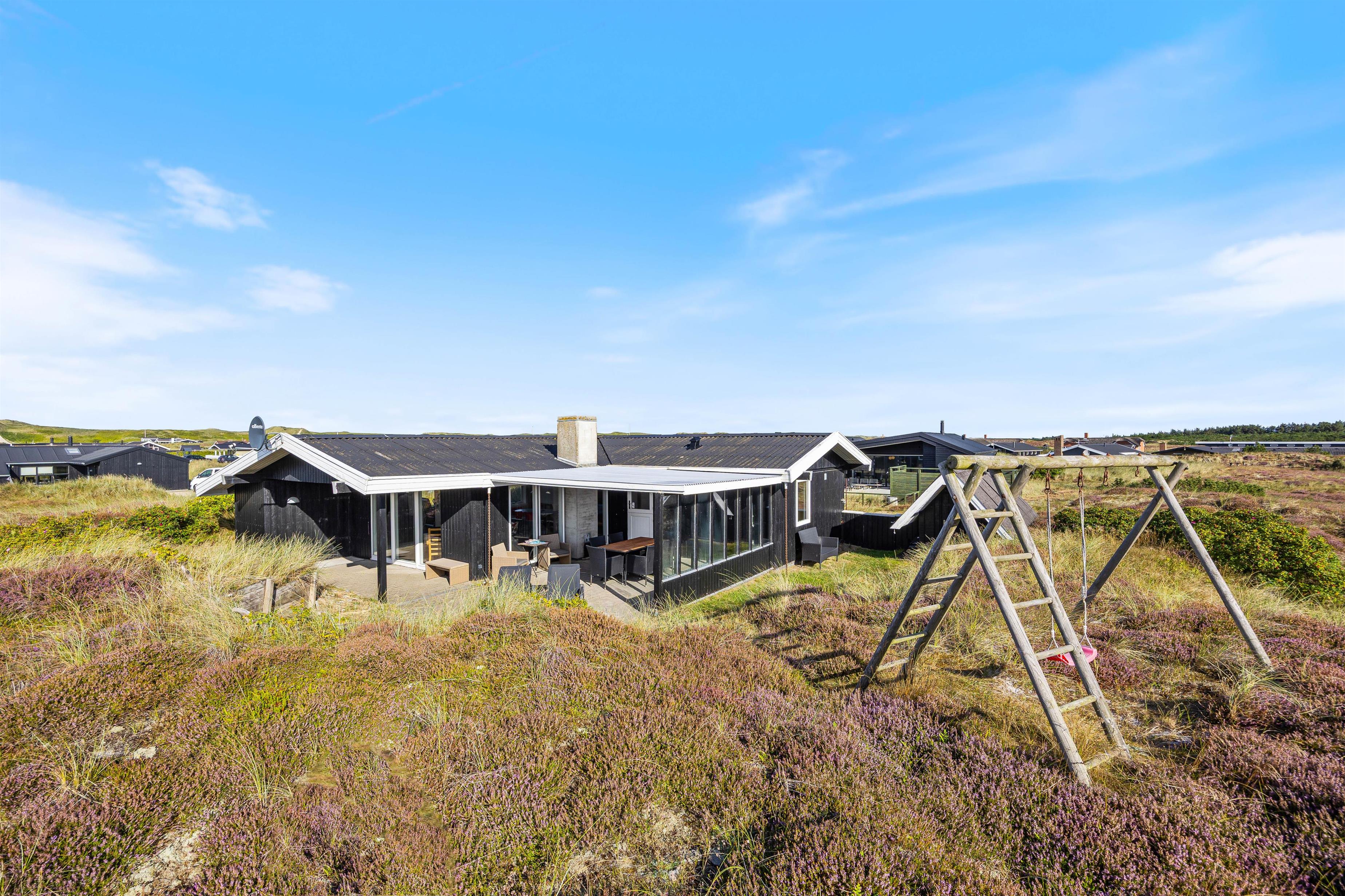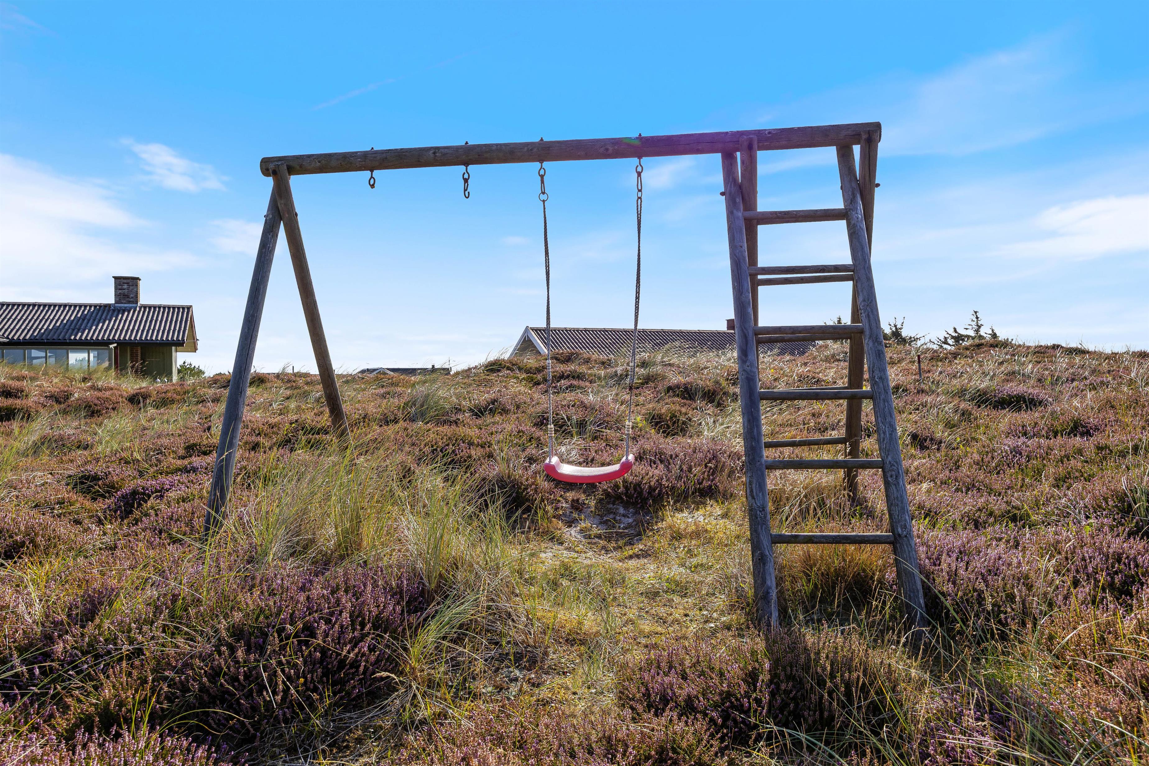 Dette traditionelle og hyggelige sommerhus ligger på en stor naturgrund i det vestjyske landskab og rummer en masse charme. Feriehuset er til 4 personer, så her kan du tage af sted med din lille familie eller med den tætte vennegruppe og få en hyggelig ferie på Vestkysten. Udenfor er der gynger, hvor børnene kan dampe af, og trænger de herefter til at få varmen, kan I tænde op i feriehusets brændeovn og nyde varmen fra de knitrende flammer.