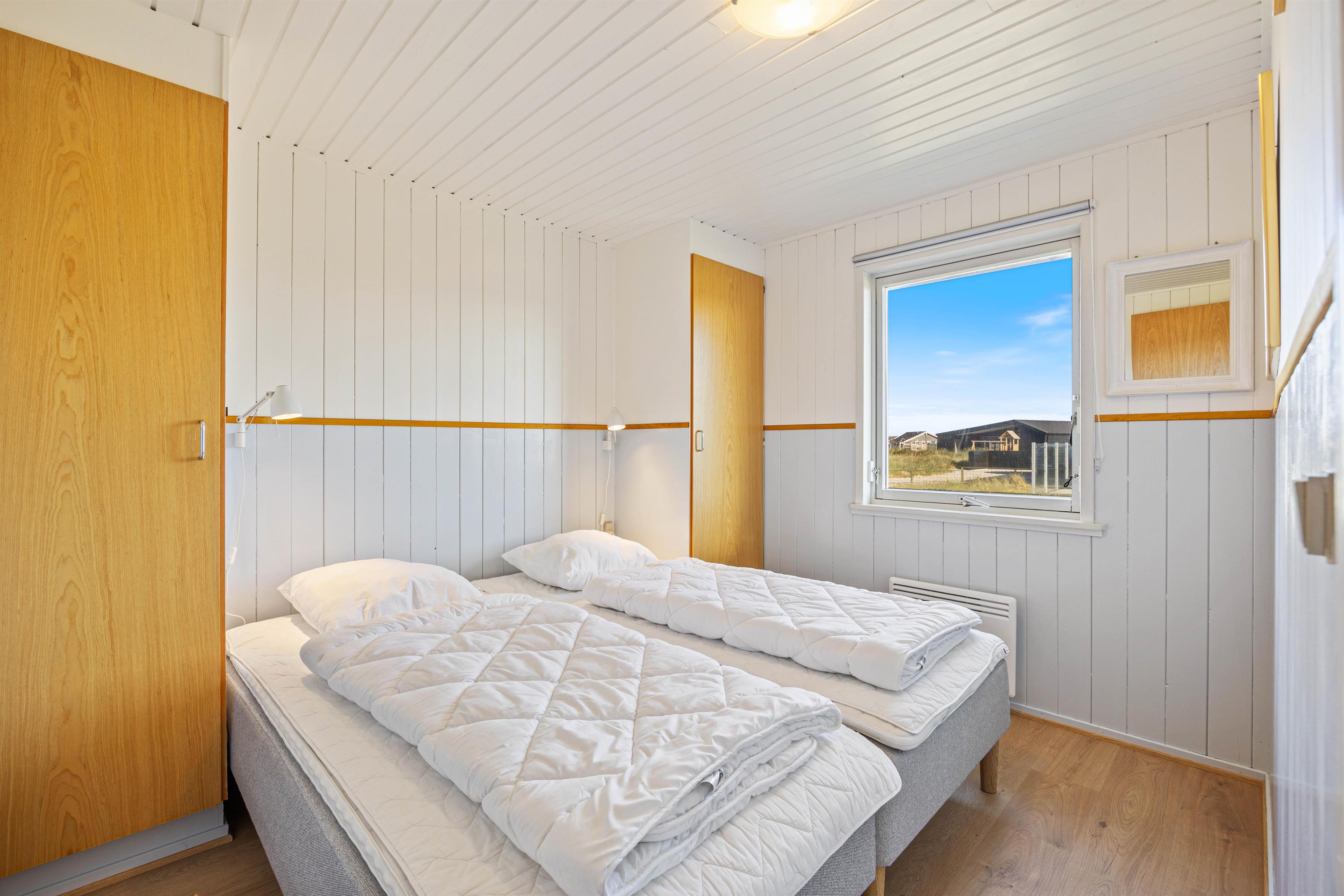 I stuen kan I slappe af i de behagelige møbler, imens I kan se en film fra feriehusets Apple TV og nyde de gnistrende flammer fra brændeovnen i baggrunden. Udover brændeovnen kan I også få varmen fra den energibesparende luft til luft varmepumpe. Efter en lang dag på Vestkysten kan I lægge jer i sengene og få en god nats søvn. I sommerhuset er der 4 sovepladser fordelt på 2 soverum.