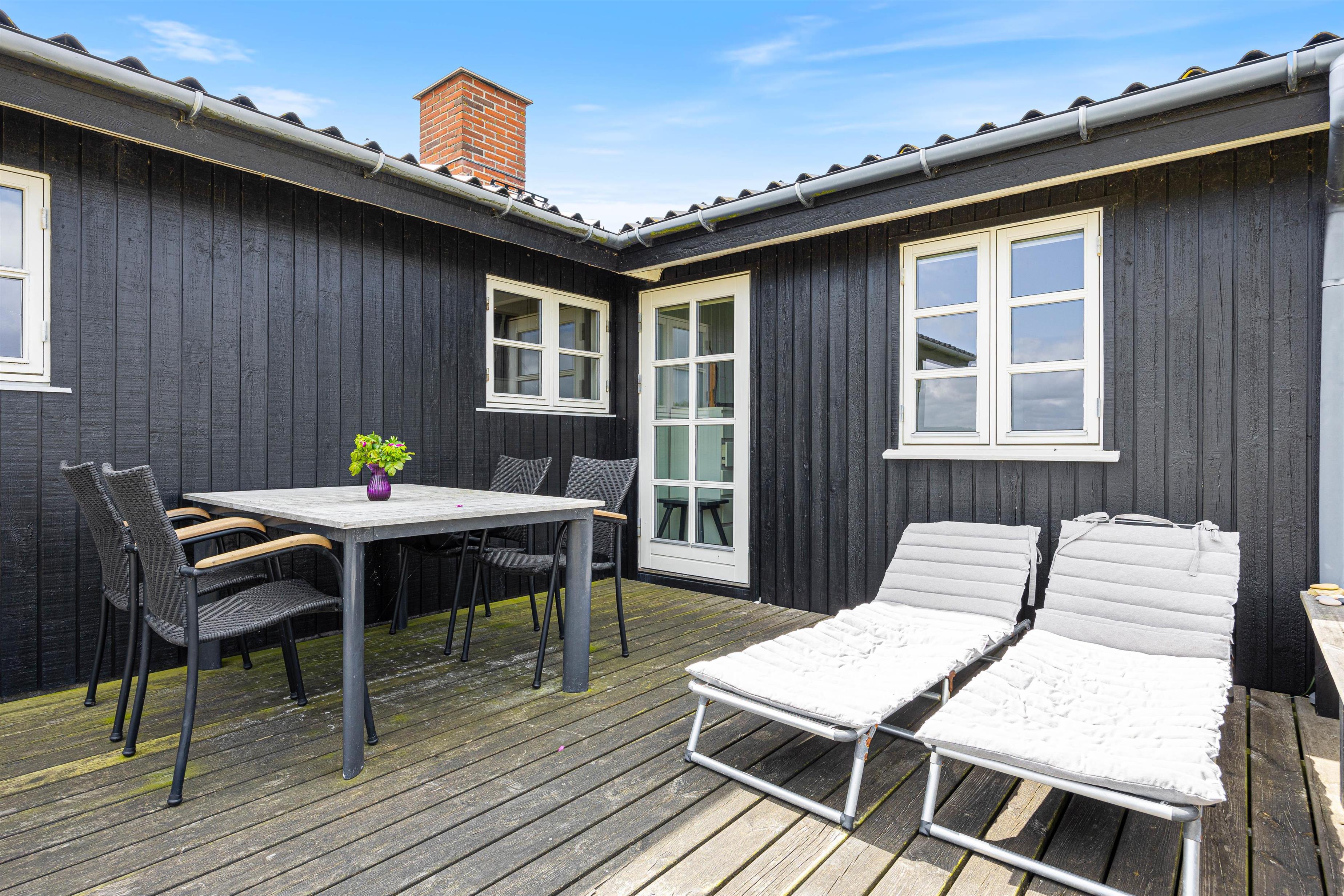 Feriehuset ligger på en smuk naturgrund og har flere hyggelige terrasser, hvoraf nogle er overdækkede eller afskærmede. Her finder I liggestole, havemøbler og selvfølgelig en grill. Uanset om I drikker kaffe om eftermiddagen eller spiser middag om aftenen, kan I tilbringe mange timer her og bare nyde den friske luft og udsigten til det store, fredede naturareal.