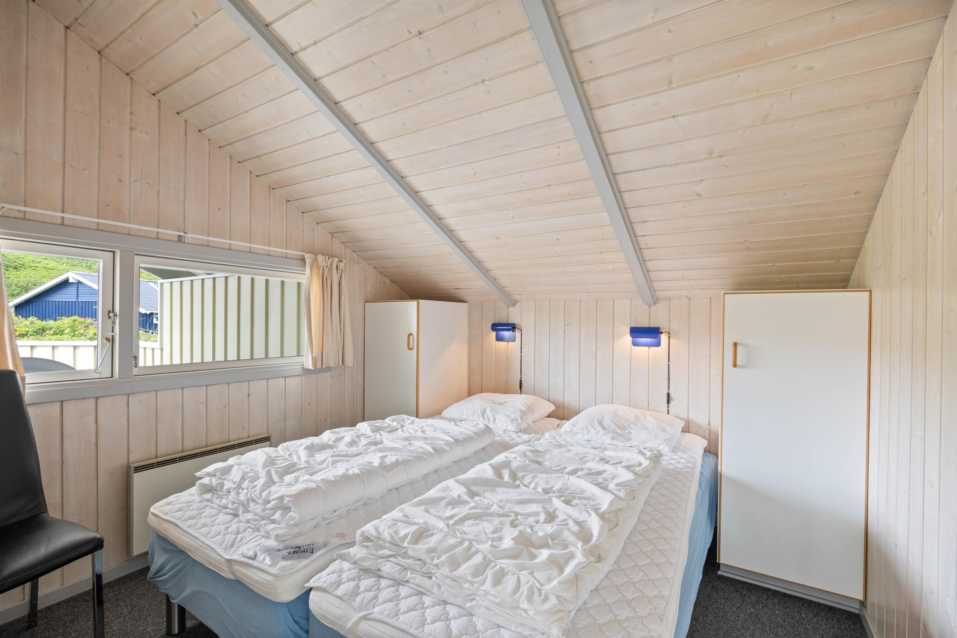 Sommerhuset byder på 4 soveværelser, som er placeret i hvert sit hjørne. 2 værelser er indrettet med dobbeltsenge, 160x200 cm, mens de 2 andre begge har 2 enkeltsenge, 80x200 cm. Her kan I få skønhedssøvnen, så I er klar til feriens spændende aktiviteter og udflugter. Alle værelser er med gulvtæppe.