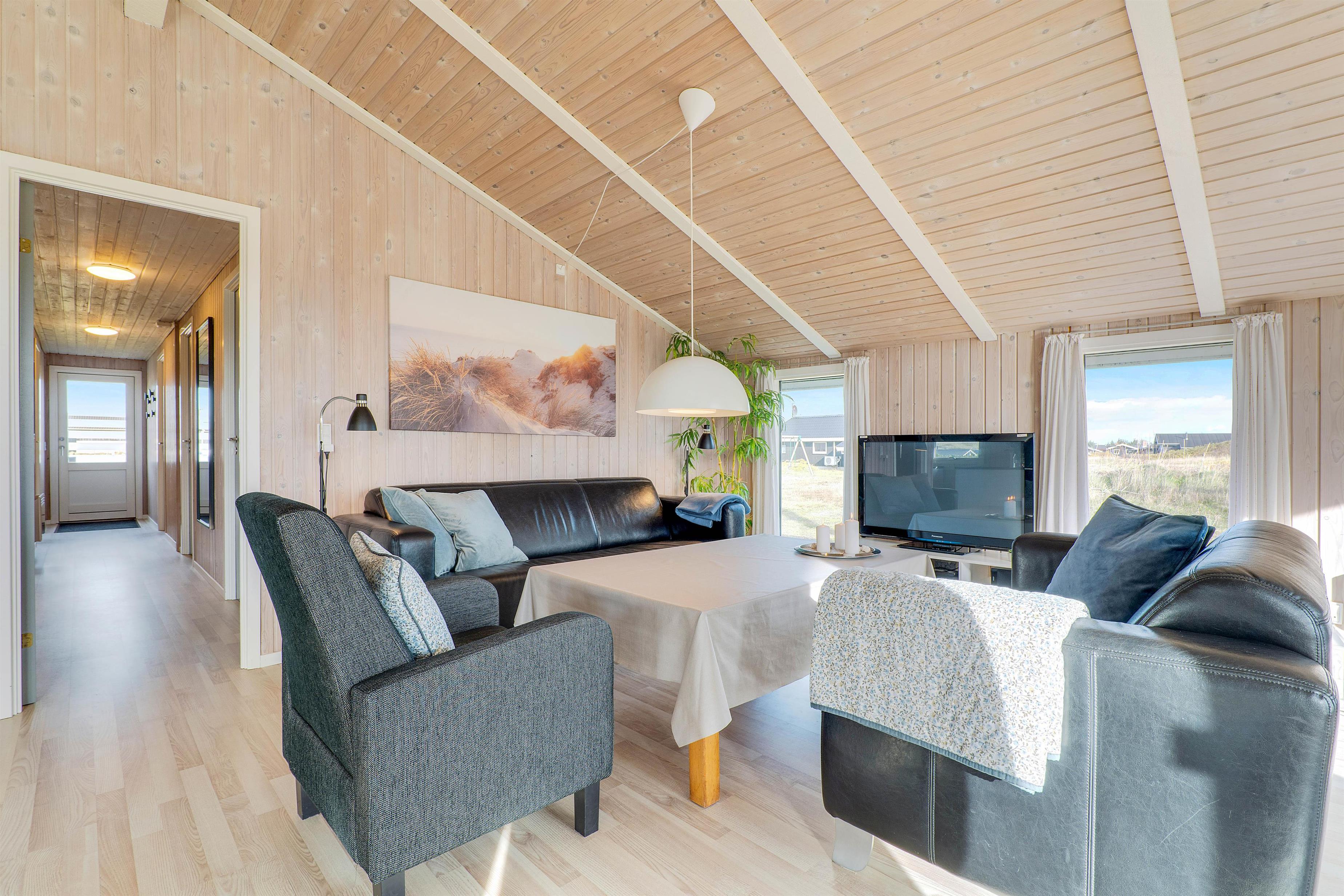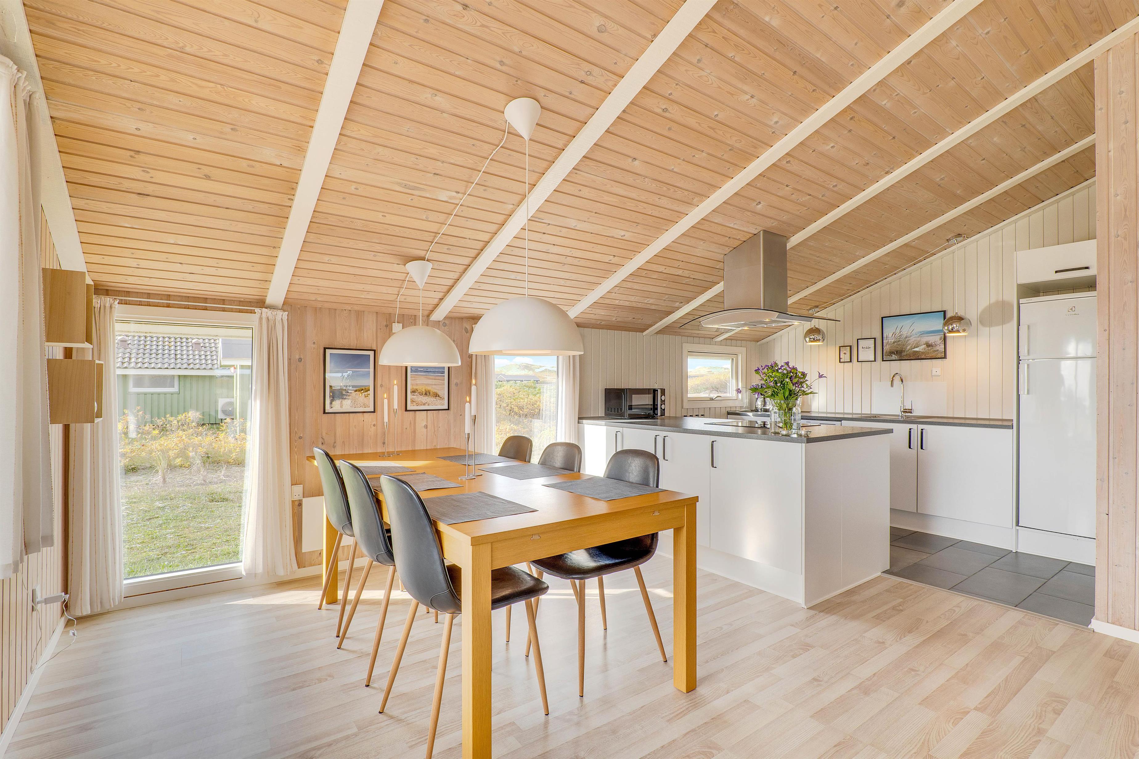 Her er der plads til 6 feriegæster samt 1 hund, som kan nyde en afslappende ferie i skønne omgivelser. Feriehuset er renoveret i 2021, hvor der bl.a. er lavet helt nyt køkken. Fra sommerhuset er der blot 500 meter til Vesterhavet og den hvide sandstrand.