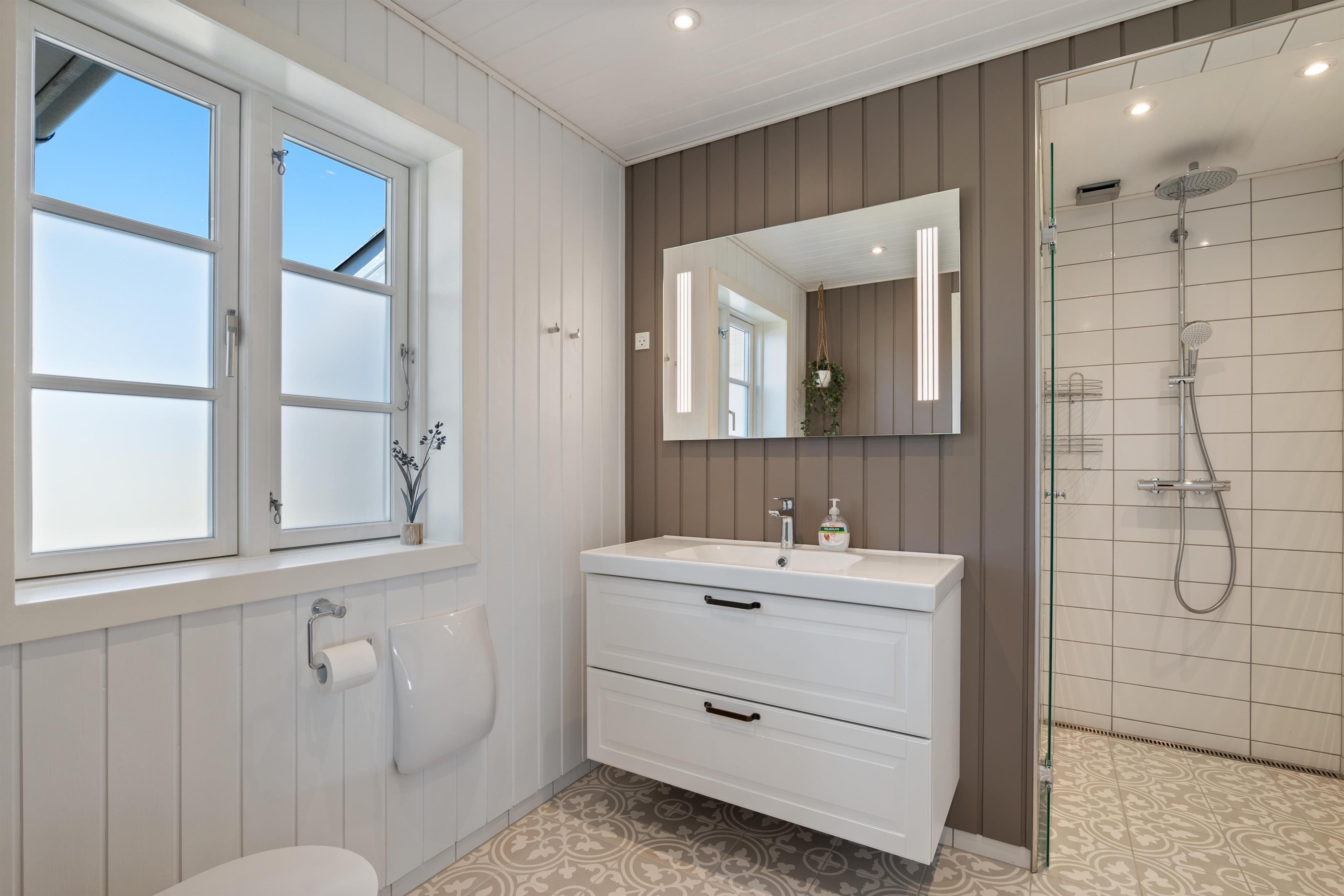 Desuden er der 2 badeværelser, hvoraf det ene befinder sig i det tilhørende anneks. Der er gulvvarme på begge badeværelser. Her er også en vaskemaskine samt en tørretumbler, så der er mulighed for tøjvask i løbet af ferien.