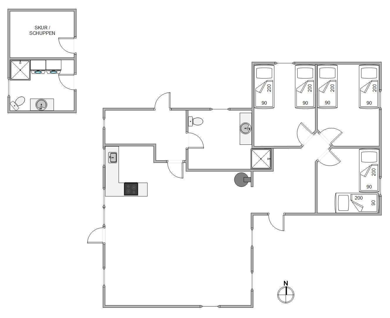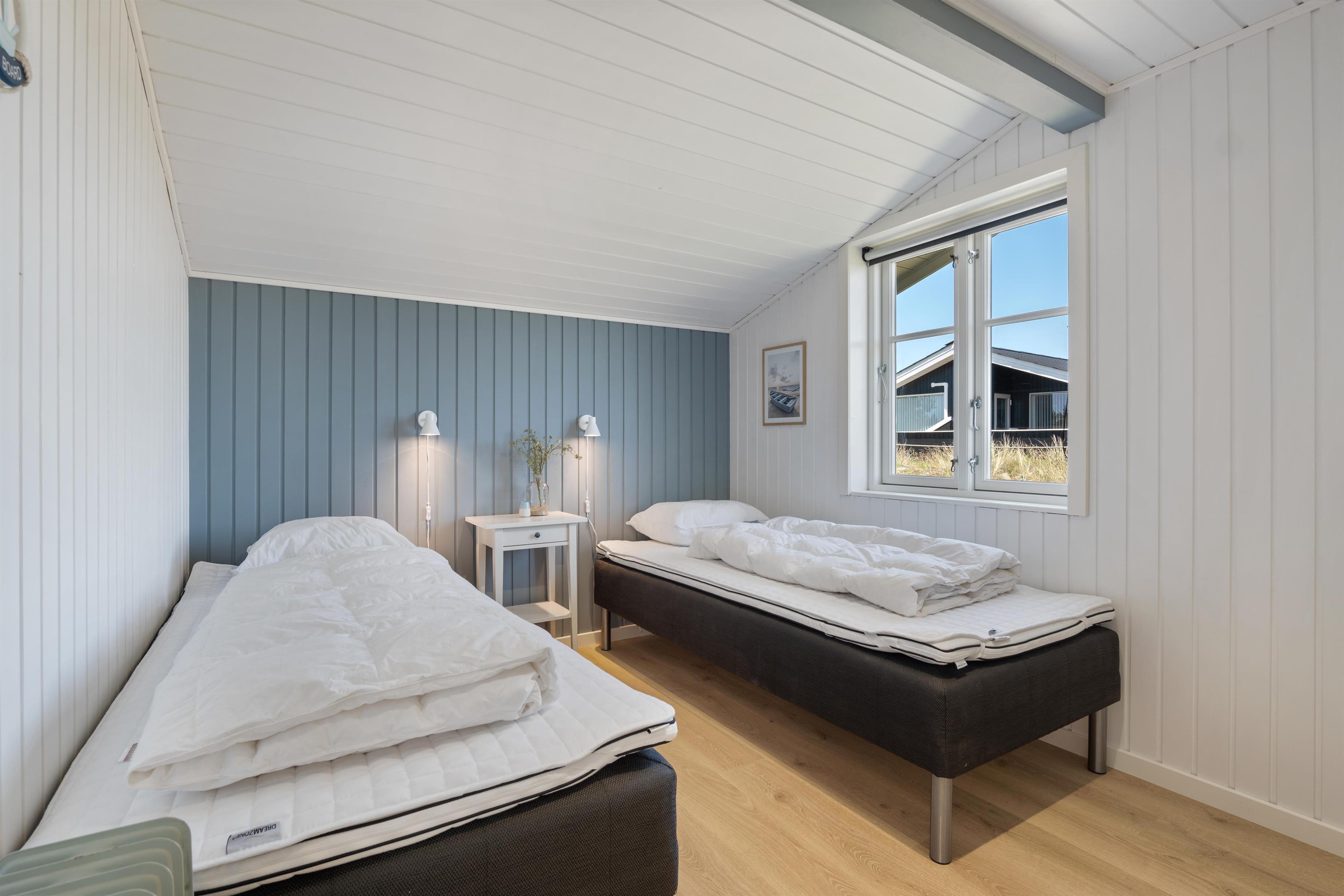 Sommerhuset byder plads til 6 feriegæster, som til aften kan fordele sig på de 3 gode soveværelser - alle indrettet med enkeltsenge.
