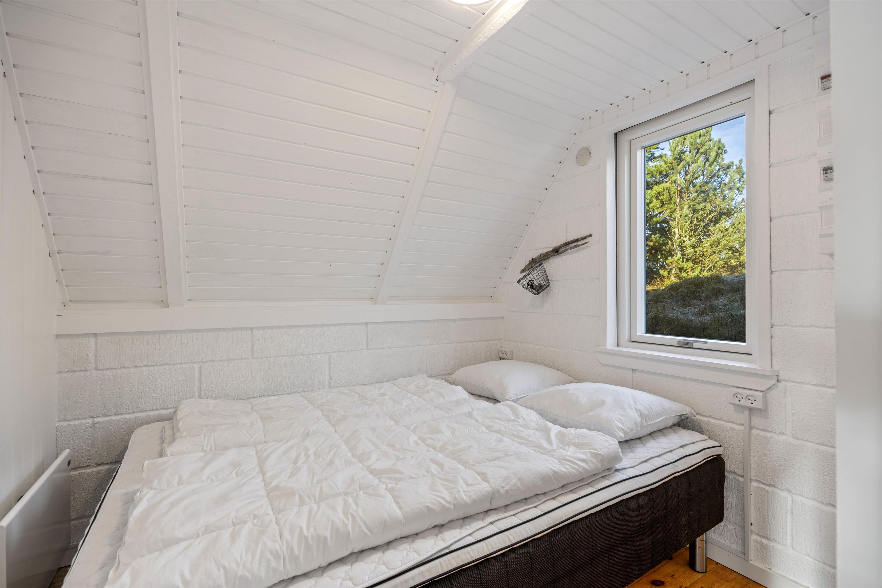 Til de afslappende nattetimer står der 2 soveværelser med dobbeltsenge klar til jer. Her kan I samle energi til næste dag. Highlightet i sommerhuset er den store hems, som nok skal være populær blandt de yngste gæster. Hemsen ligger over værelserne, badeværelset og køkkenet. Opgangen hertil ligger ved alrummet, så børnene kan lege deroppe, mens I læser en bog og nyder en kop kaffe stuen. Hemsen har en god 140cm seng.