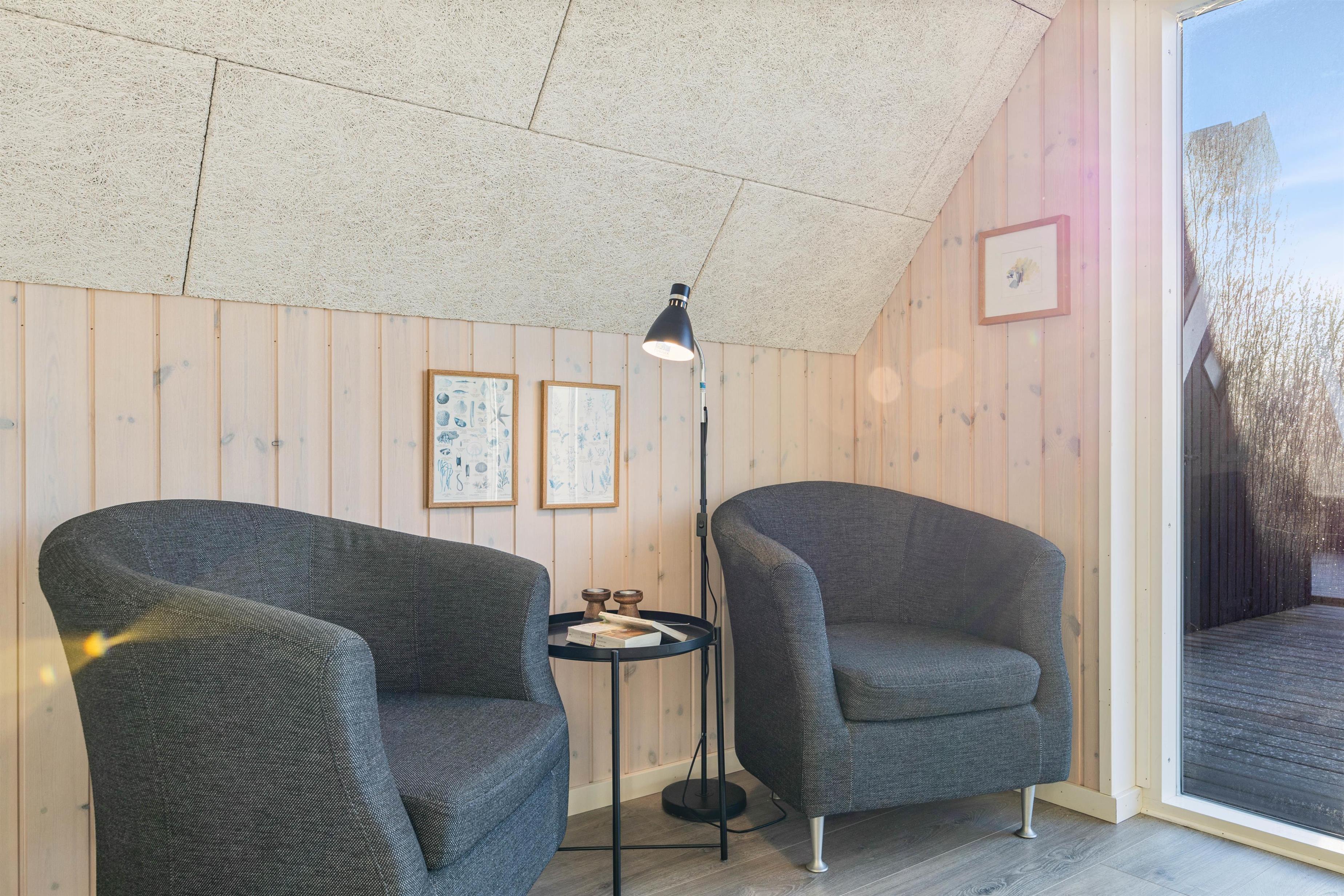 I stuen er der lagt op til mange hyggelige timer, hvor I sammen kan se en film eller spille kort. Hele alrummet har et skønt trægulv, og brændeovnen sørger for dejlig varme og ekstra hygge. Derudover kan I varme jer med den energibesparende varmepumpe, som er installeret i sommerhuset.
