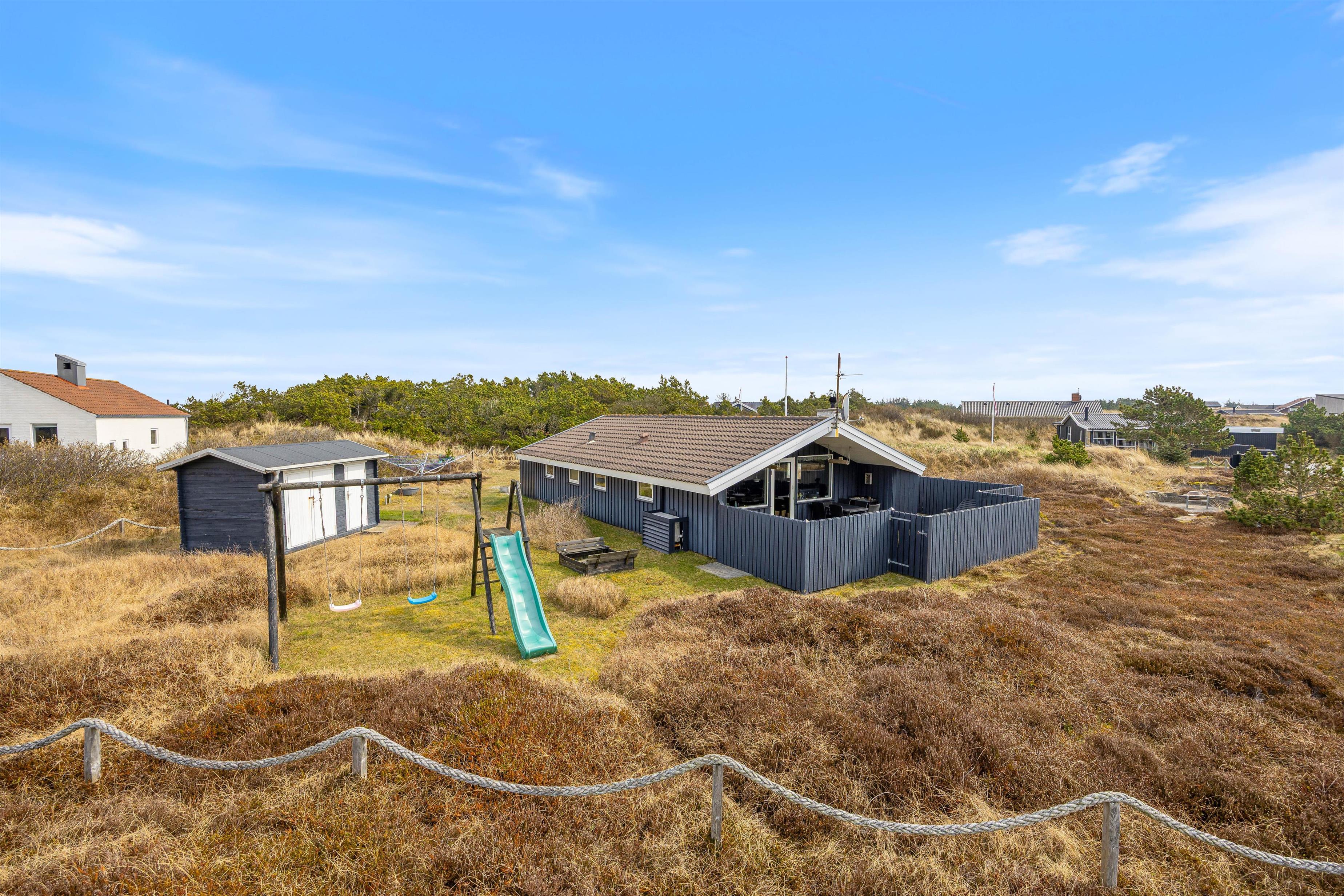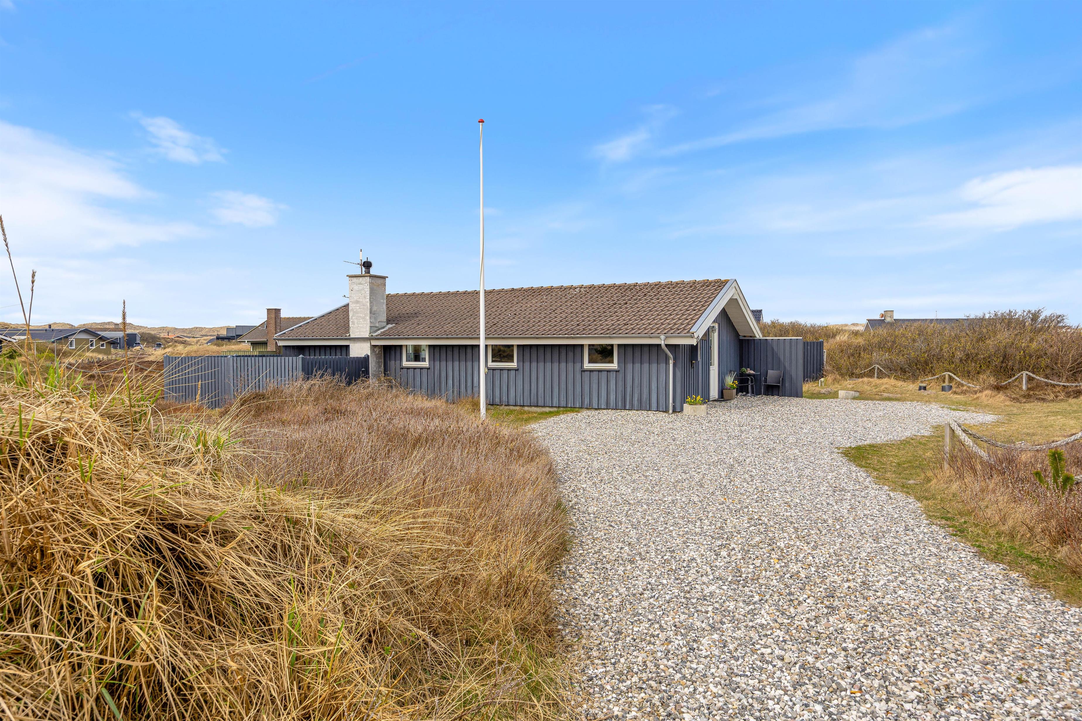 Stranden ligger kun 500 meter væk, så det er nemt at tage en spontan tur til havet, bygge sandslotte eller tage en forfriskende dukkert i Vesterhavet. Indkøbsmuligheder findes cirka 900 meter fra huset, hvilket gør det nemt at handle til både hverdag og festmåltider.