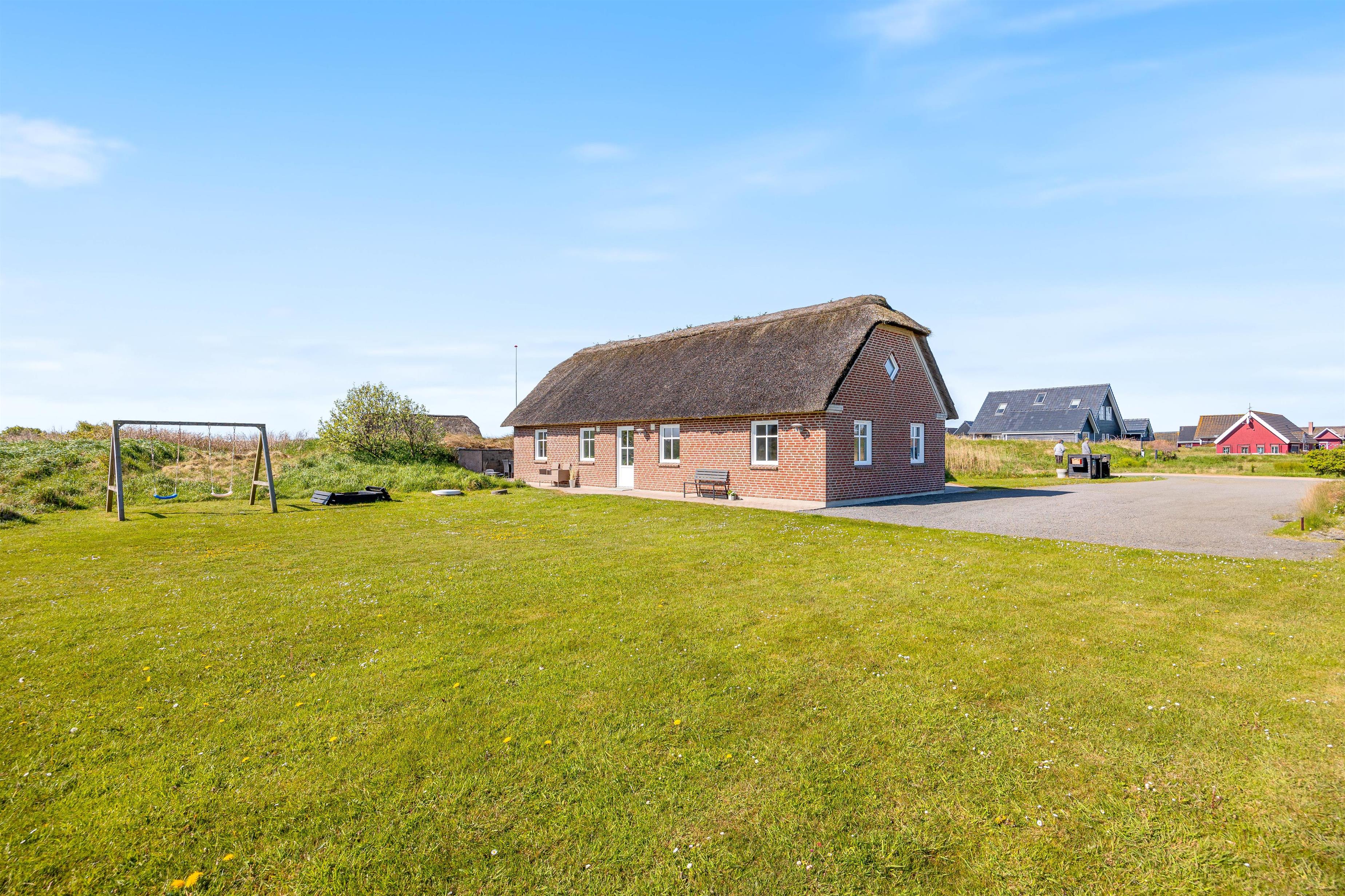 Feriehuset er omringet af en dejlig terrasse, hvor solen kan følges hele dagen. Til børnene er der opstillet gynger og en sandkasse, så de kan lege, mens mor og far nyder ferien i solen.