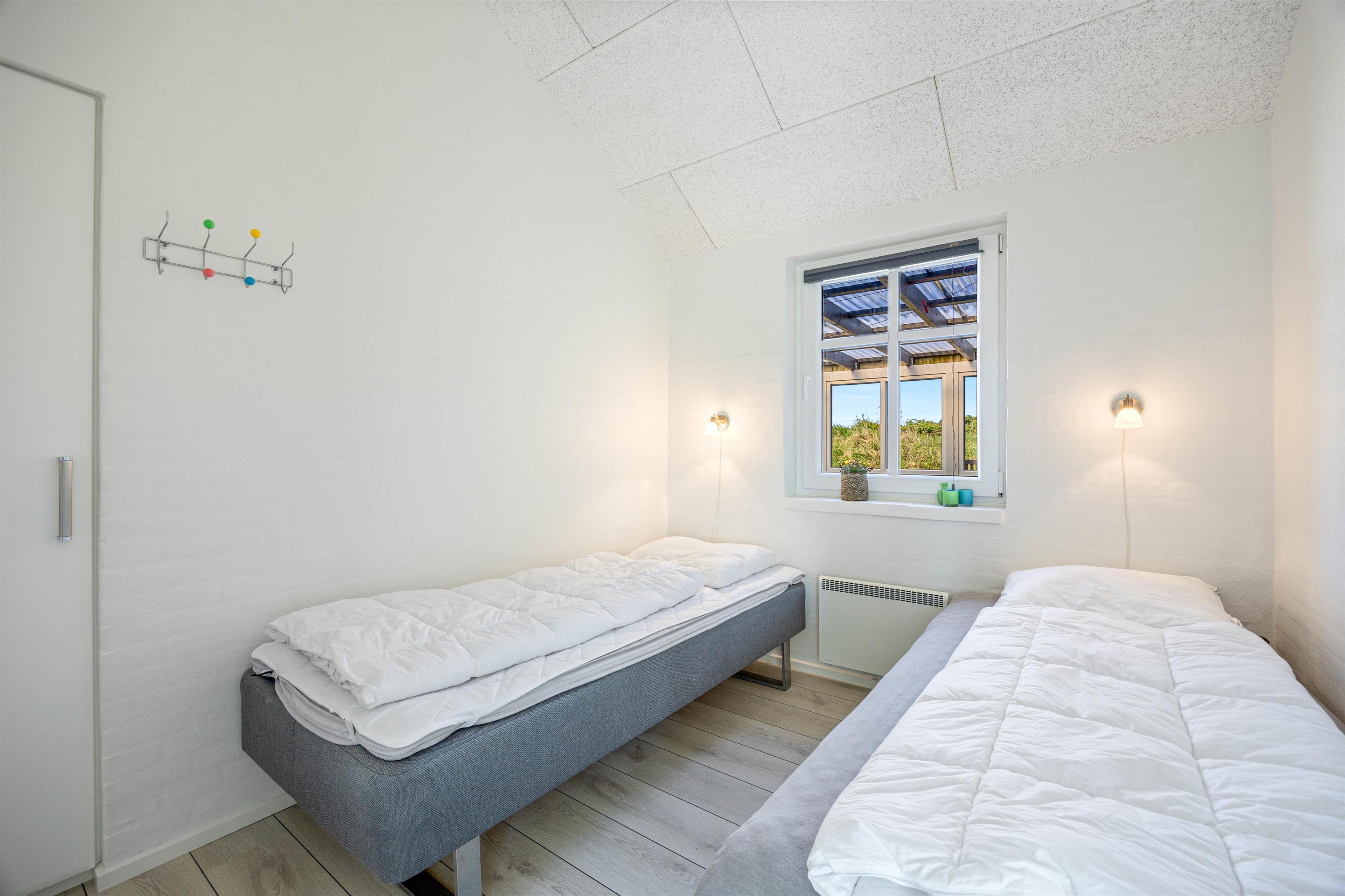 Sommerhusets 8 sovepladser fordeler sig på 4 gode værelser, hvoraf det ene er indrettet med 2 enkeltsenge. På de resterende værelser finder I dobbeltsenge til den gode nats søvn.