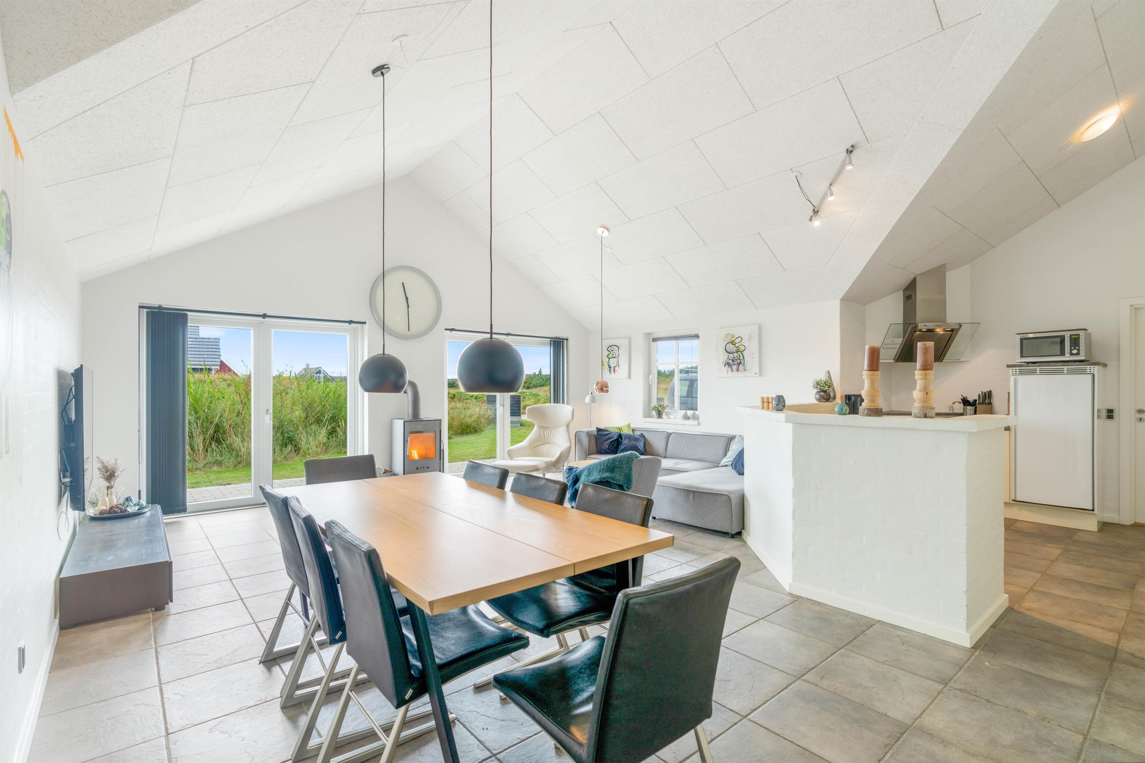 Dette fantastiske feriehus på Risbusken 1 er smagfuldt indrettet med flotte og moderne møbler og har 2 køleskabe. Sommerhuset er omgivet af en stor afskærmet terrasse, hvor hele familien, i skønne omgivelser, kan nyde det rolige område, hvor feriehuset er beliggende.