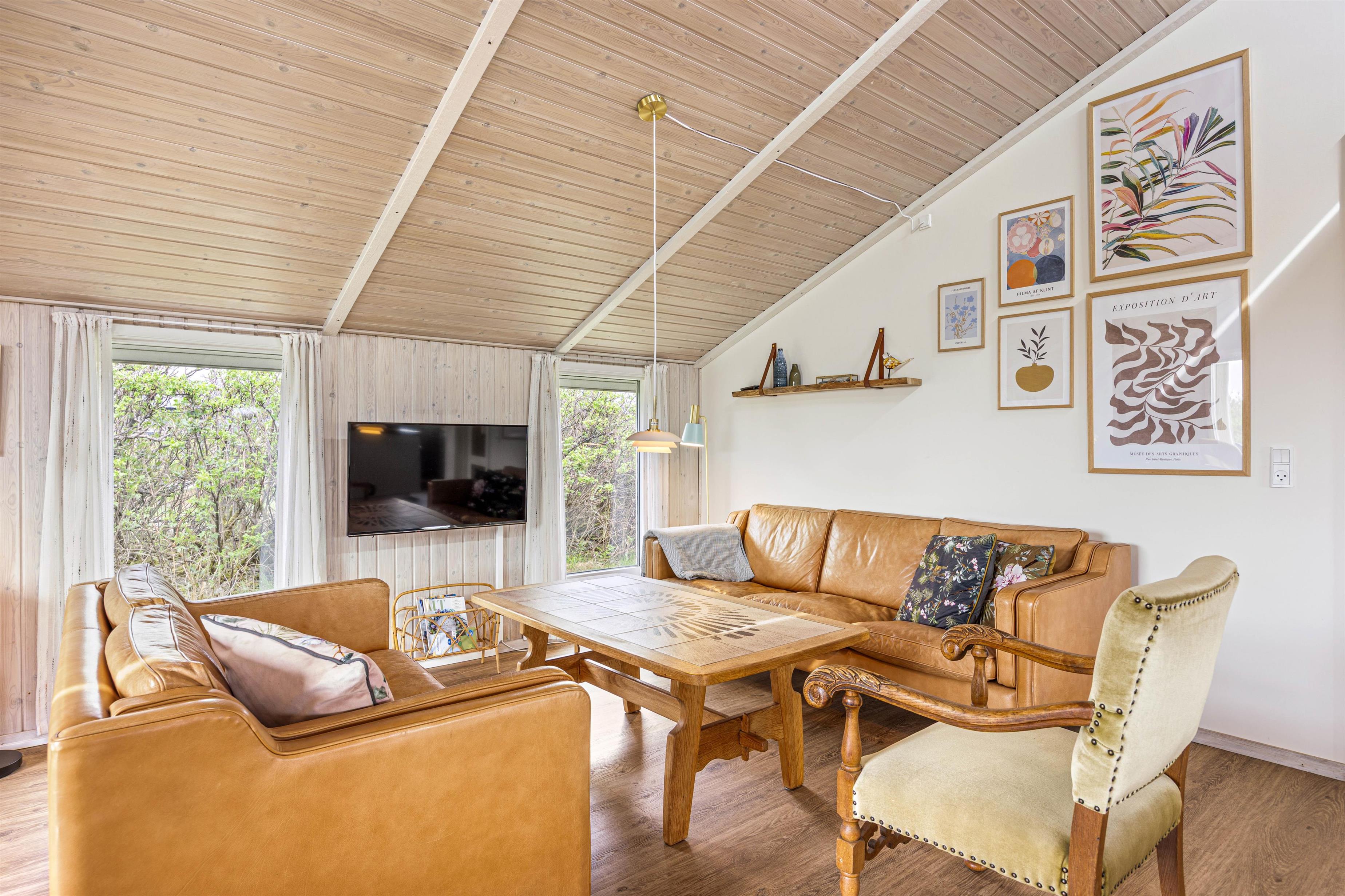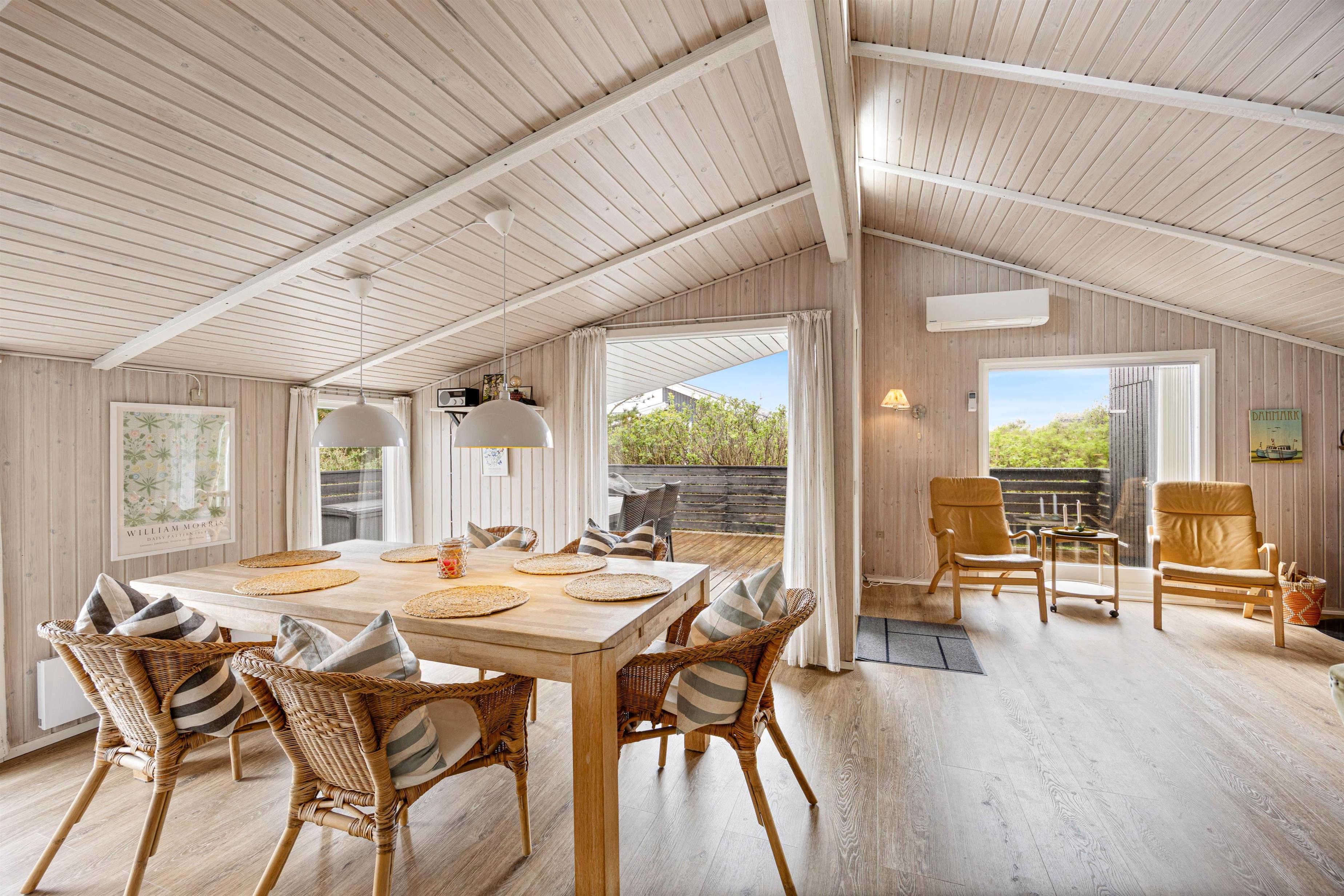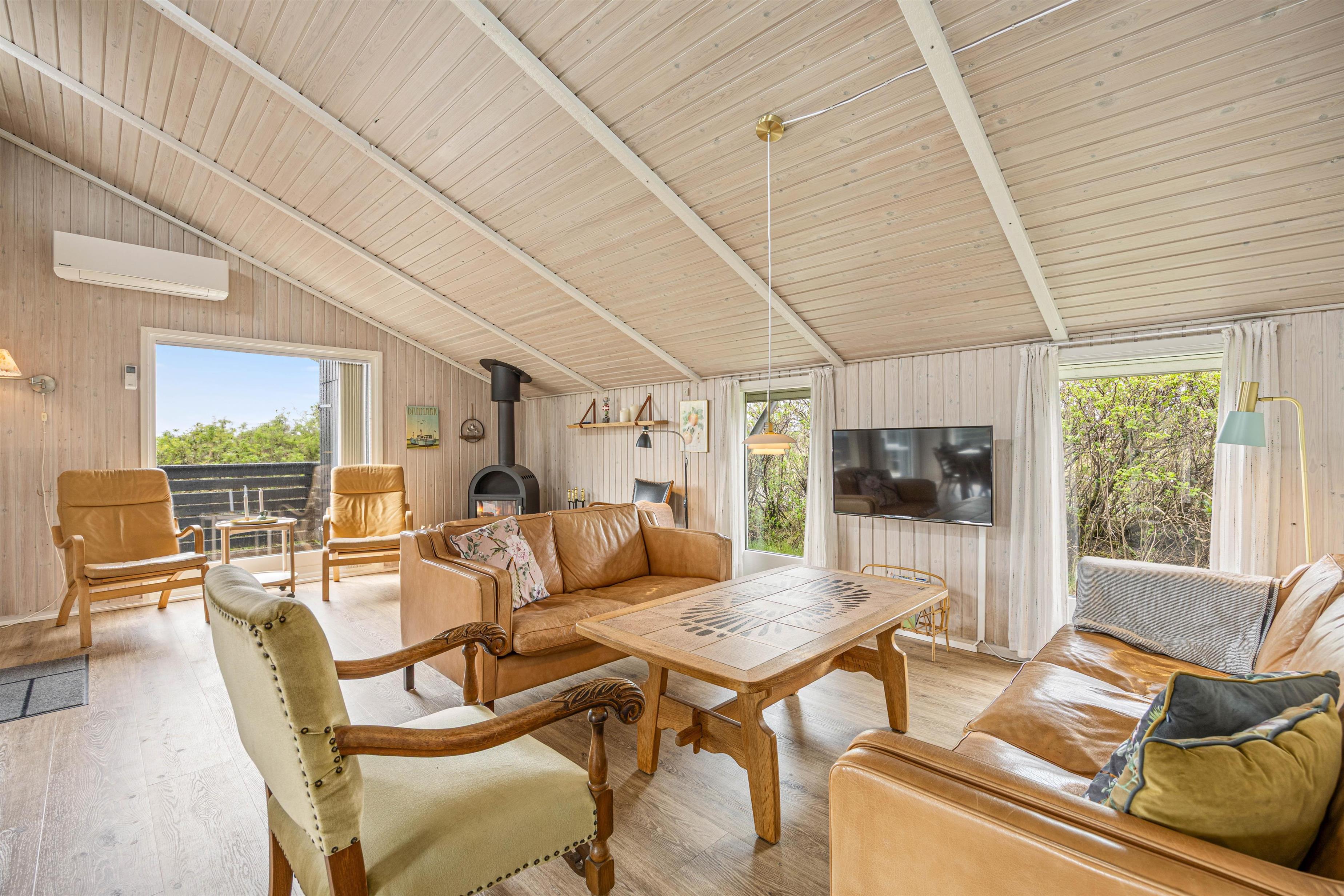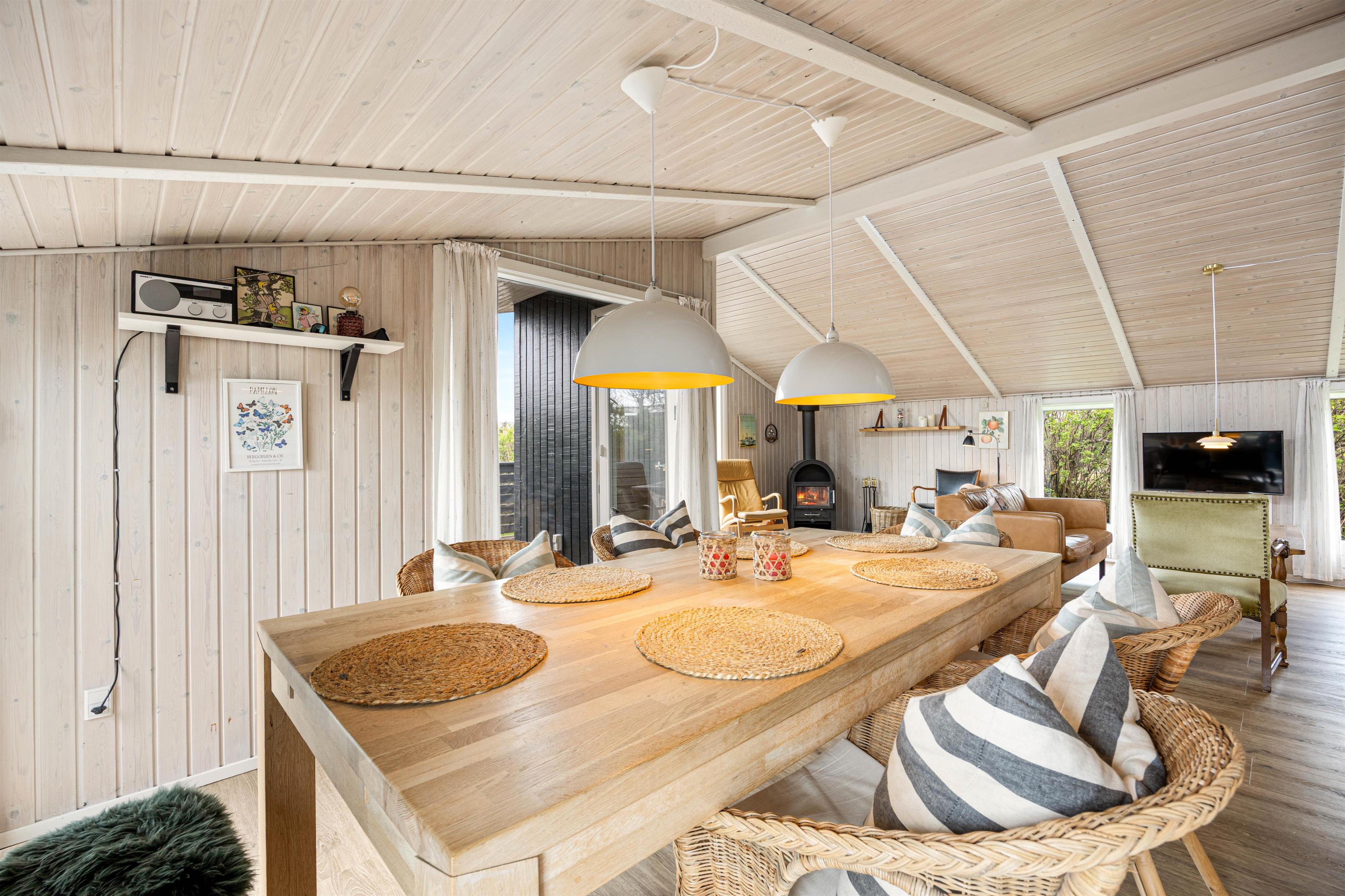 I dette lyse og indbydende sommerhus vil du straks føle dig hjemme, når du træder ind. Med en knitrende ild i brændeovnen kan I sammen arrangere en tv-aften. Et fladskærms-tv med Chromecast er tilgængeligt til dette formål. Eller hvad med en spilleaften med hele familien? Intet problem med plads ved det rummelige spisebord.