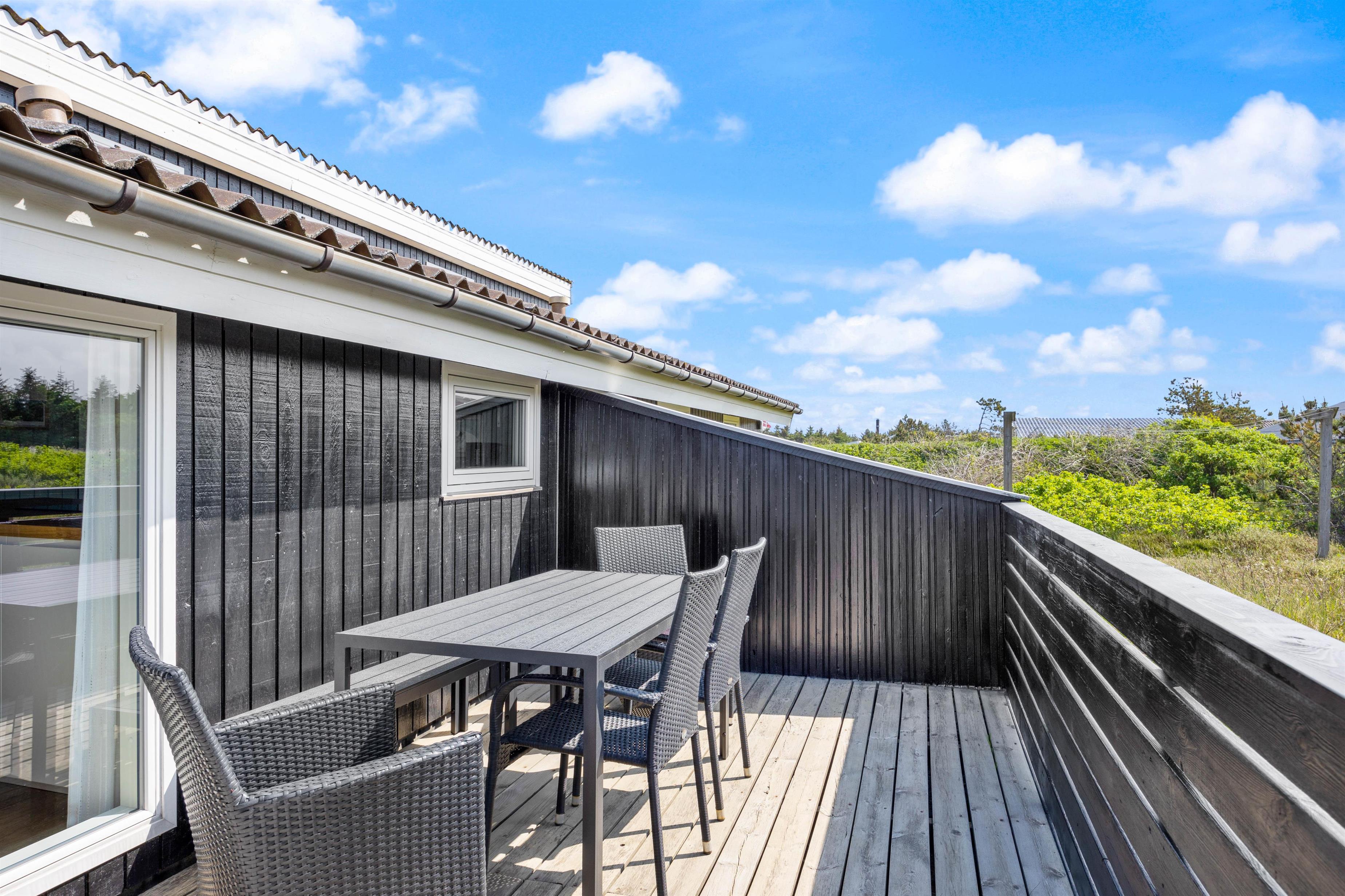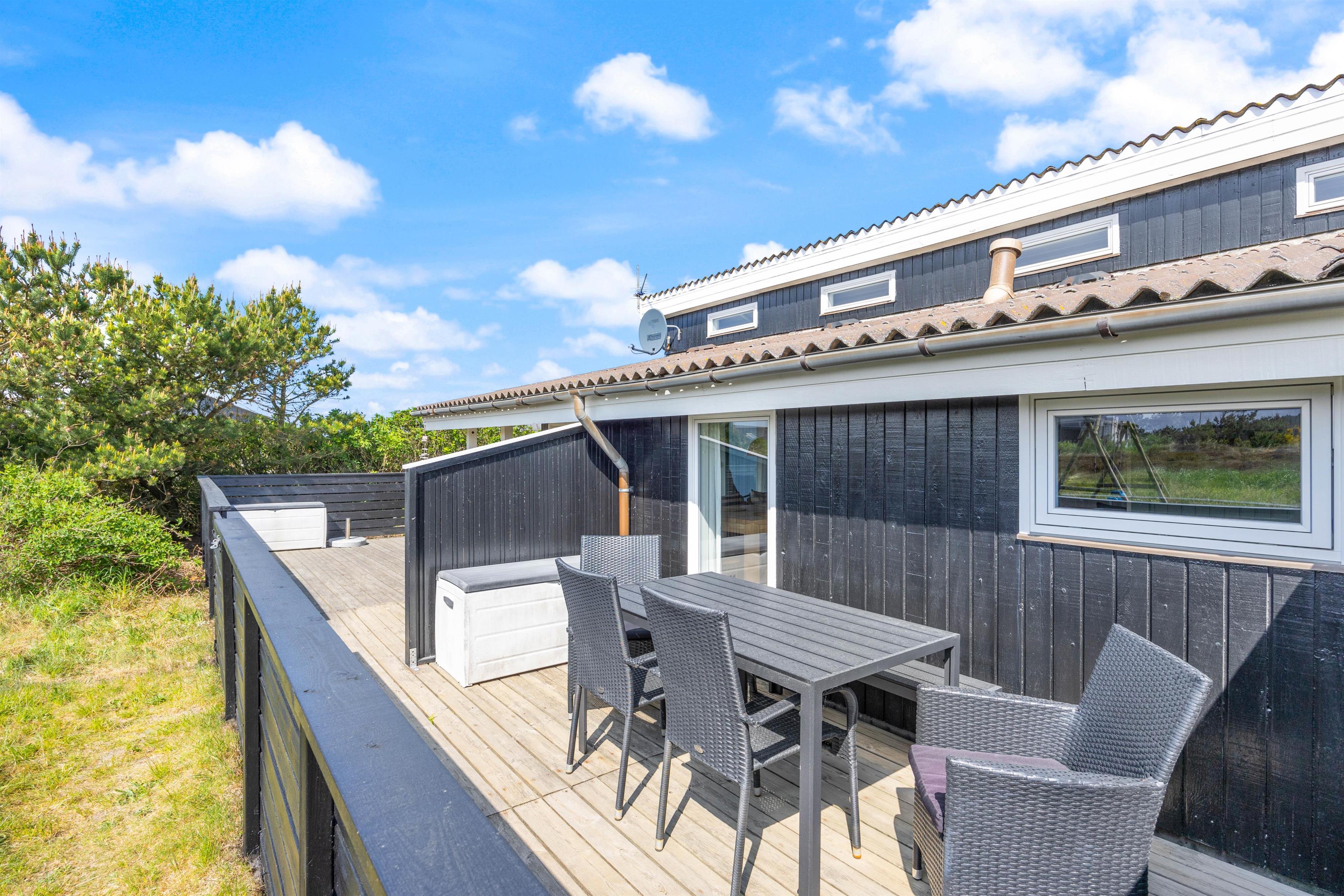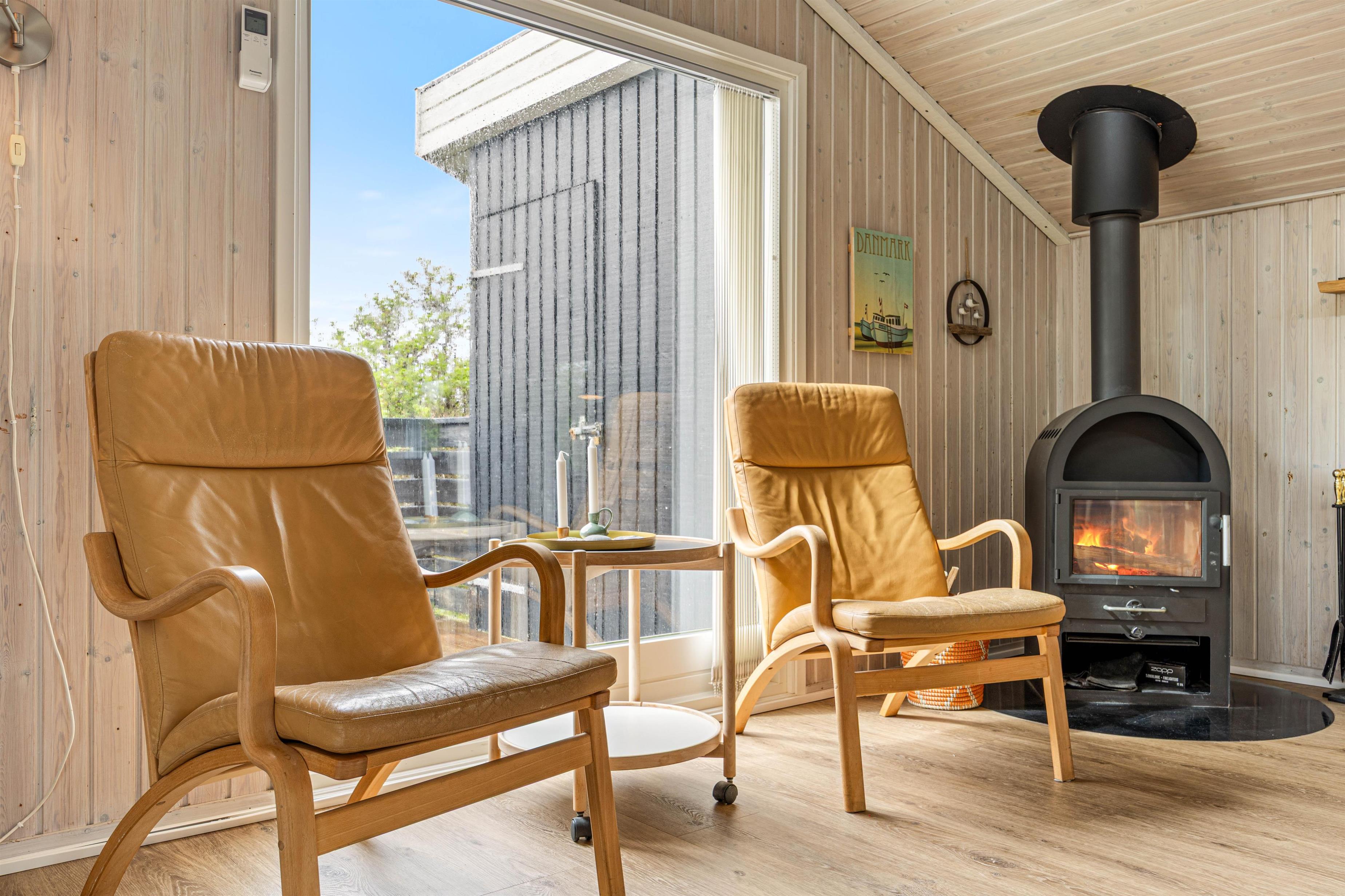 Der er både sauna og brændeovn i det hyggelige sommerhus. Med feriehusets lukkede terrasse kan du trygt lade dine små børn eller hund løbe frit uden fare for, at de bliver væk.
