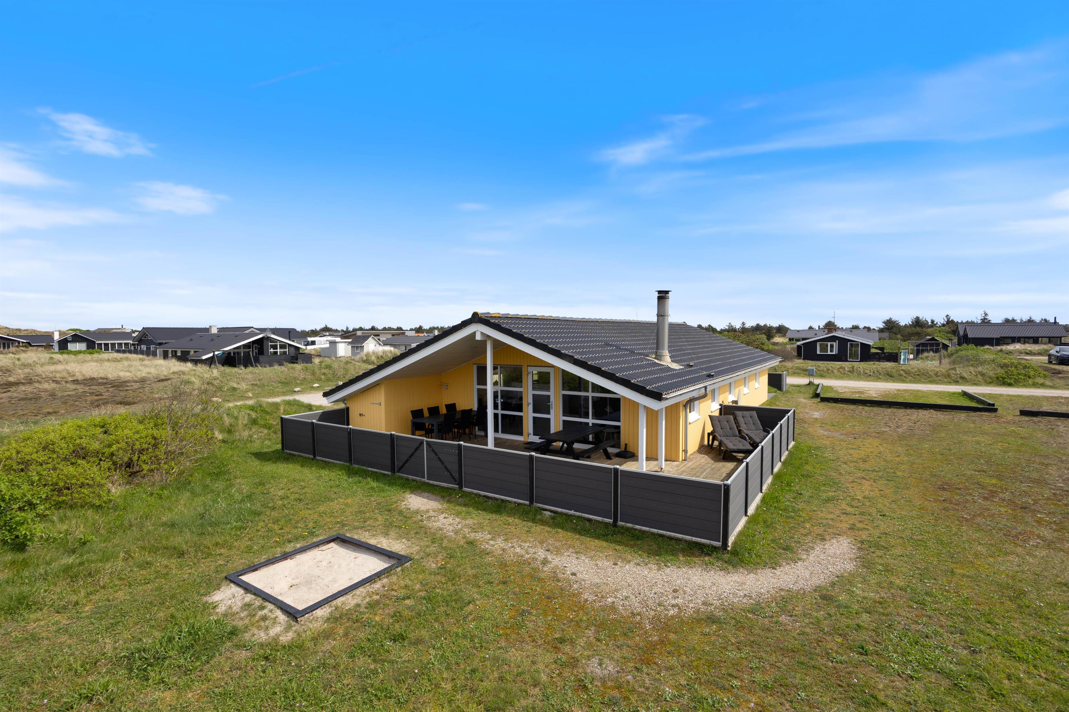 Feriehuset er rummeligt og hyggeligt indrettet, og det ligger i et roligt område, hvor I uforstyrret kan nyde en afslappende ferie, hvortil den store lukkede terrasse og den lune sauna også er helt perfekte. Der er ikke langt til Vesterhavet, så I kan nemt komme ned og nyde solen og stranden.