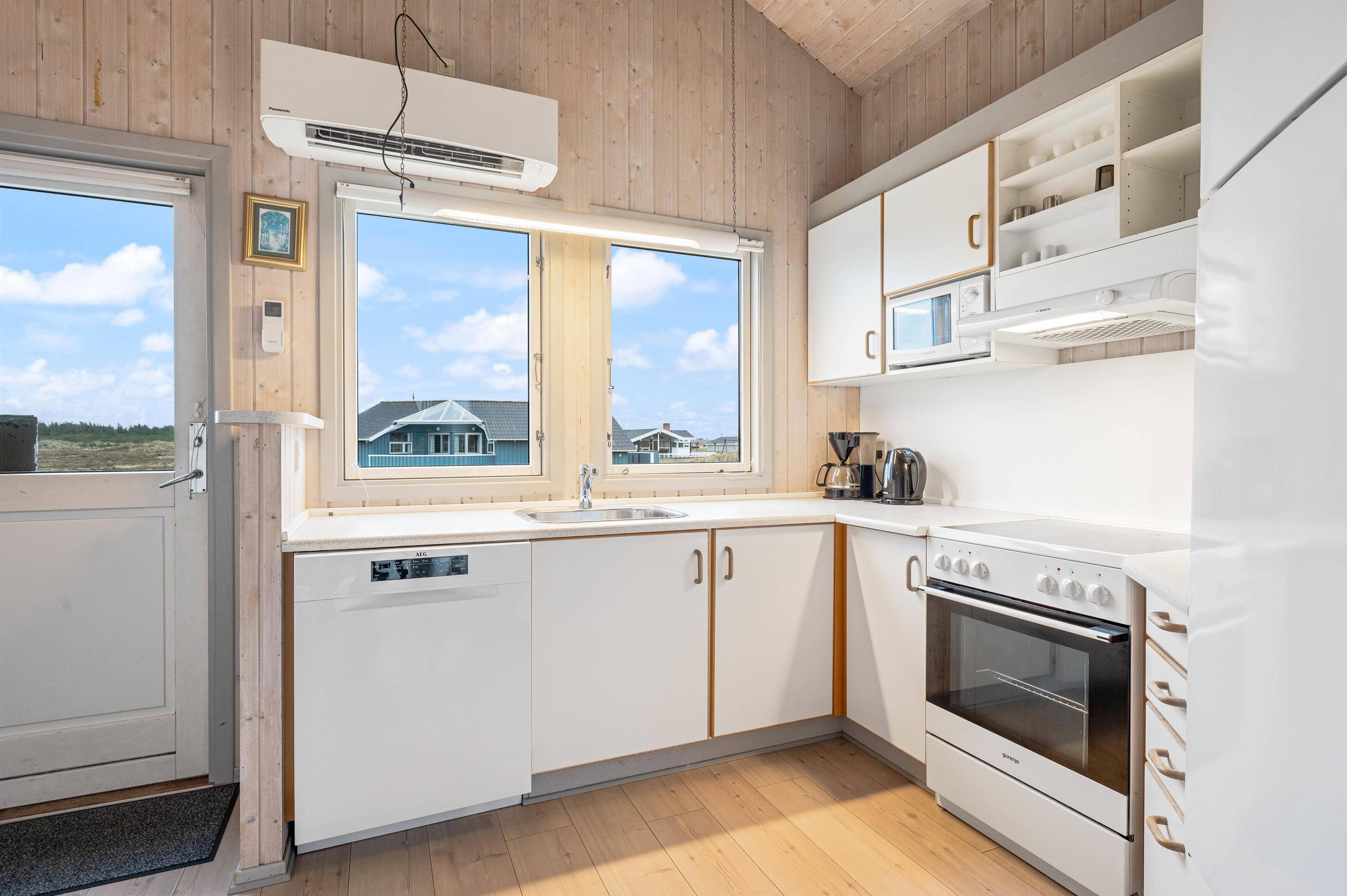 Sommerhuset tilbyder også trådløst internet, og en energibesparende varmepumpe hjælper til med opvarmningen.