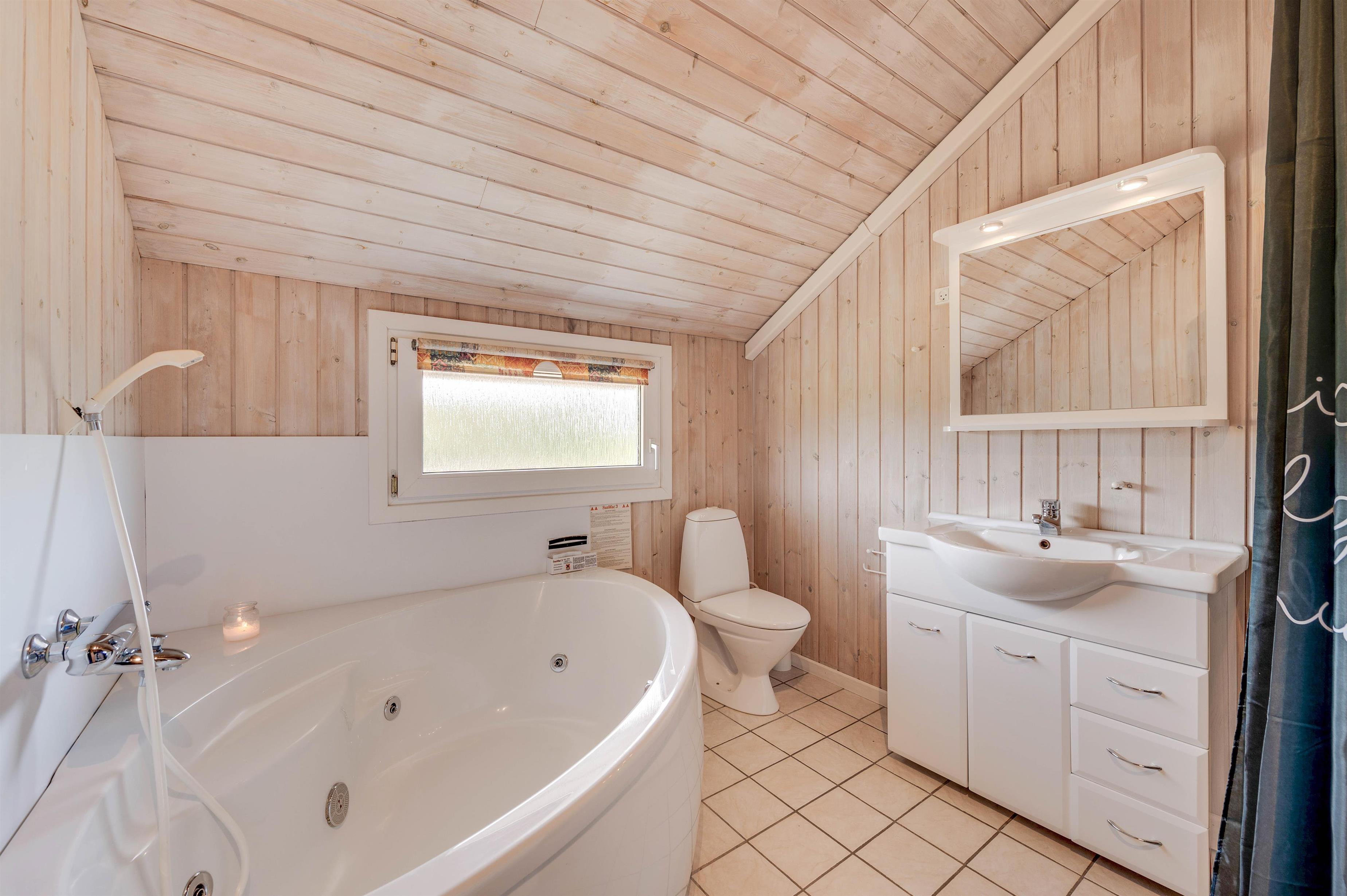 Sommerhusets 8 feriegæster kan fordele sig på de 4 soveværelser, som er indrettet med komfortable senge. Der er 2 dobbeltsenge, 2 enkeltsenge og et værelse med køjeseng – et hit blandt børnene. Feriehuset har desuden 2 badeværelser – begge med gulvvarme -, så der ikke opstår kø om morgenen. På det ene badeværelse er der sauna og spabad, som er rigtig afslappende efter en lang gåtur ved vandet.