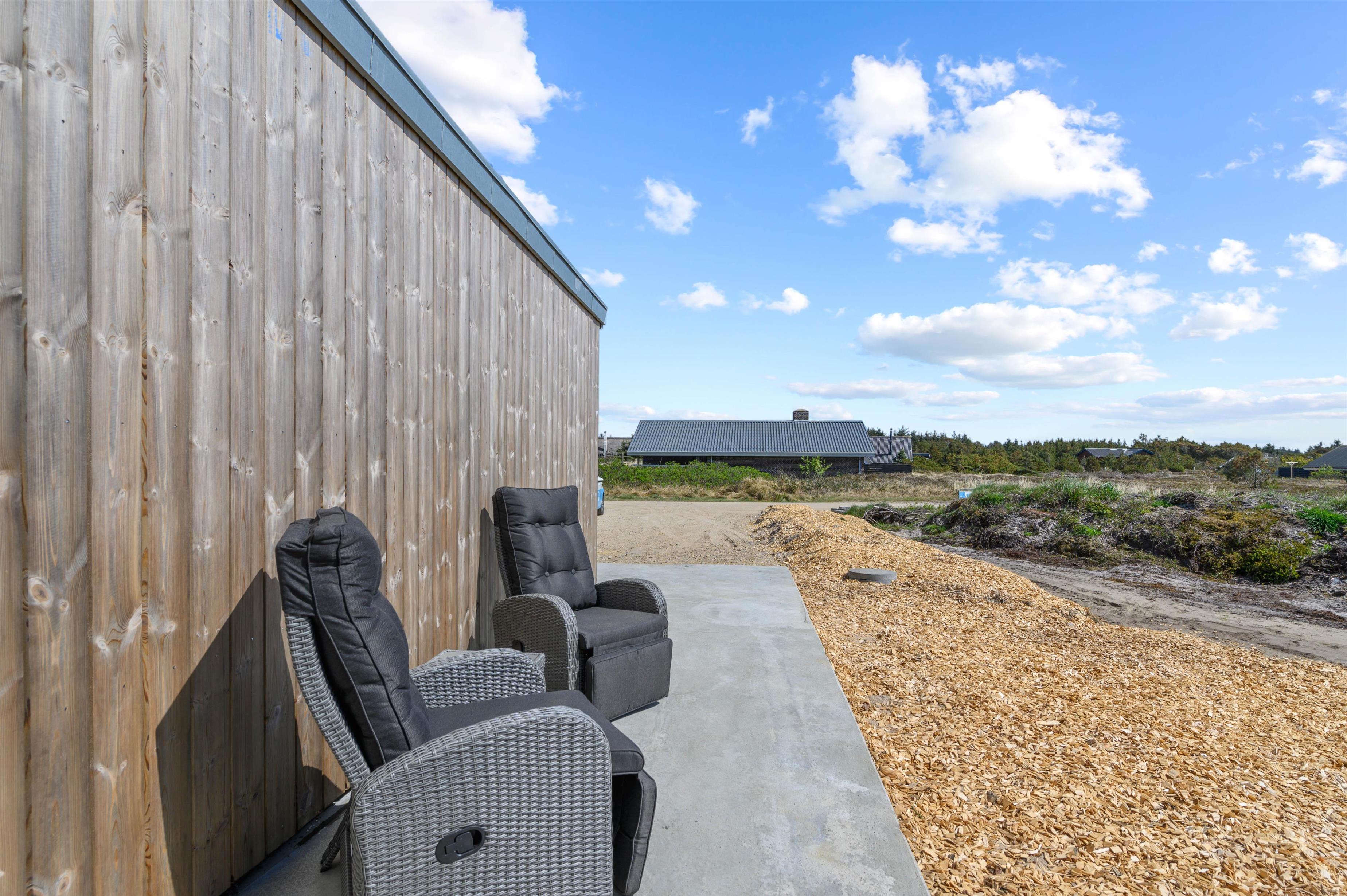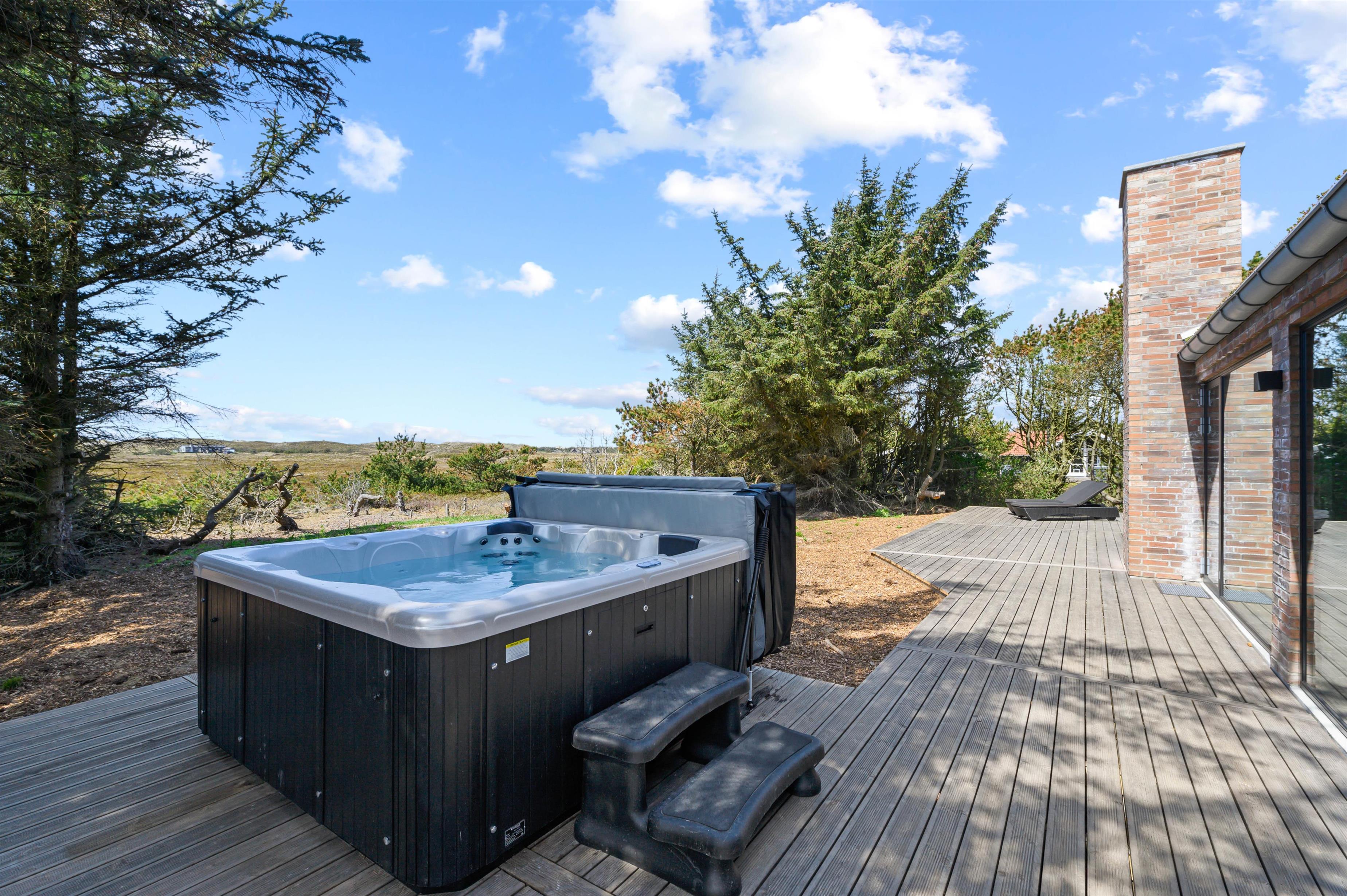De lune sommerdage kan I nyde på den delvist afskærmede og overdækkede terrasse. Her er der lagt op til masser af afslapning og velvære efter en lang gåtur på stranden. Skyl sandet af fødderne under den udendørs bruser om sommeren og hop i det varme, boblende vand i udespaen. Udebruseren kan benyttes fra april til november.