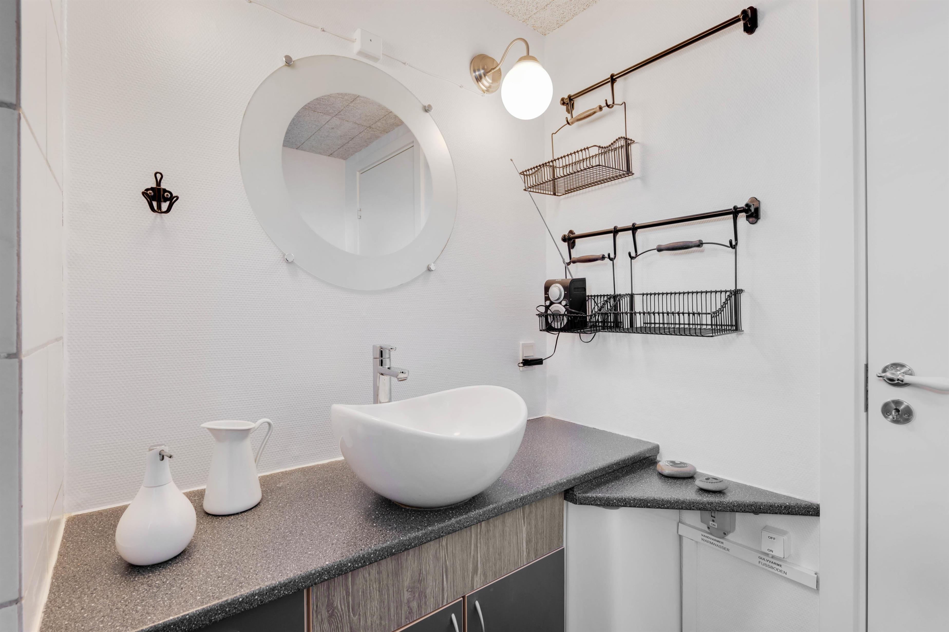 Køkkenet er veludstyret med opvaskemaskine og fryser og er forbundet med spiseafdeling og stue. Her er en dejlig og hyggelig indretning, som gør, at du straks føler dig godt tilpas.