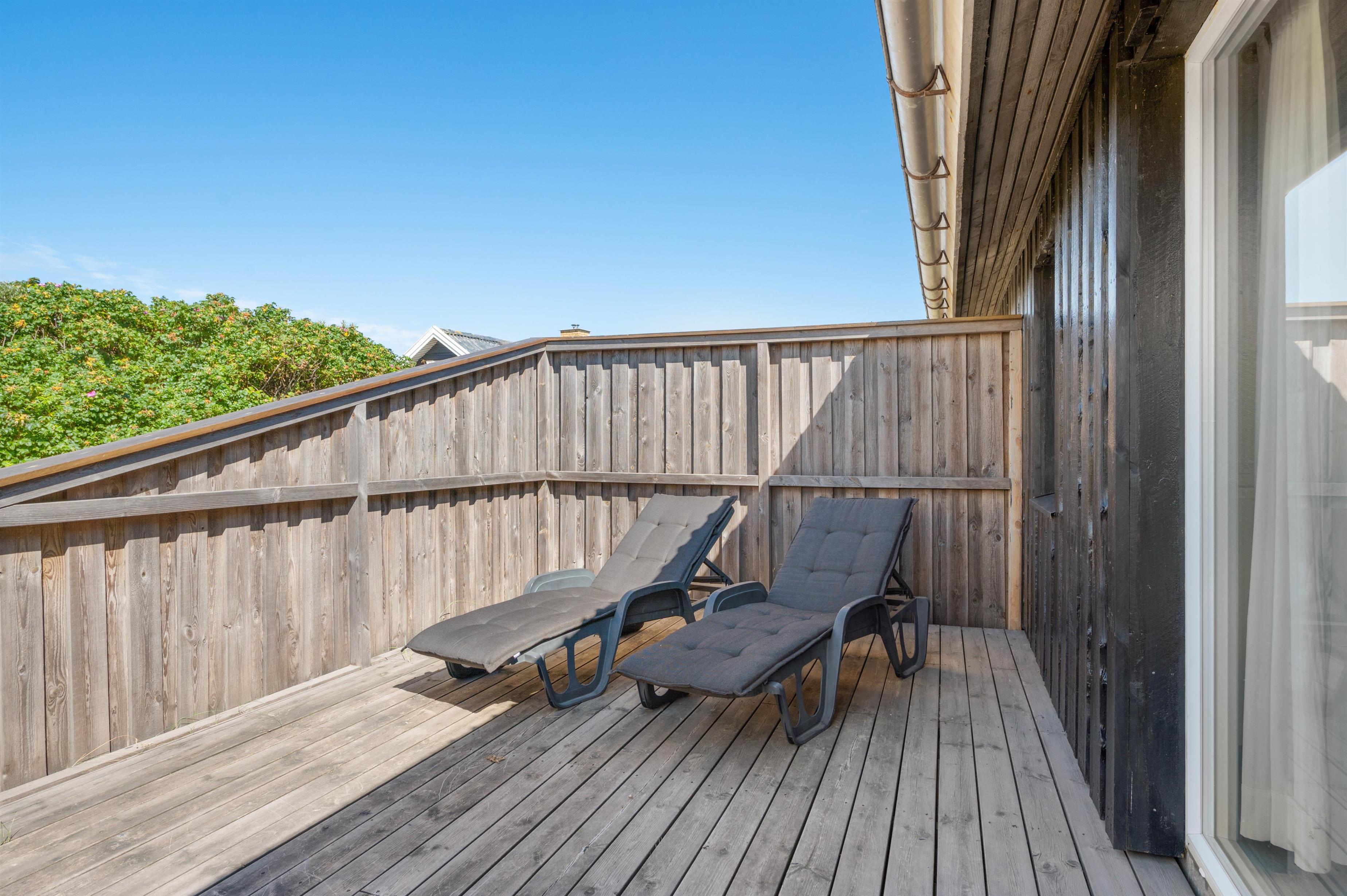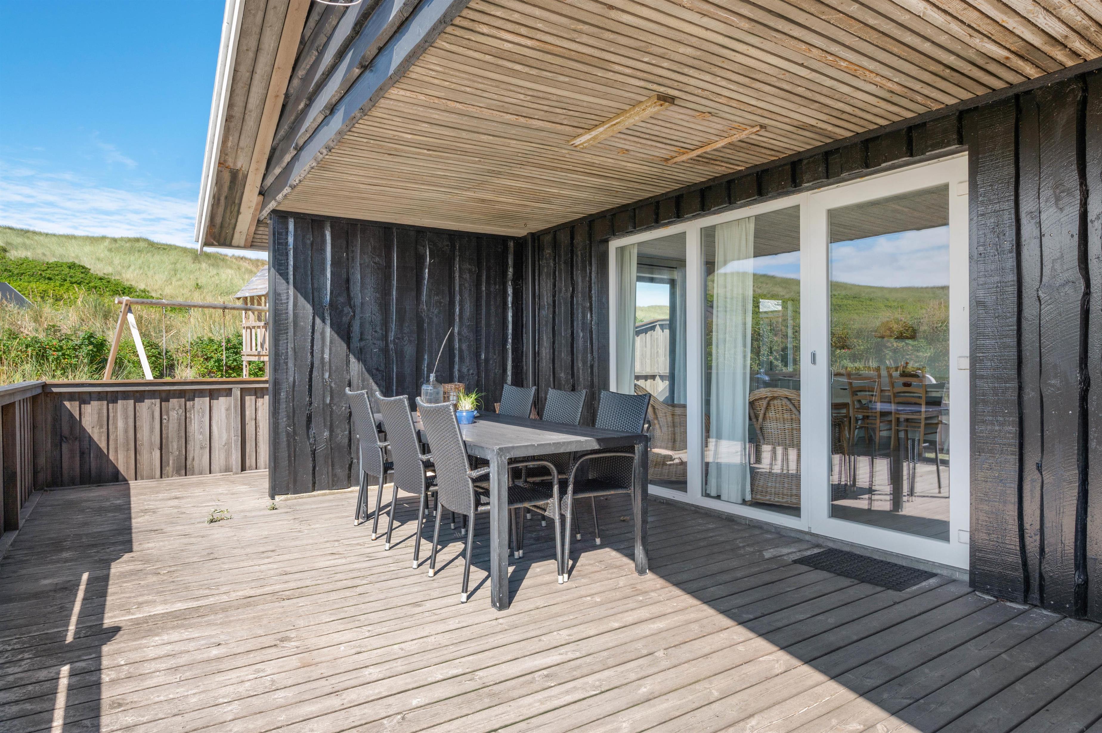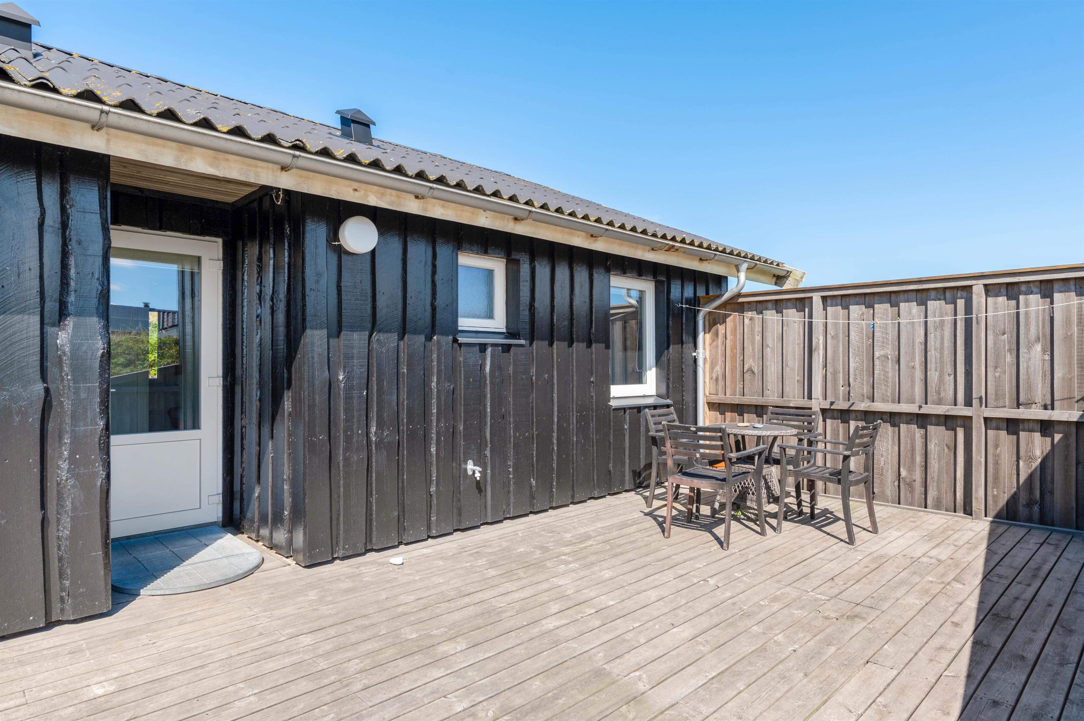 På en blæsende efterårsdag kan I slappe af på sofaen, mens brændeovnen knitrer i baggrunden. Fra stuen er der udgang til den lukkede terrasse, der er ca. 100 m2 og går rundt om feriehuset fra øst mod vest. Herfra kan du nyde solen hele dagen. På terrassen finder du havemøbler, liggestole og grill.