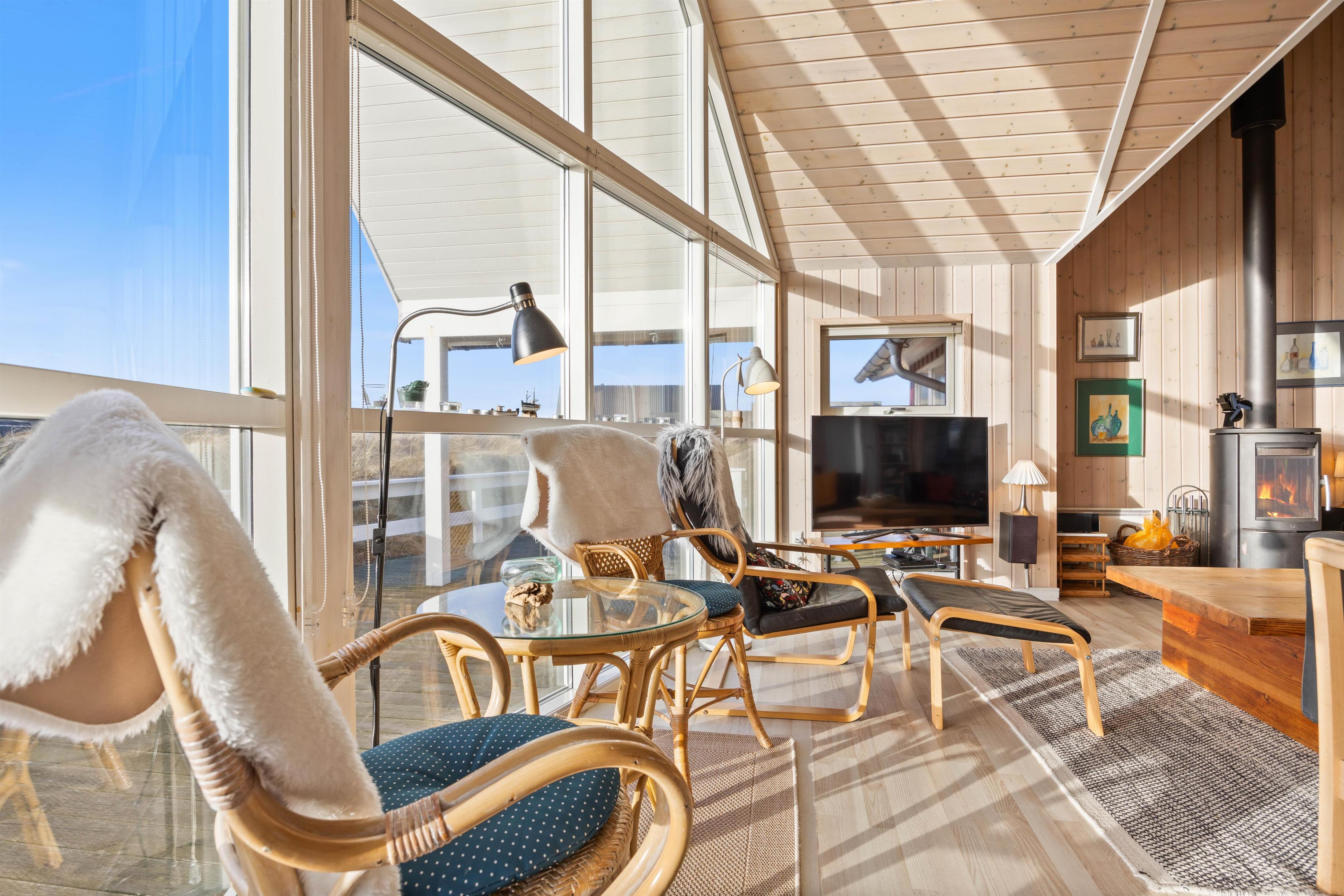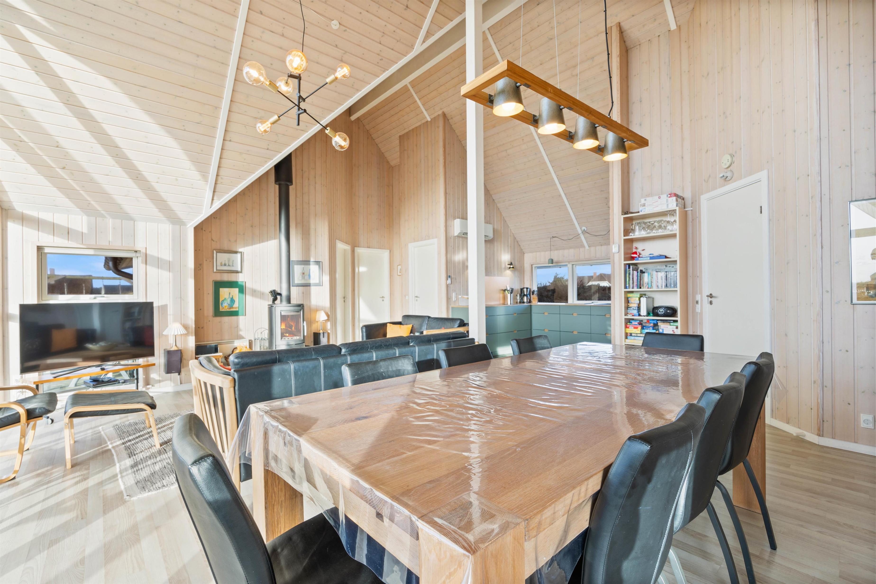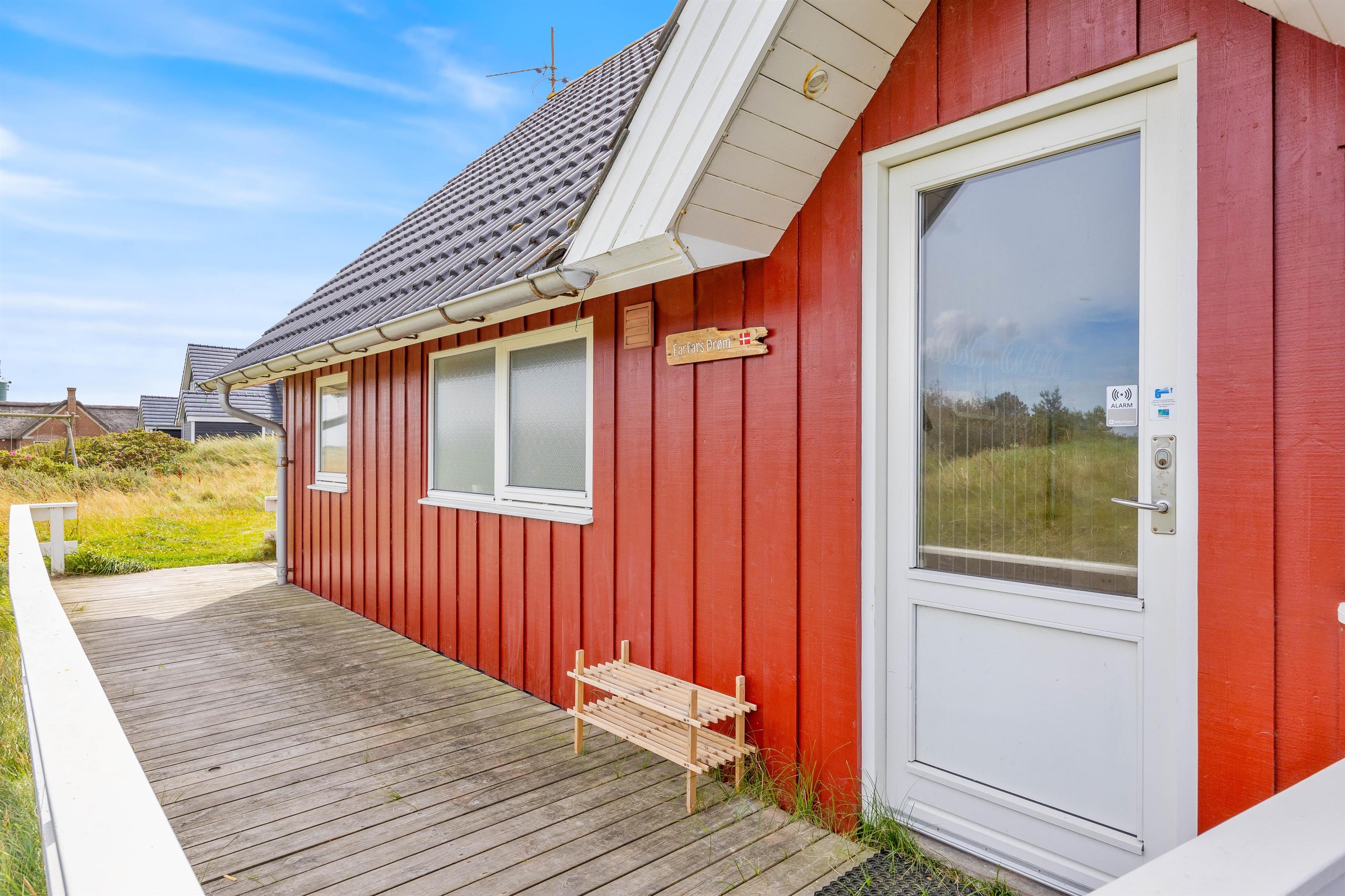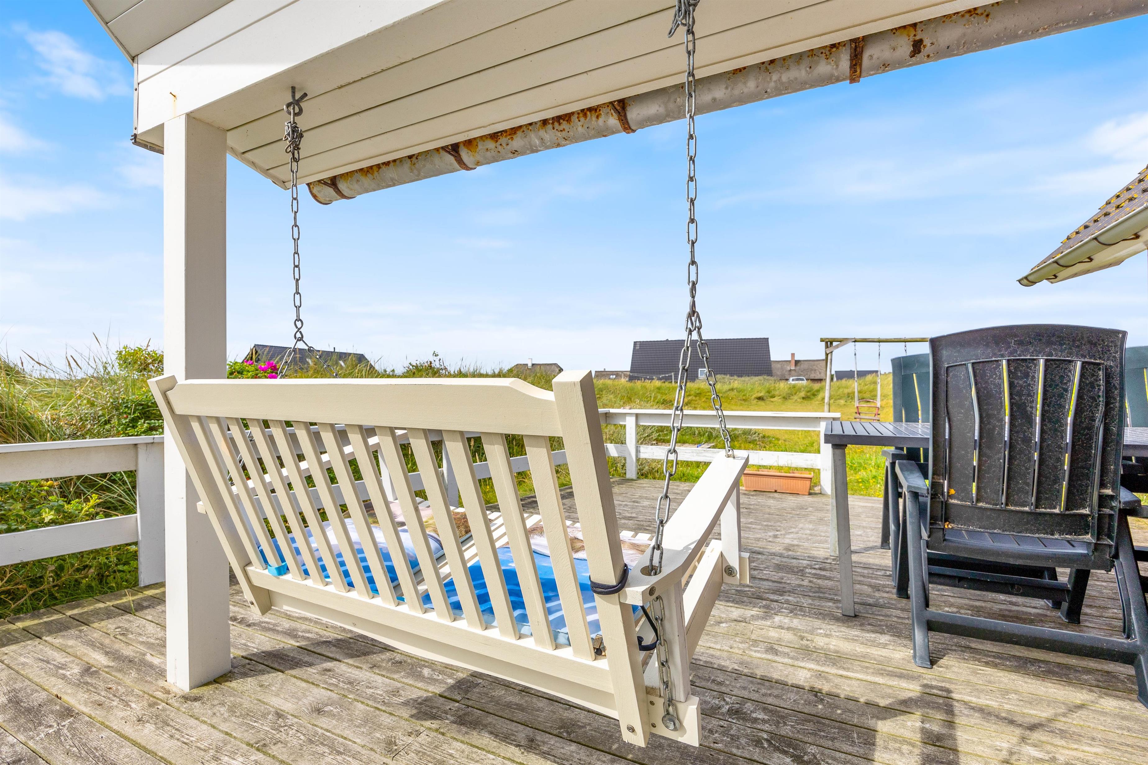Slap af og lad batterierne op i et virkeligt dejligt sommerhus, som har den helt rigtige beliggenhed, hvis du elsker den barske vestjyske natur og søger fred og ro. Der er store hedeområder lige syd for sommerhuset og en kort travetur mod vest bringer dig til stranden og det brusende Vesterhav. Fra stuen er der udgang til den store træterrasse, hvor I kan tilbringe en masse timer i solen. Terrassen er delvis overdækket og afskærmet, så man kan finde læ. Slå eventuelt parasollen op og tilbered en lækker middag, som I kan nyde på terrassen i de behagelige havemøbler.