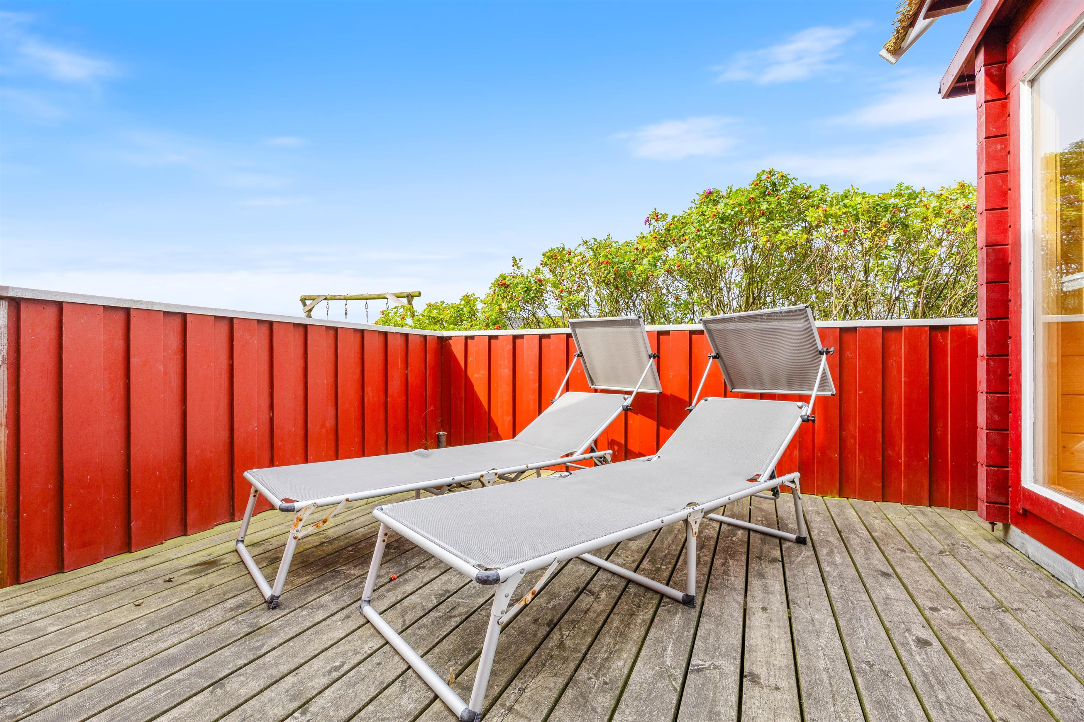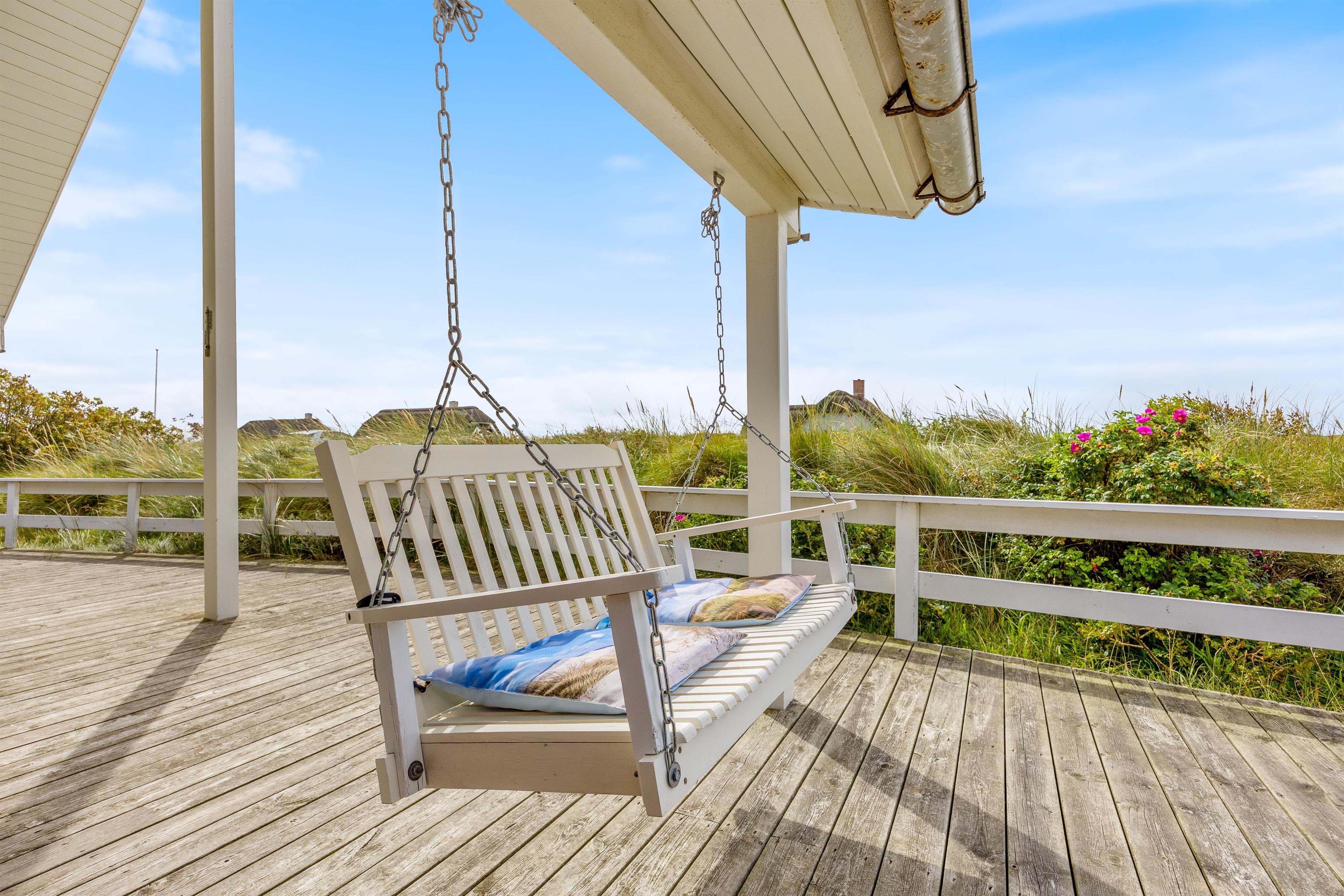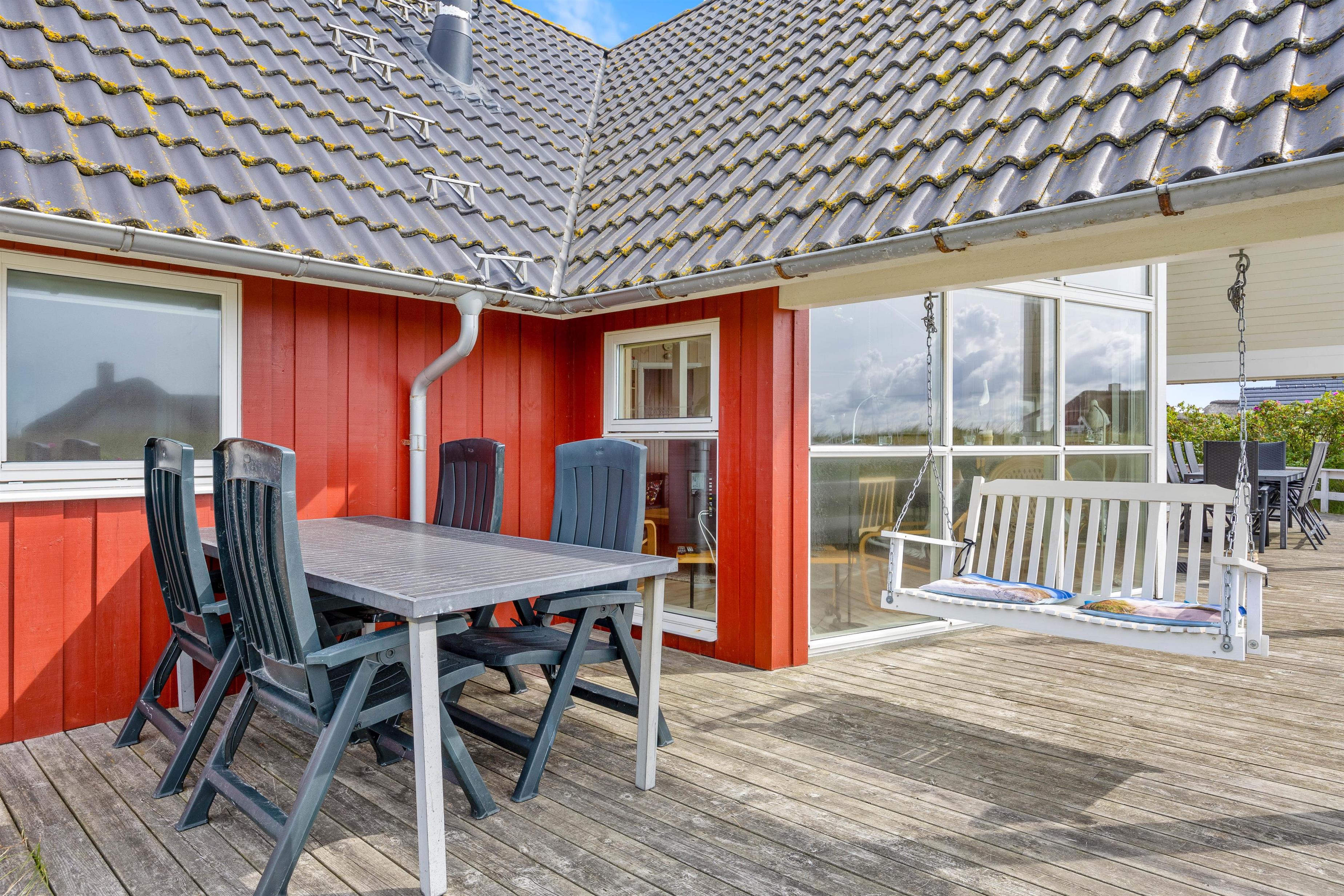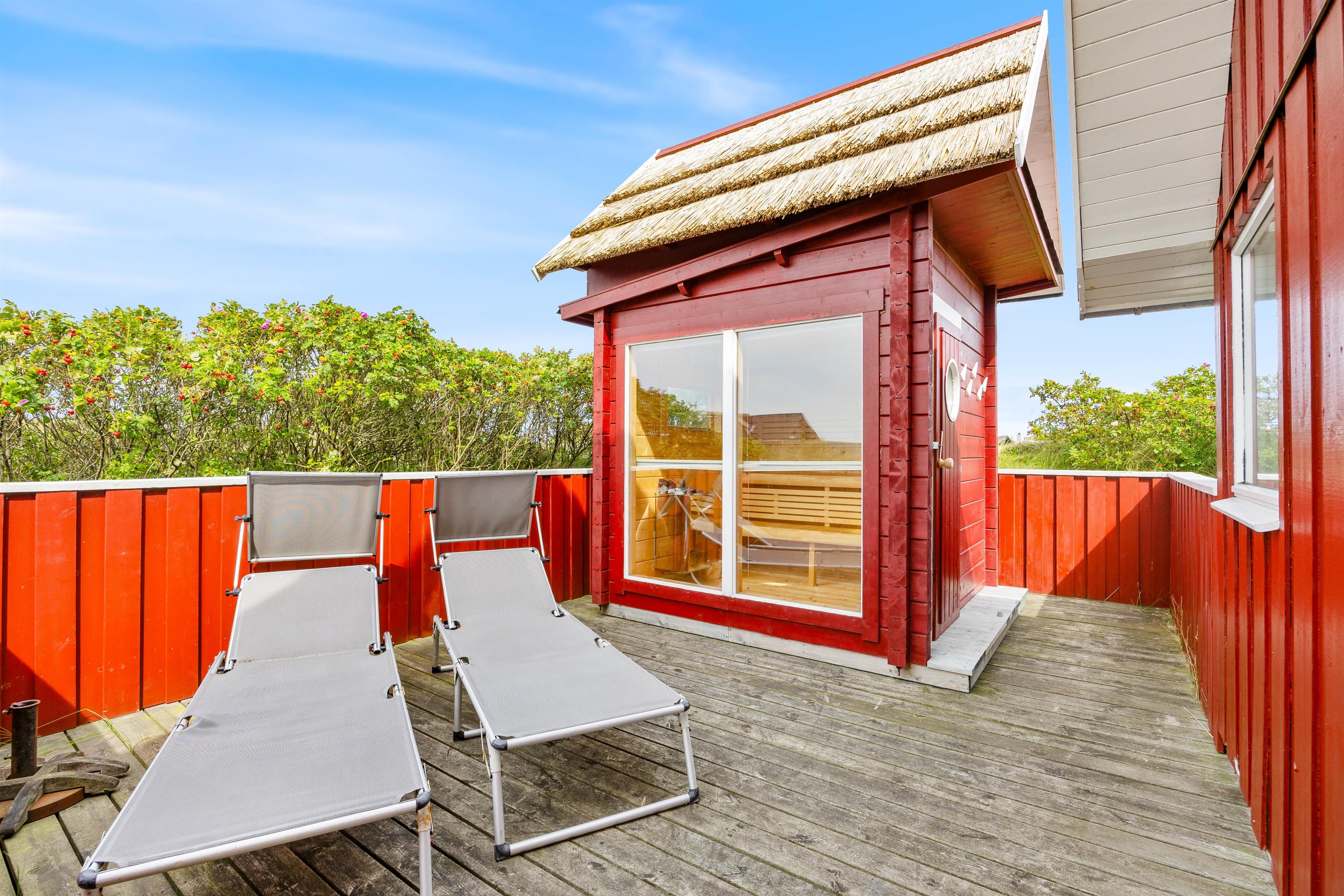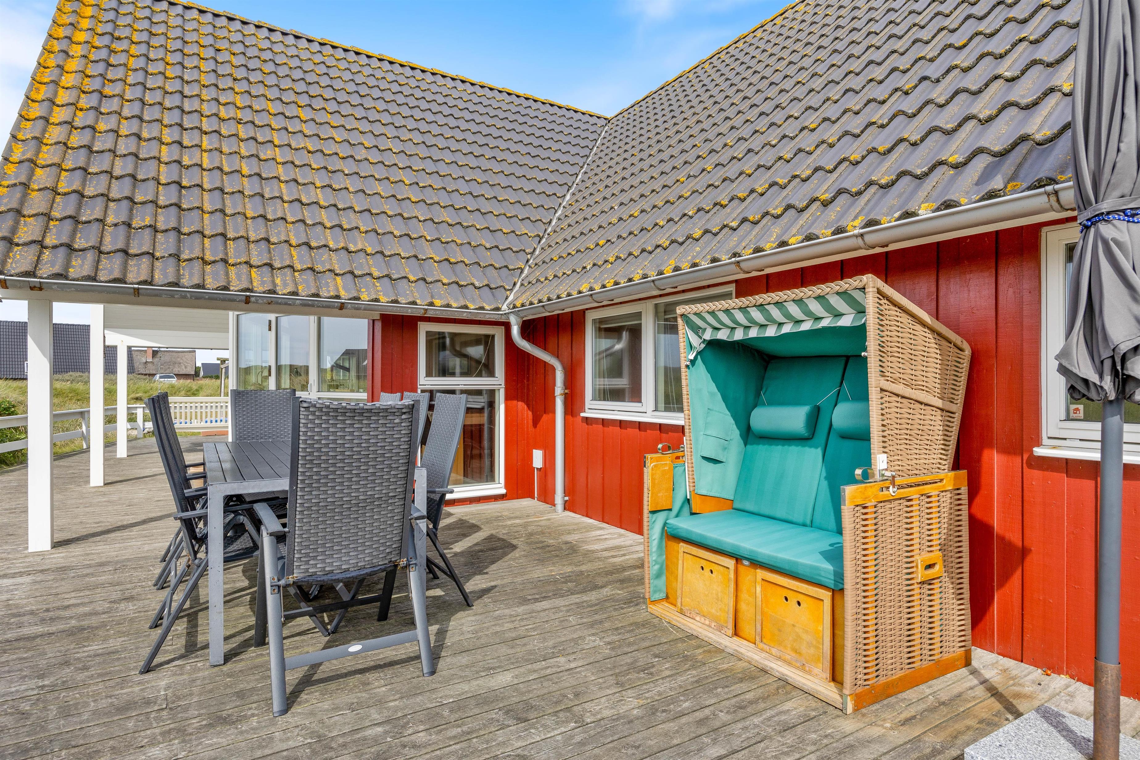 Slap af og lad batterierne op i et virkeligt dejligt sommerhus, som har den helt rigtige beliggenhed, hvis du elsker den barske vestjyske natur og søger fred og ro. Der er store hedeområder lige syd for sommerhuset og en kort travetur mod vest bringer dig til stranden og det brusende Vesterhav. Fra stuen er der udgang til den store træterrasse, hvor I kan tilbringe en masse timer i solen. Terrassen er delvis overdækket og afskærmet, så man kan finde læ. Slå eventuelt parasollen op og tilbered en lækker middag, som I kan nyde på terrassen i de behagelige havemøbler.