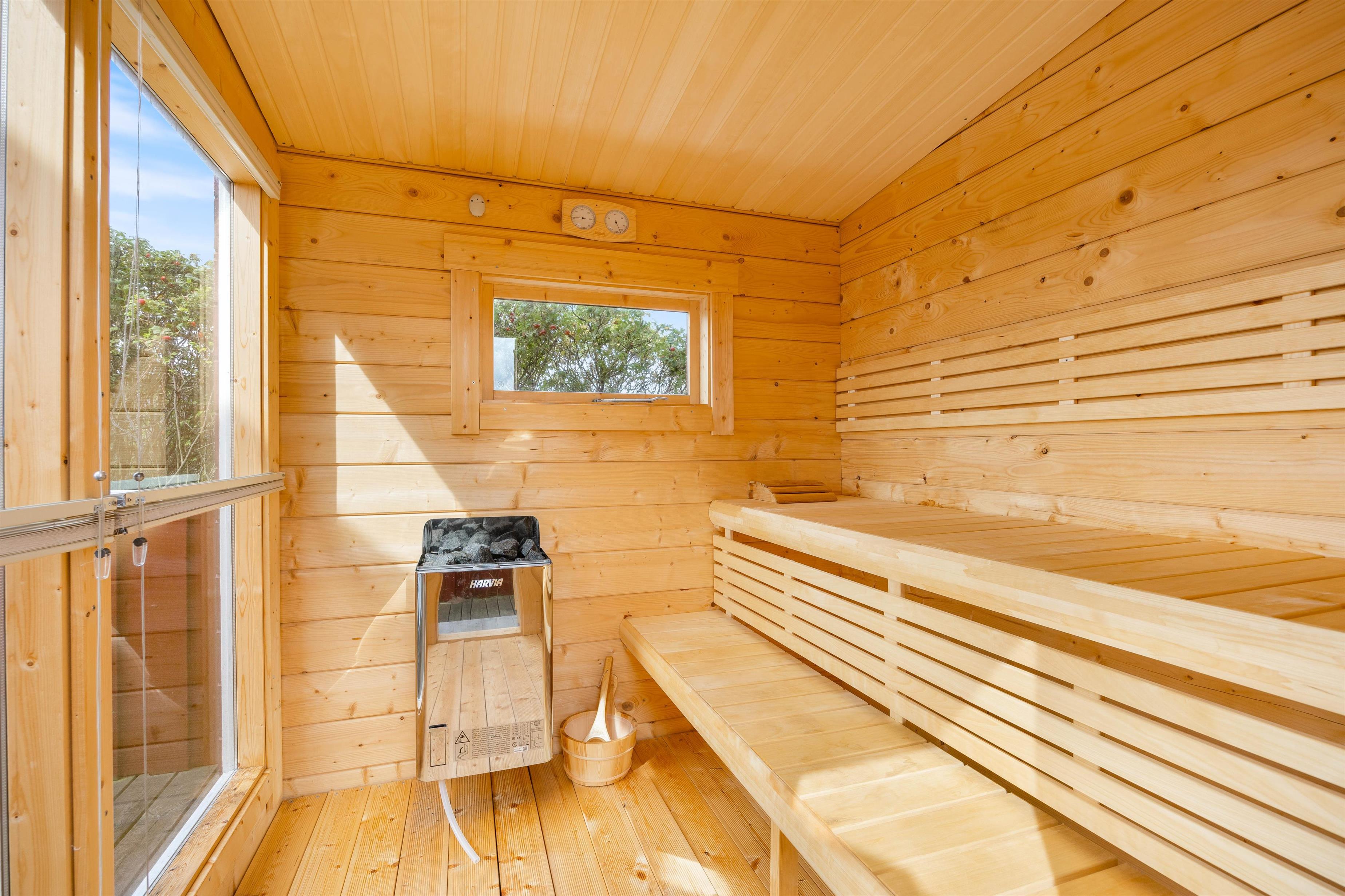 Mens de voksne kan finde liggestolene frem og nyde solens stråler, kan de små lege frit i de grønne arealer og på gyngestativet. Tag endelig også at benytte jer af den behagelige udesauna, hvor der er mulighed for at læne sig tilbage og nyde feriestemningen, mens man damper af.