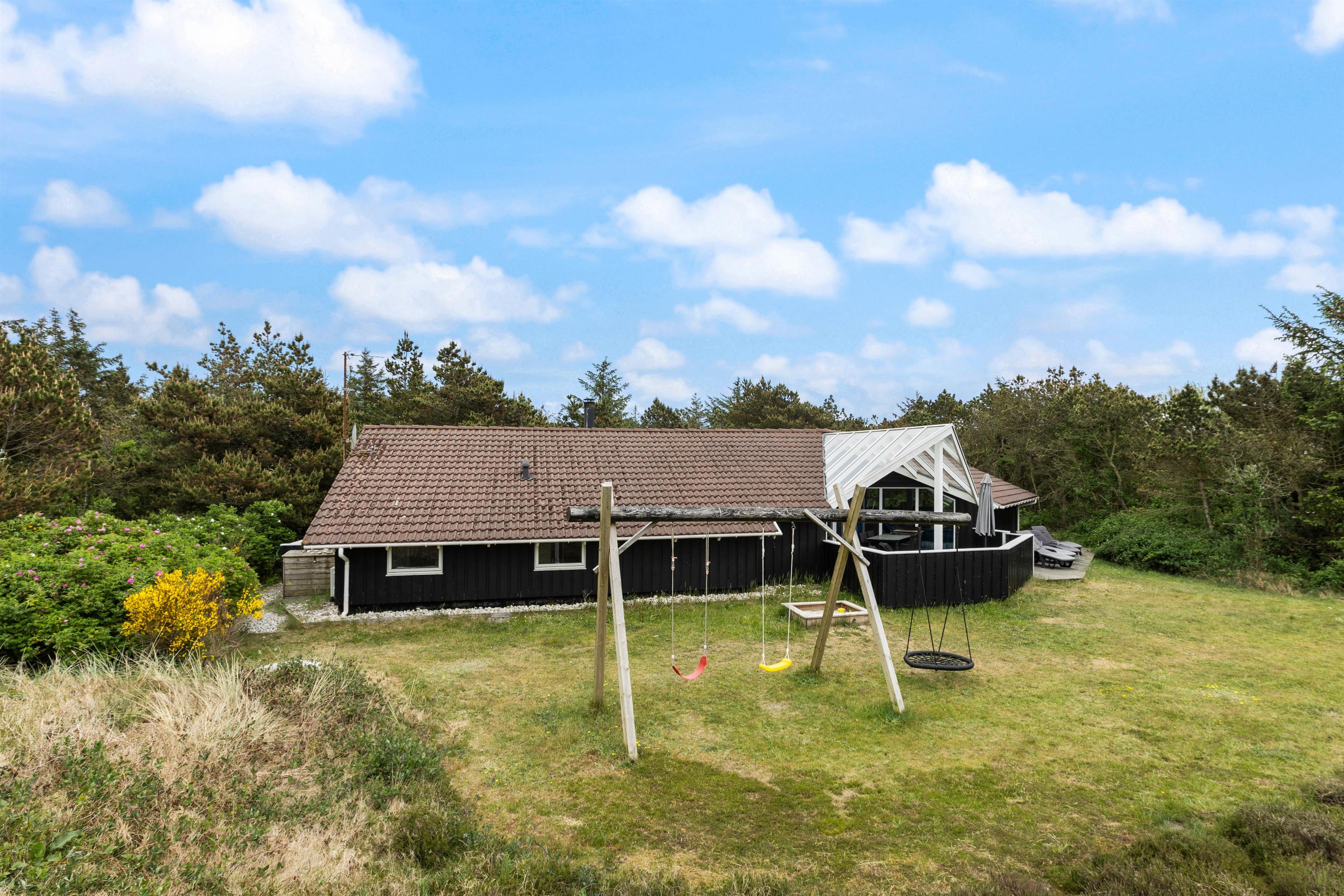Sommerhuset ligger på en skøn naturgrund med gynge og sandkasse. Dagen kan I nyde på den lukkede og delvist overdækkede terrasse, hvor I kan afslutte med et lækkert grillmåltid. Terrassen er delvist overdækket, så I kan nyde aftenen fuldt ud - også i lidt regn. Her er desuden en lille og hyggelig vestvendt terrasse ved indgangspartiet.