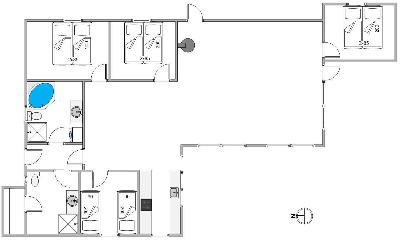 Husets 2 badeværelser er begge med gulvvarme og byder på rig mulighed for selvforkælelse, da det ene er udstyret med spa og det andet med sauna. Og skulle dagens oplevelser have sat sit præg på vasketøjskurven er det også på det ene badeværelse, at I finder både vaskemaskine og tumbler, der nemt sørger for rent tøj til de næste dage.
