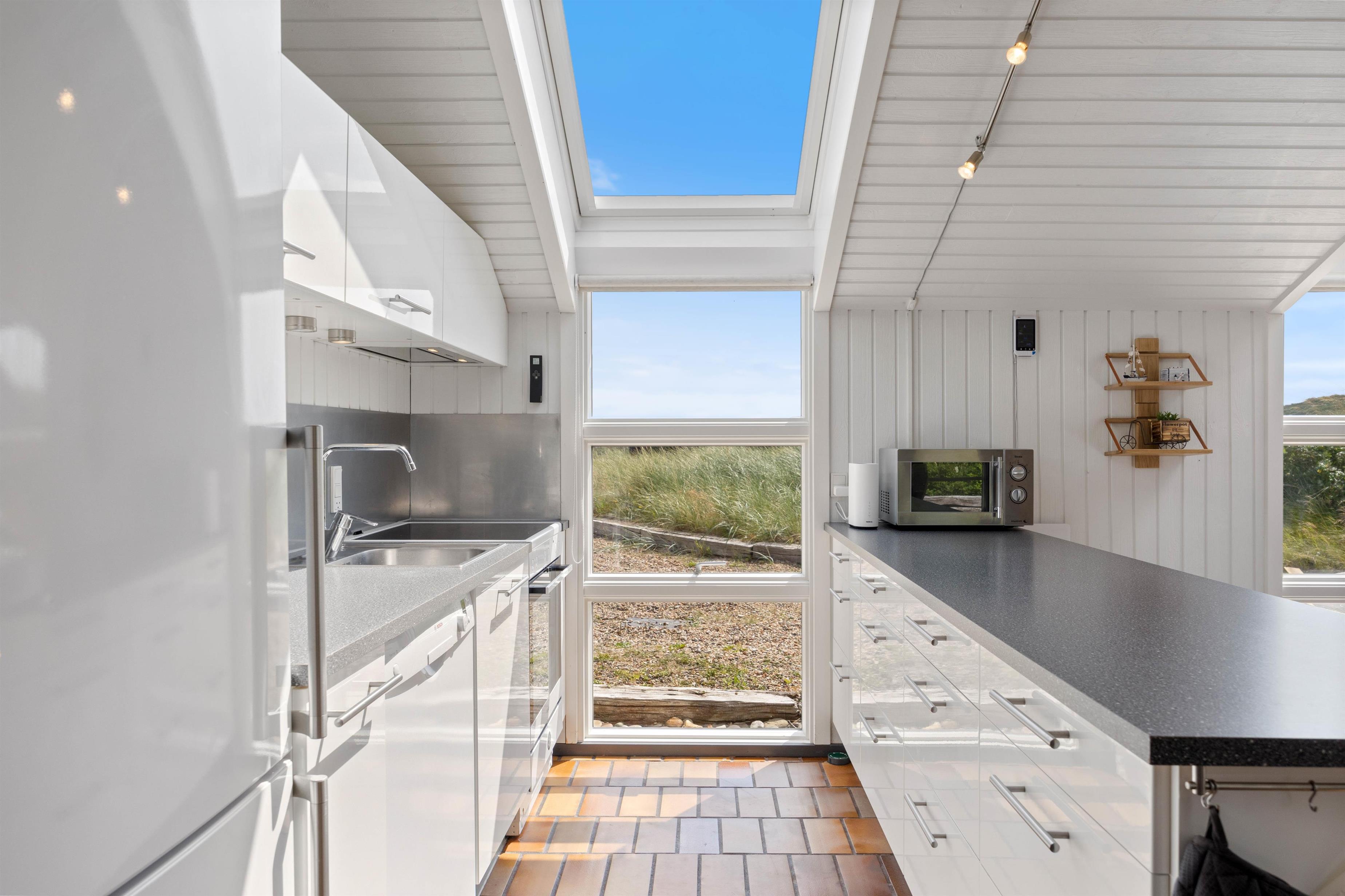 På ferien skal livet så vidt muligt leves udendørs, og det er der rige muligheder for i dette sommerhus. Det ligger kun 150 meter fra den skønne strand, på en klitgrund og er omgivet af fremragende terrasser, hvor I altid kan finde et sted i læ for vinden.