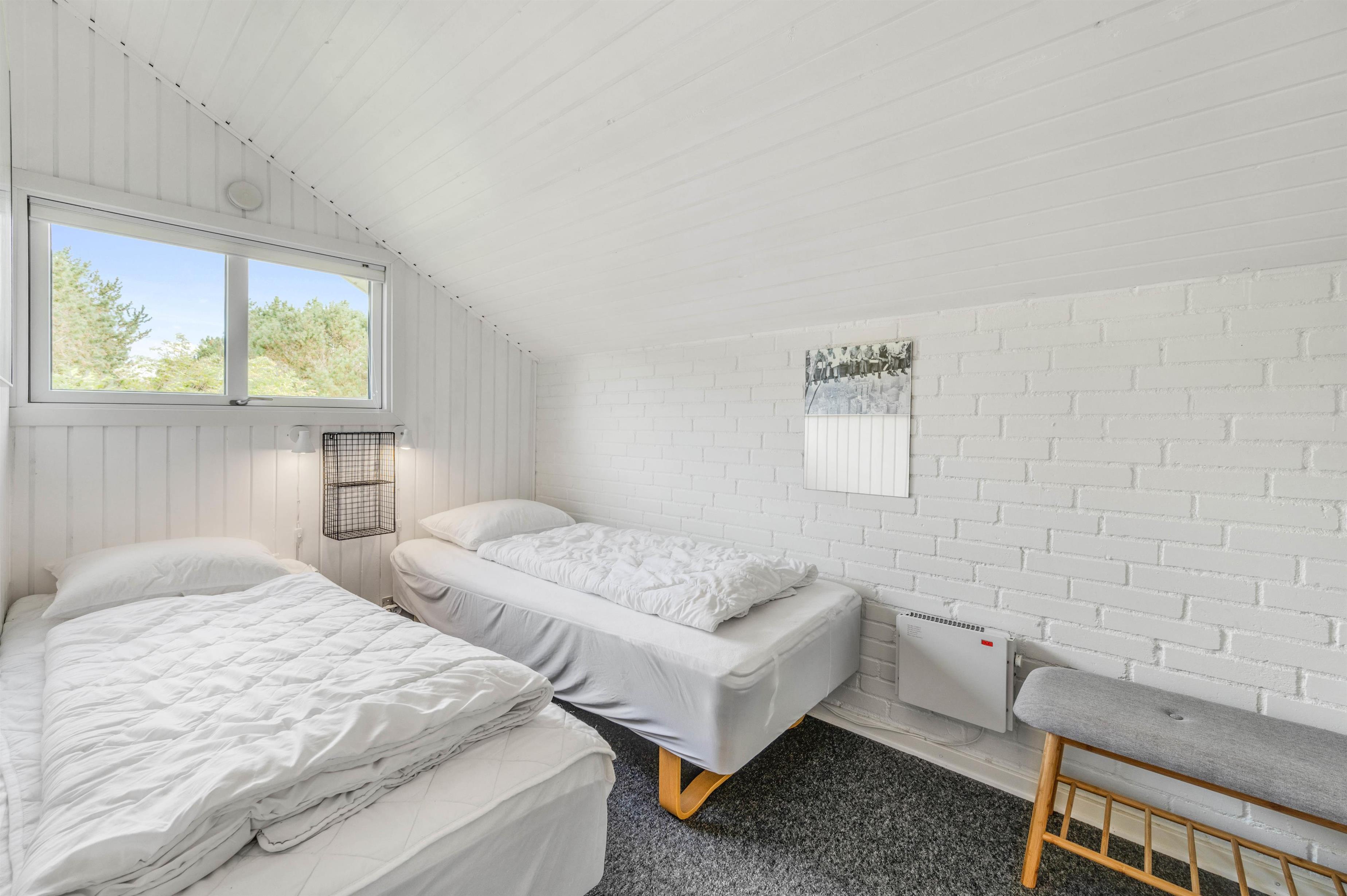 Her er plads til 4 personer – fordelt på 2 lyse soverum, som begge er indrettet med 2 enkeltsenge. På et af væreslerne finder I desuden en køjeseng, som børnene vil finde sjovt og hyggeligt.