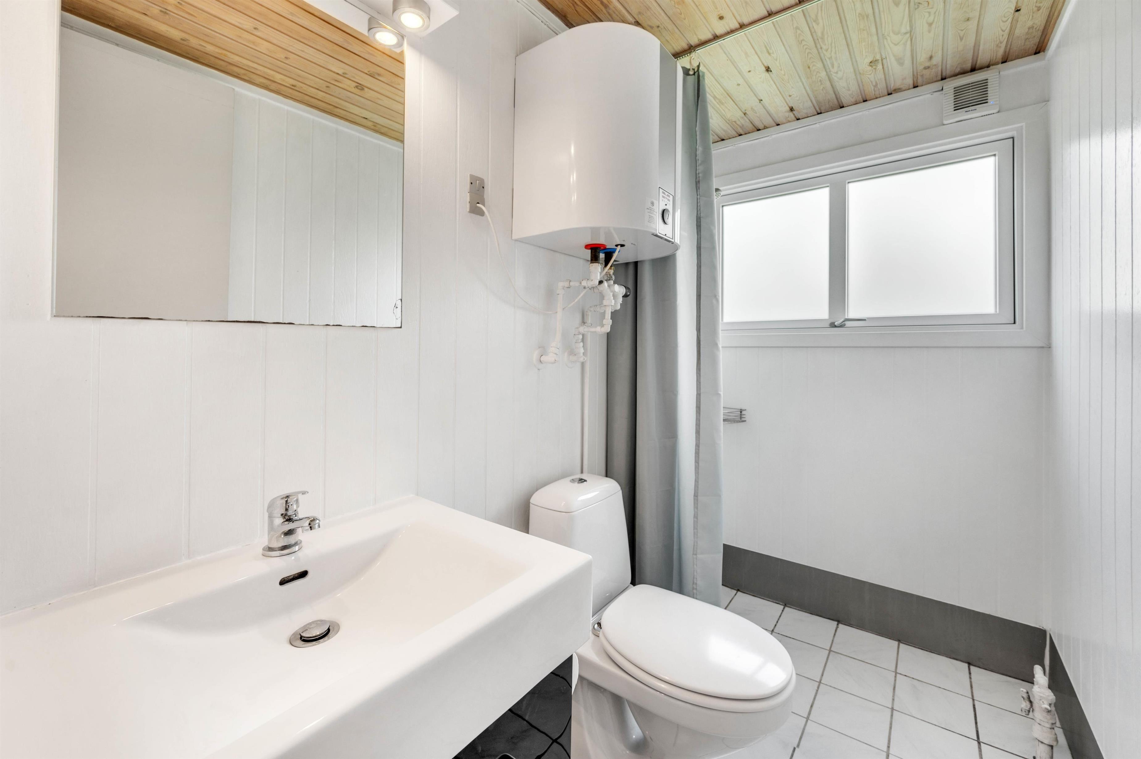 Badeværelset er praktisk indrettet og har alt, hvad man har brug for. En energireducerende varmepumpe finder i naturligvis også her