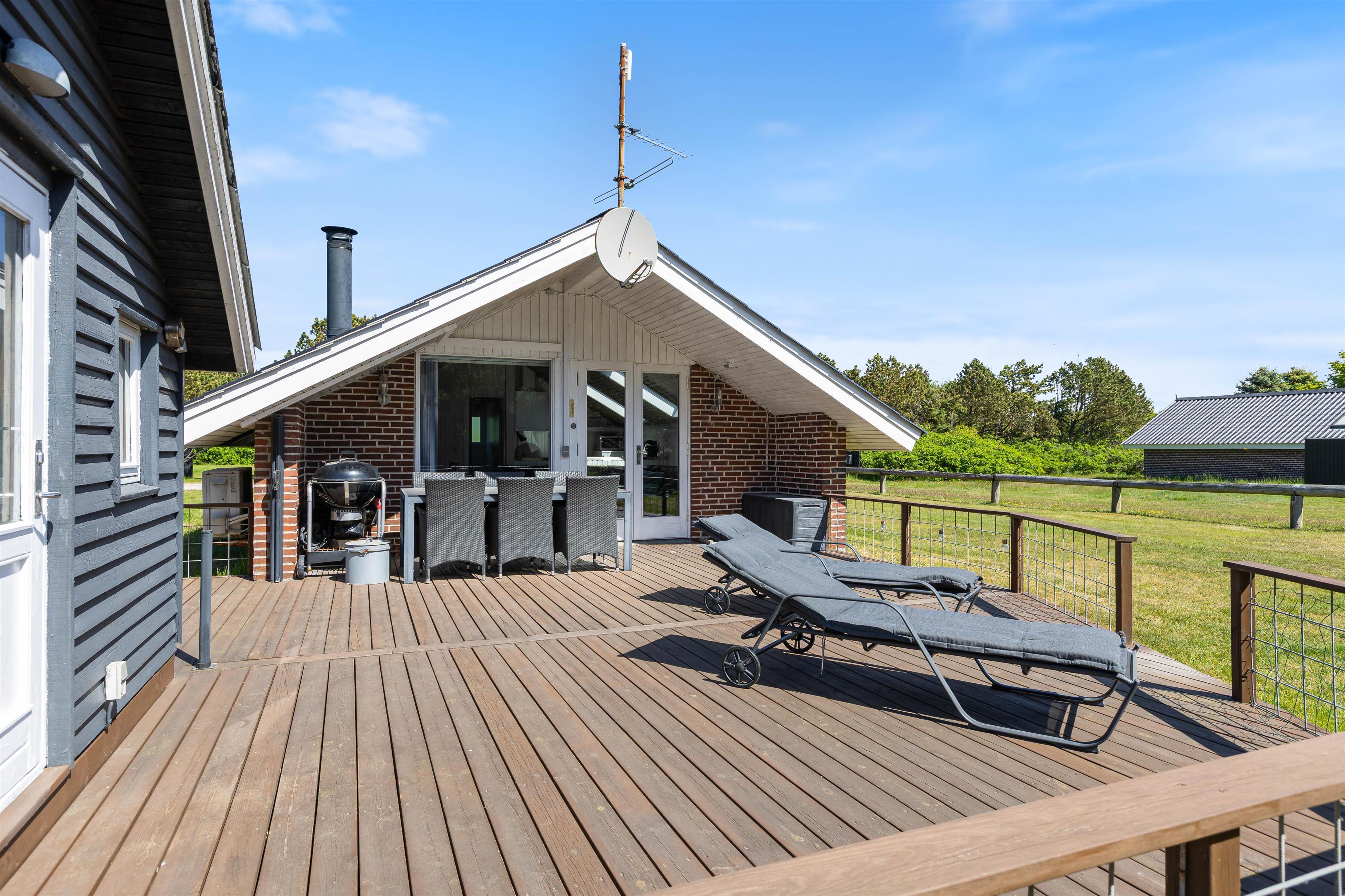 En hyggelig og lukket terrasse gør det afslappende at lade børn og familiens firbenede ven lege ude, alt imens man nyder eftermiddagssolen, - og manden i huset tænder grillen. En veltilberedt grillmiddag på terrassen – og med solnedgangen og havets beroligende brusen i baggrunden er balsam for krop og sjæl.