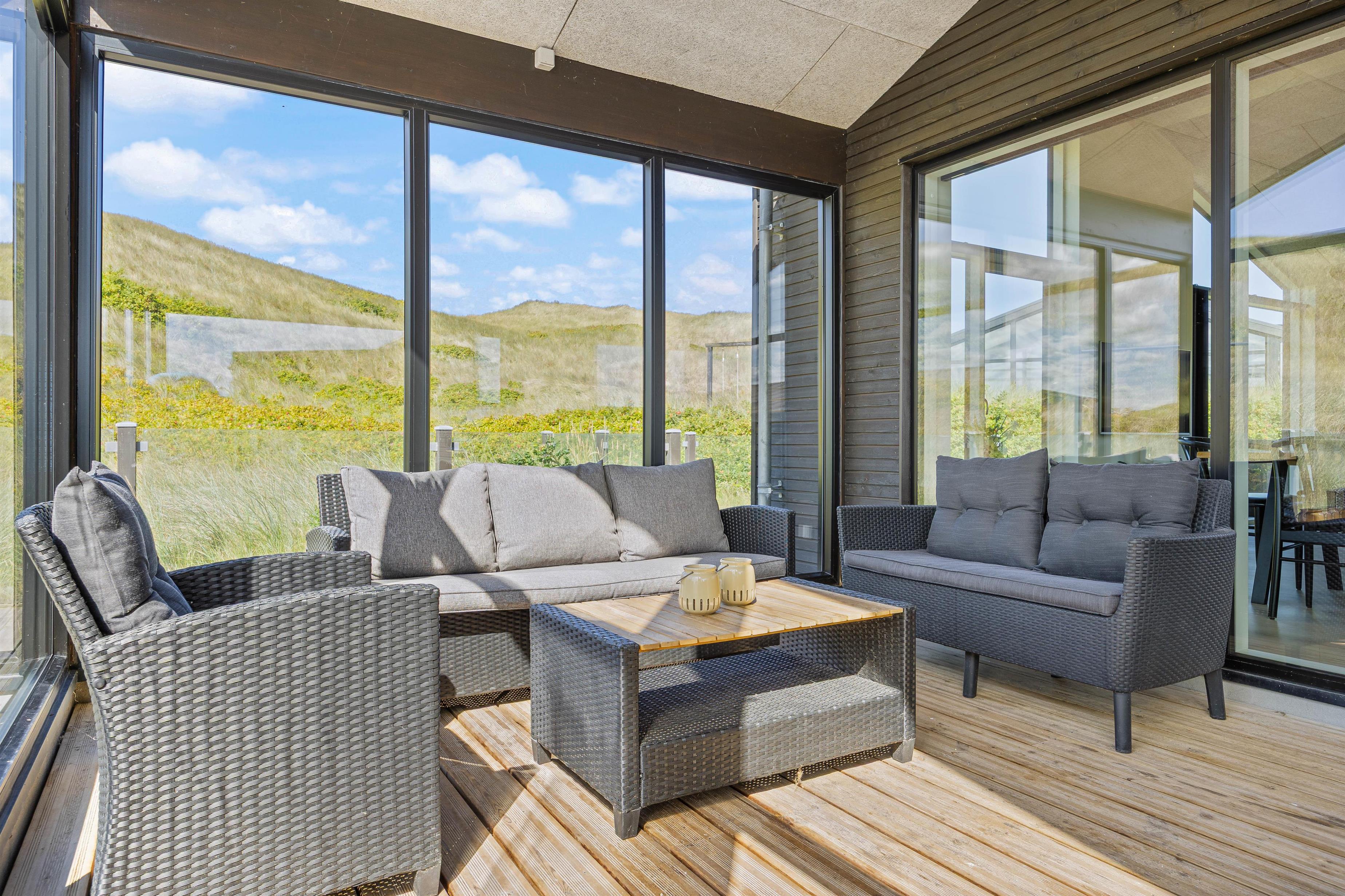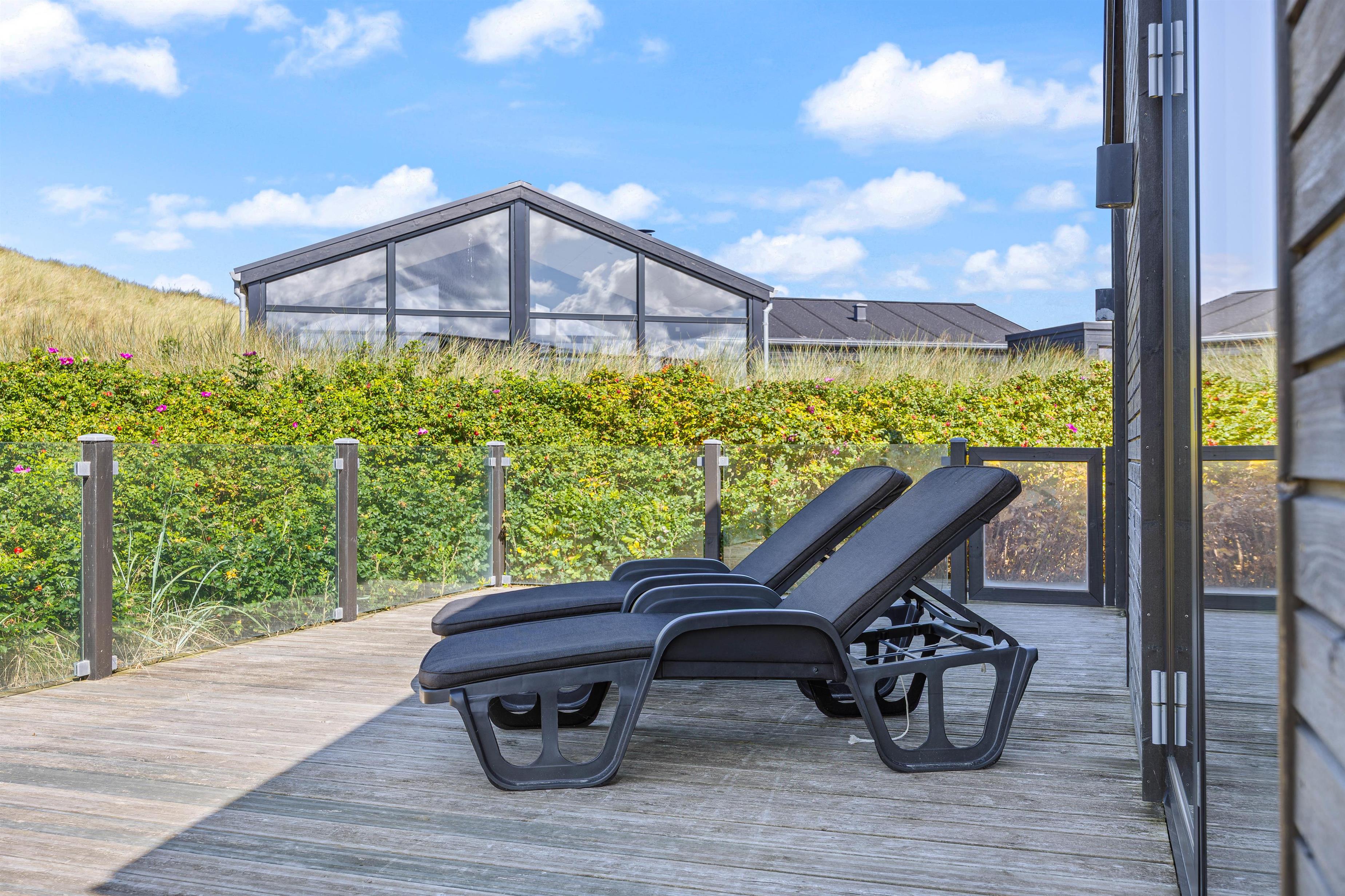 Kun et stenkast fra det brusende Vesterhav ligger dette fantastiske feriehus med plads til 6 personer. Den moderne og stilfulde indretning vil opfylde selv den mest kræsne feriegæsts drømme, og på den lækre terrasse - med udebruser - kan det dejlige solskinsvejr nydes i fulde drag. Udebruseren kan benyttes fra april til november. Hunden er også tilladt her.
